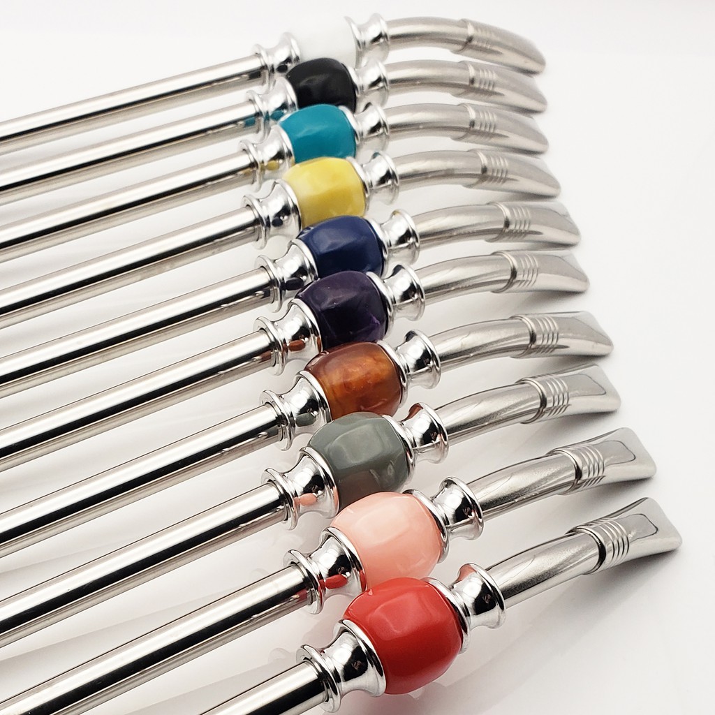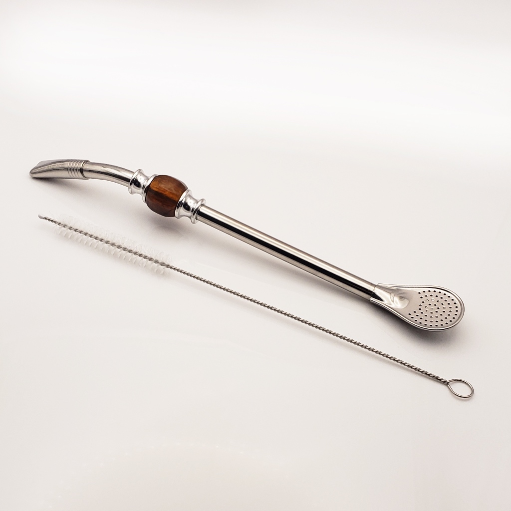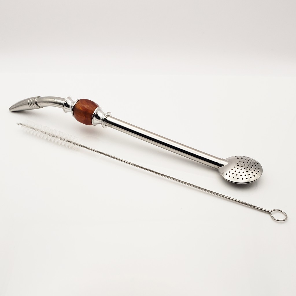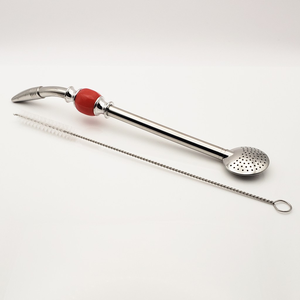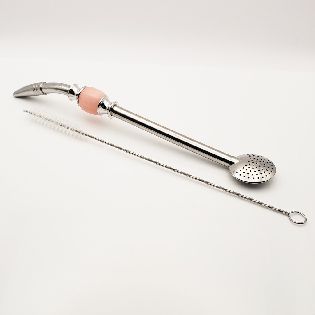 Yerba Mate Long Bead Bombilla / Bombisha Metal Steel Straw Filter with Cleaner