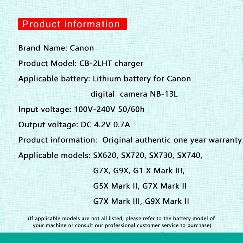 Original Canon Camera NB-13L Battery Charger G7X2 II G5X G9X2 SX620 SX730 SX740S SX720 G1X3 G5Xmark2 Charger