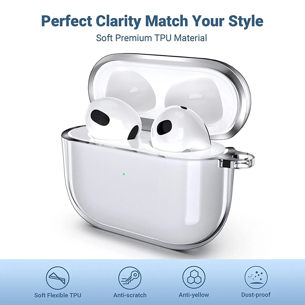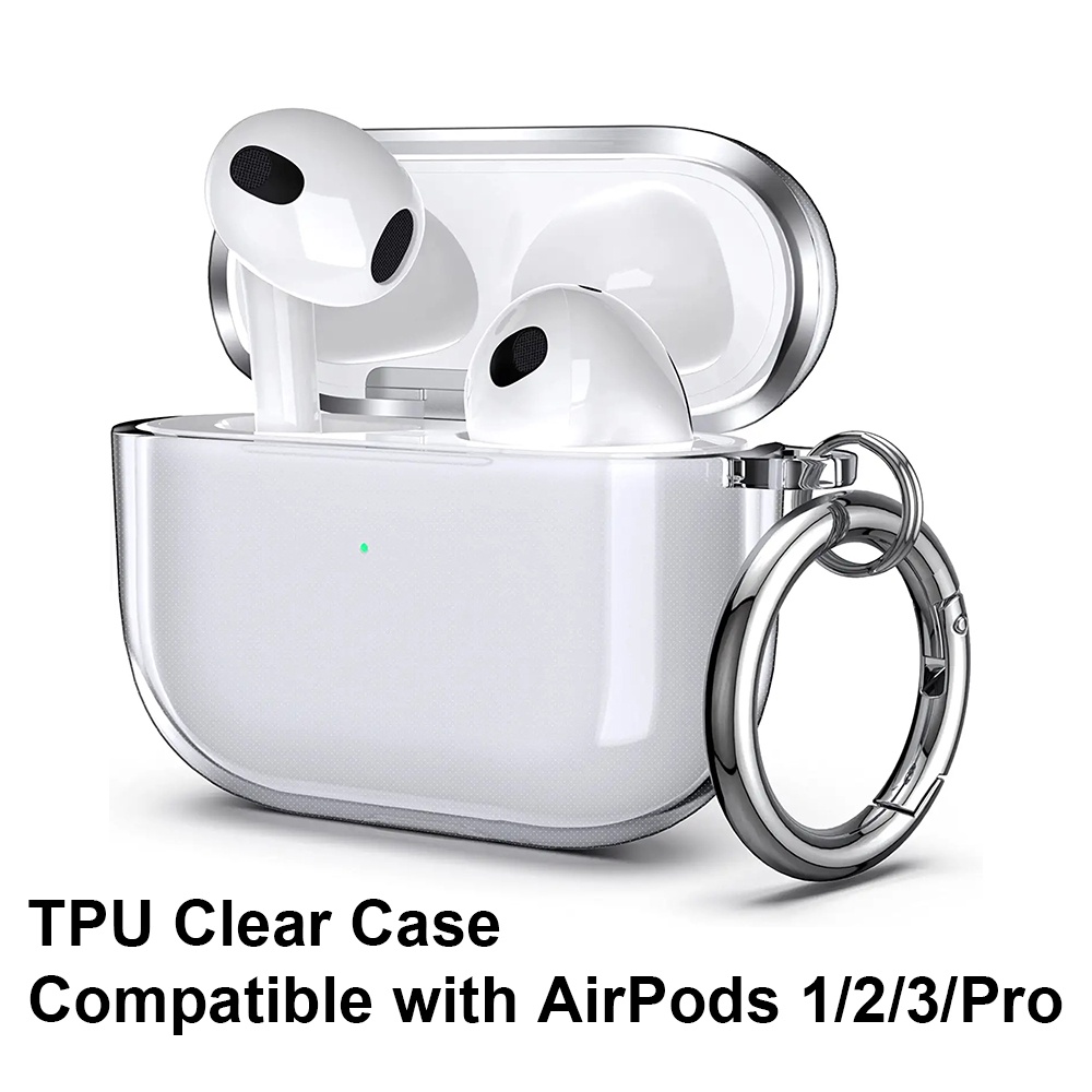 Protective Cover Soft TPU Transparent Shockproof Case with Keychain Compatible with AirPods 1/2/3/Pro (AirPods Not Included)