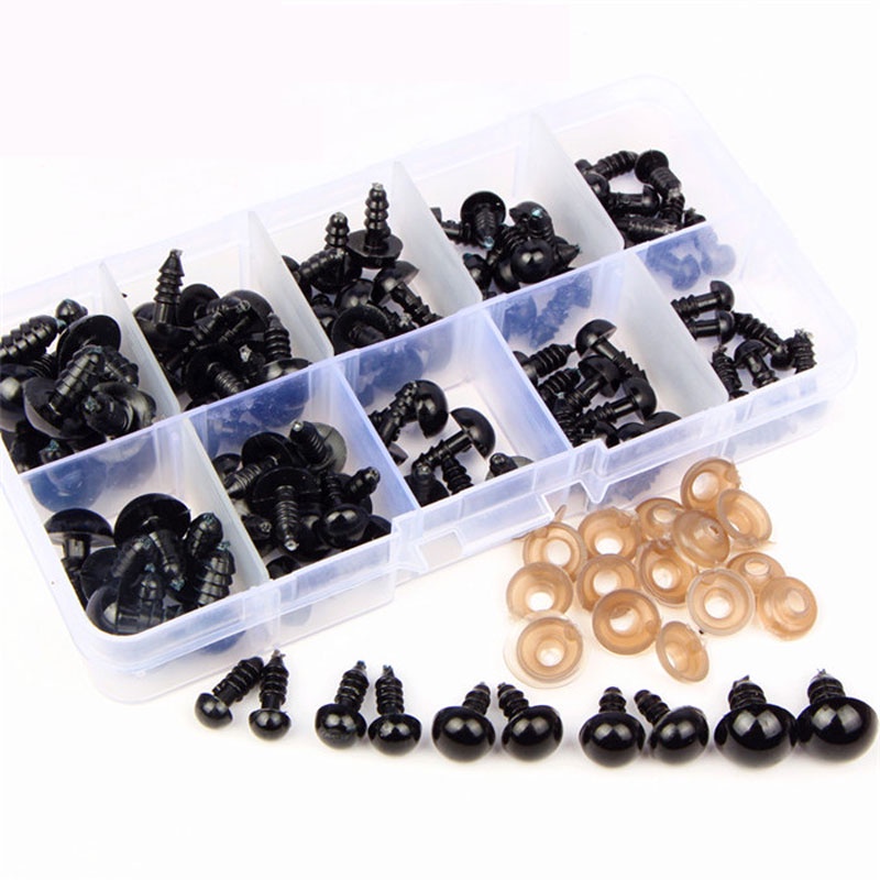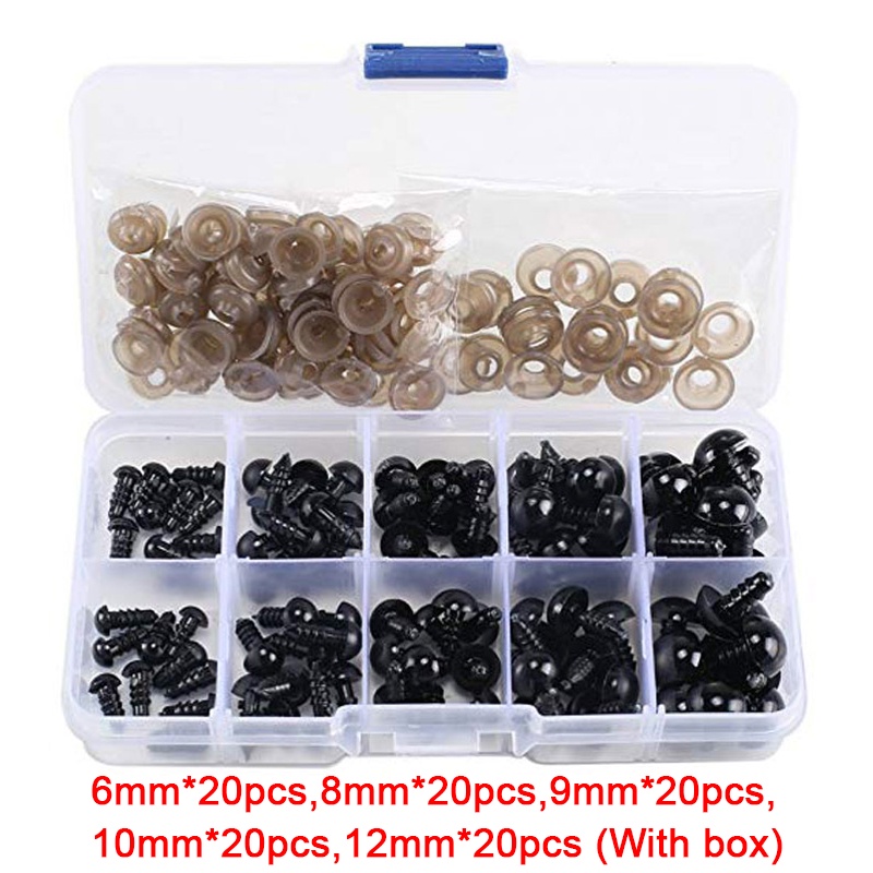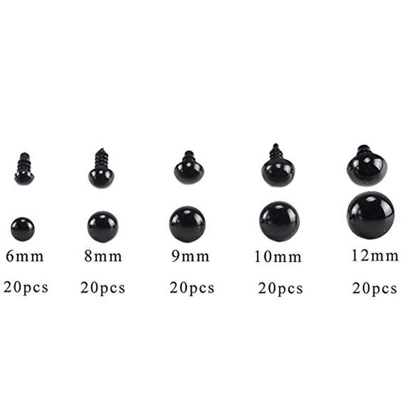 100 pcs 6-12 mm Plastic Safety Eyes Black Safety Eyes Crafts Eyes for Teddy Bear Soft Toy Animal Doll Amigurumi DIY Accessories