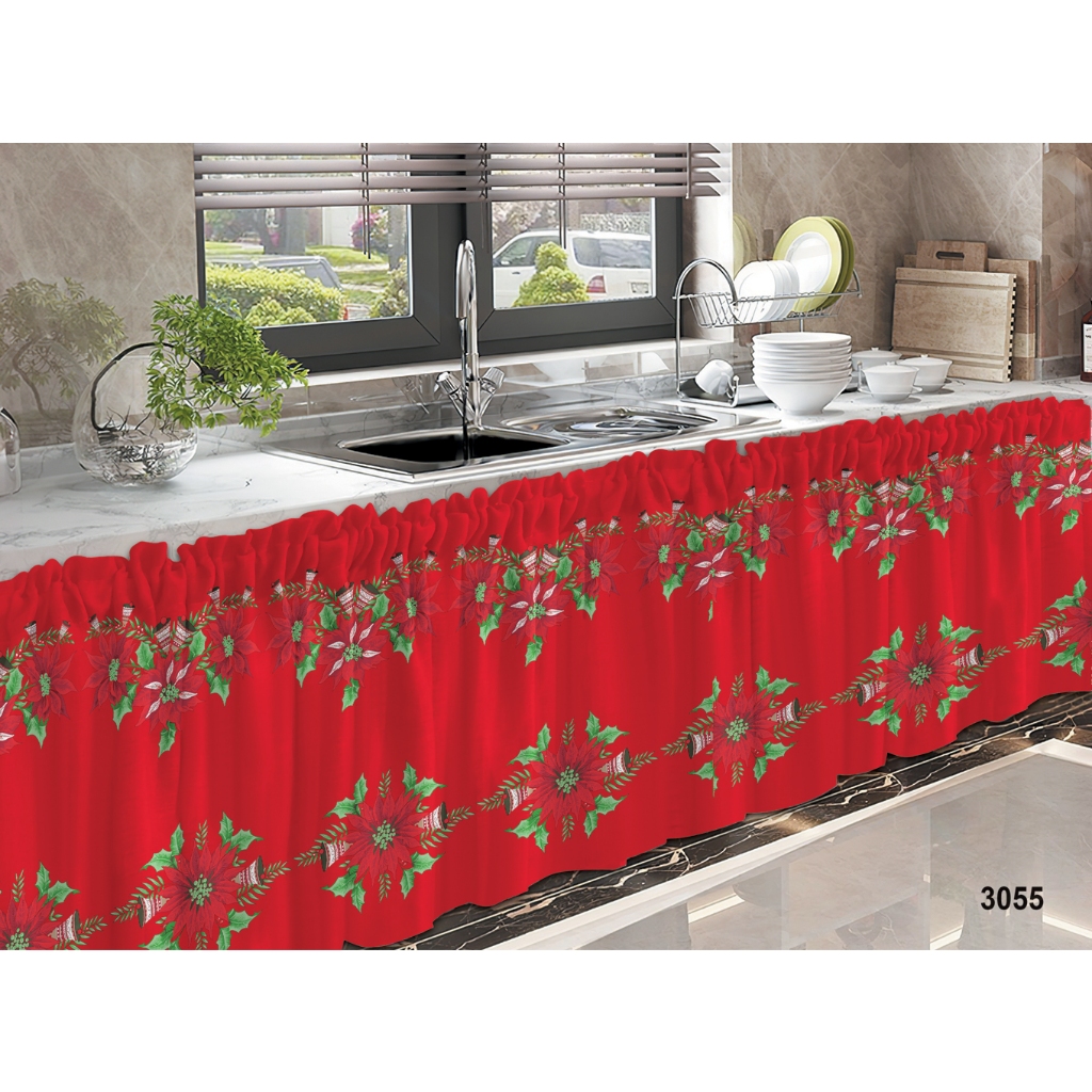 Christmas Kitchen Lababo Curtain Under Sink Red Curtains Fresh 70cm*150cm