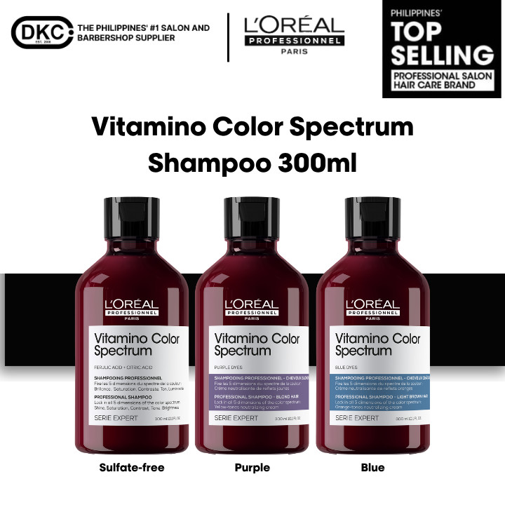 LOreal Professionnel Vitamino Color Spectrum Shampoo, Sulfate Free Purple Shampoo Blue Shampoo 300mL