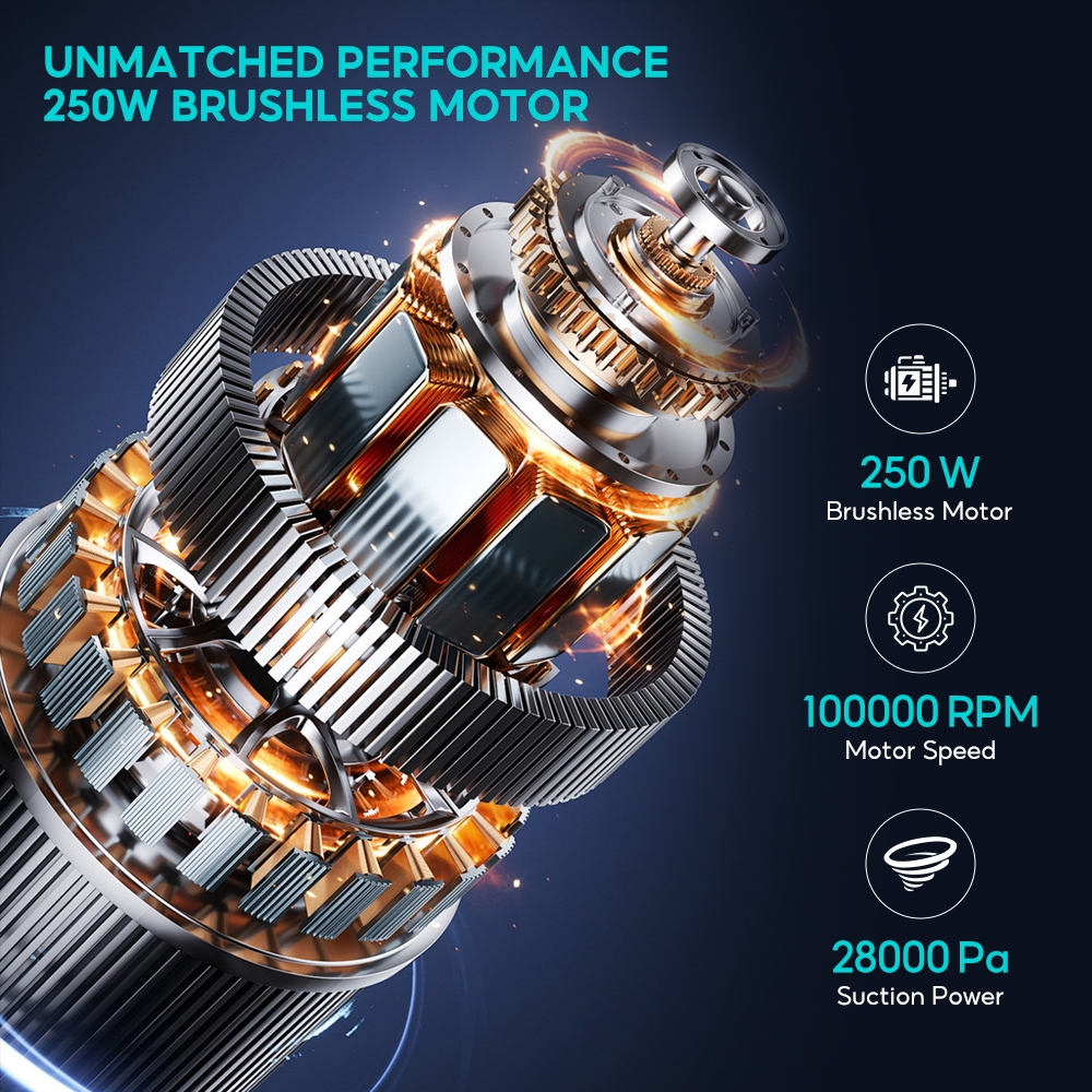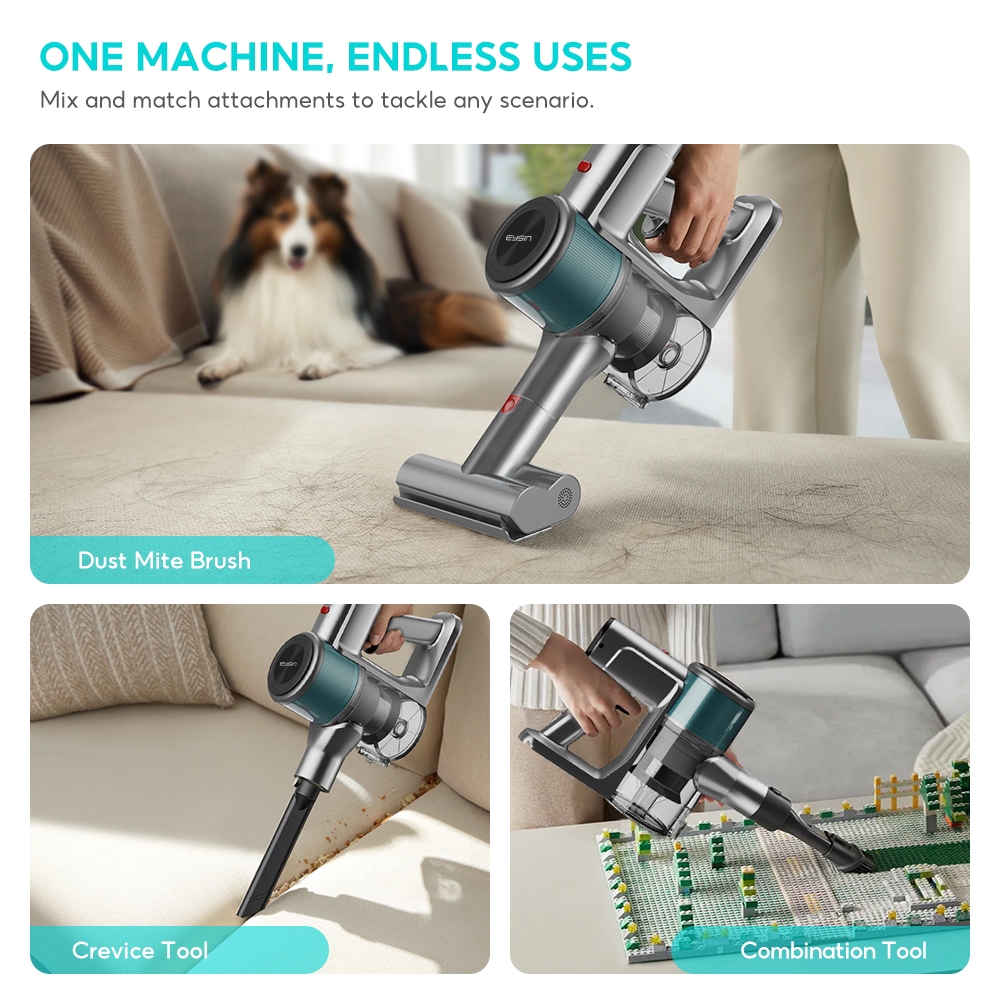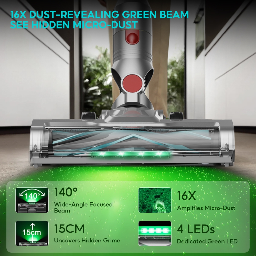 EYSIN X3MAX II Cordless Handheld Vacuum 28KPa Strong Suction Green Light Dust Detection for Home&Bed
