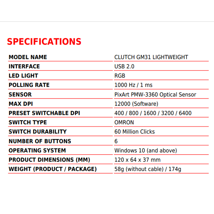 MSI CLUTCH GM31 LIGHTWEIGHT Gaming Mouse