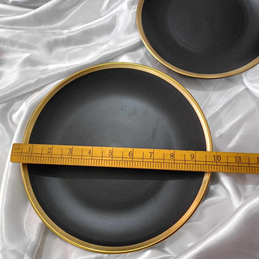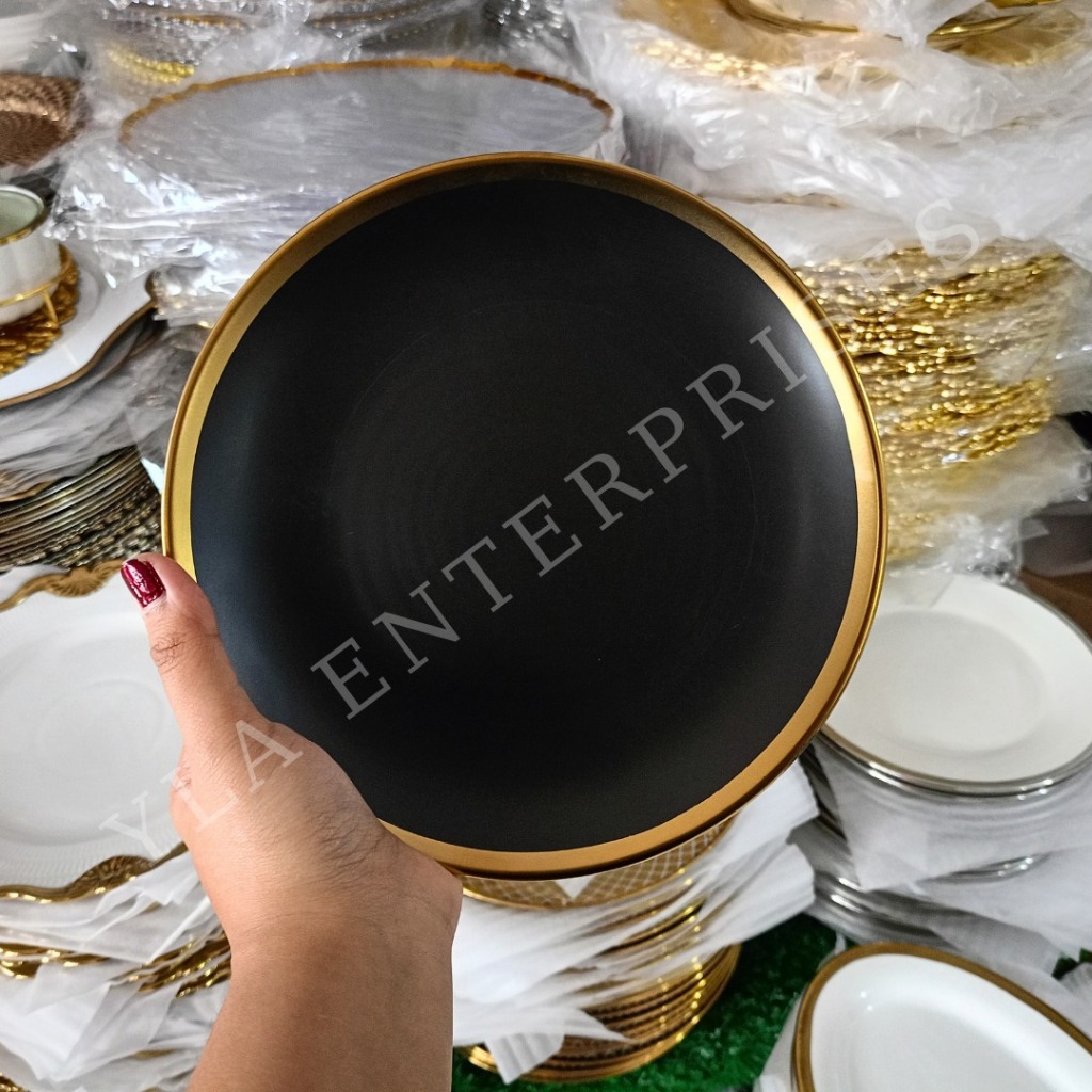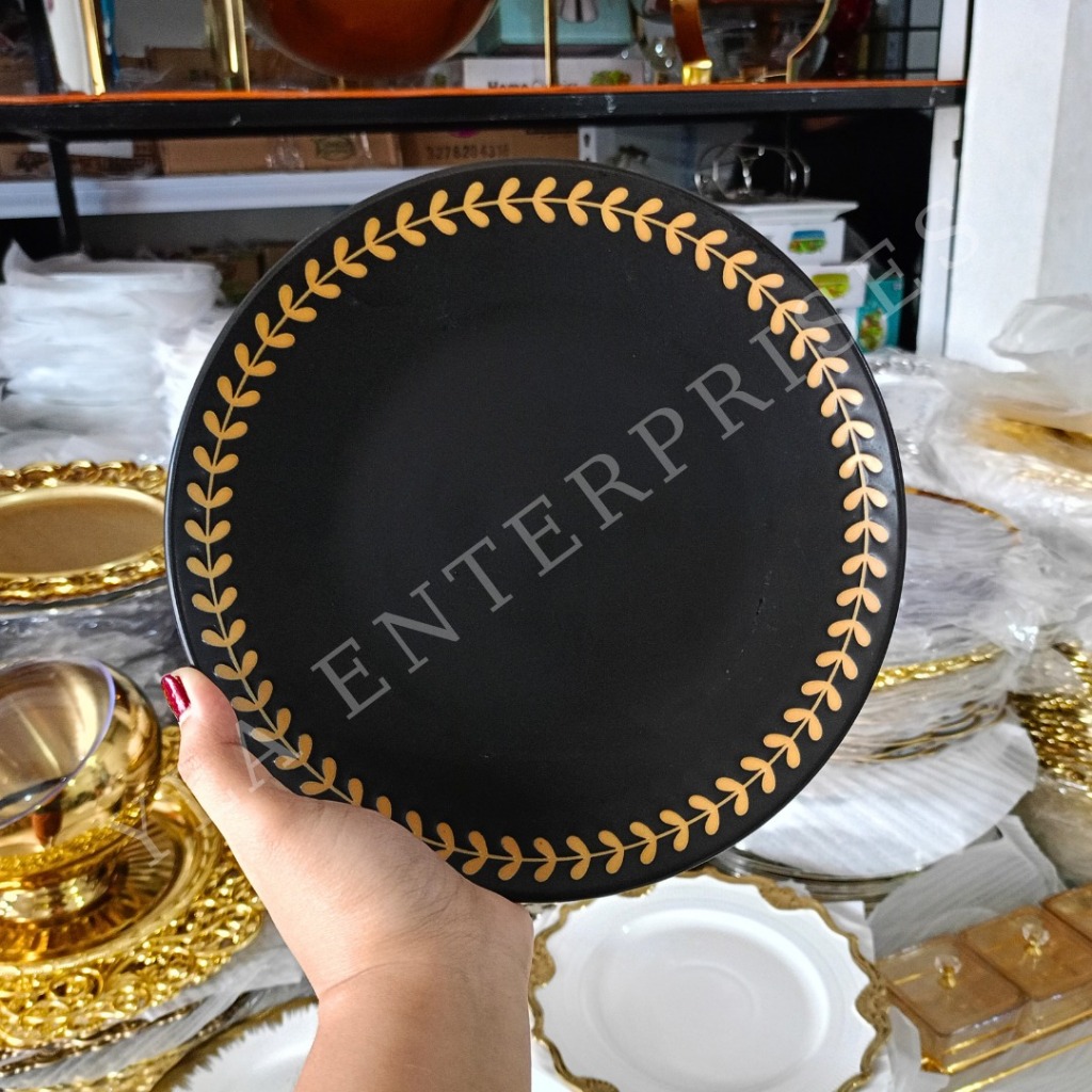 YLA - GOLD BLACK DINNER PLATE GOLD LINING AND WITH FERN DESIGN PORCELAIN - 10inches and 8inches