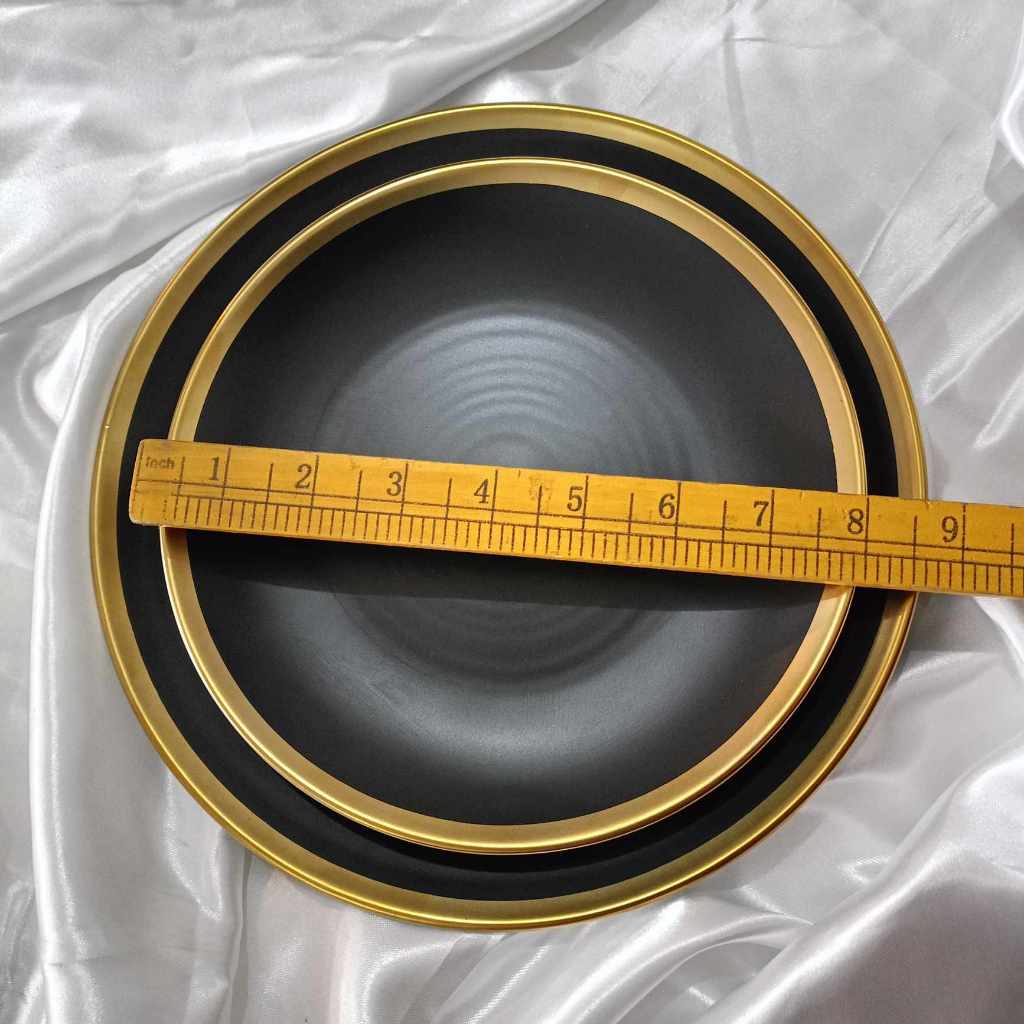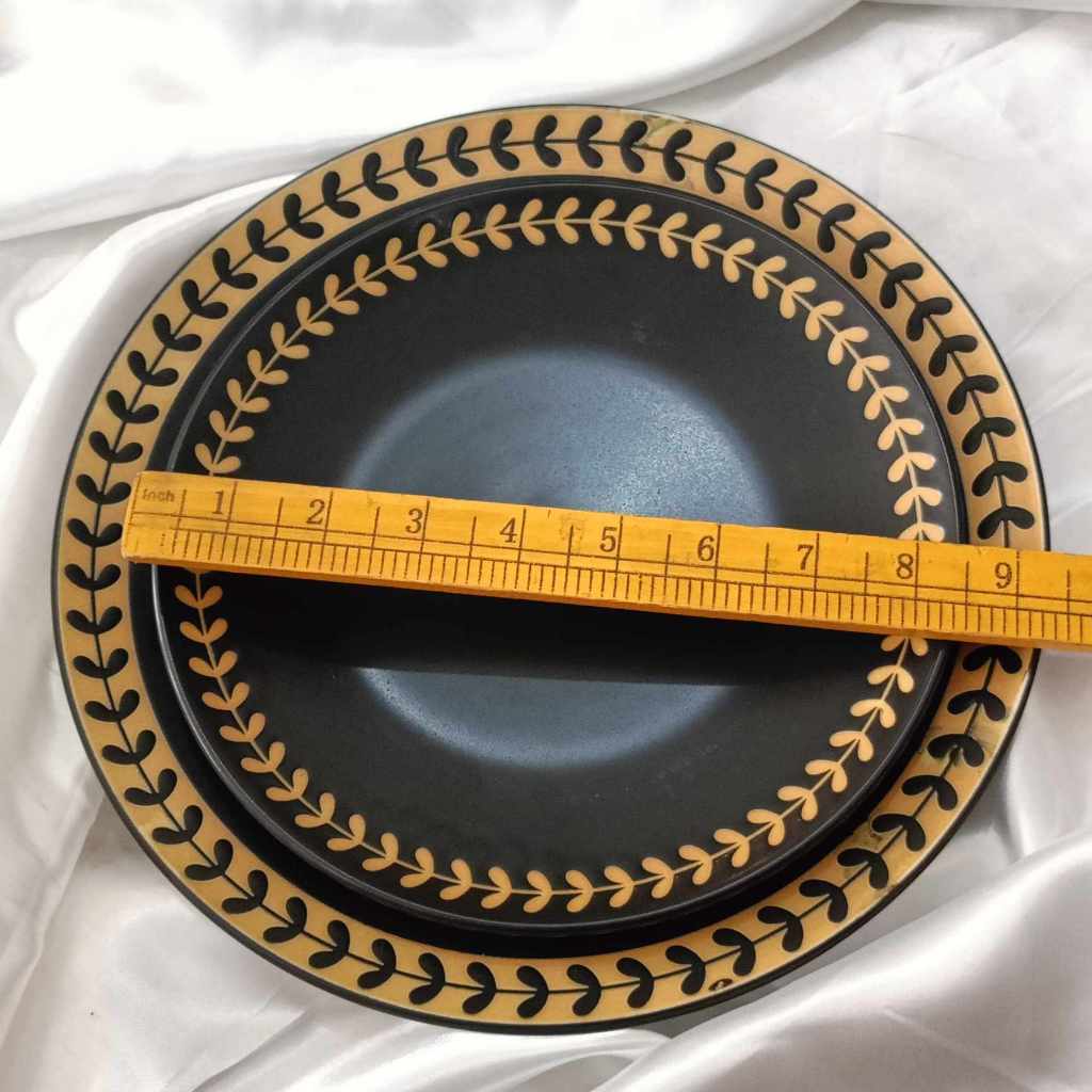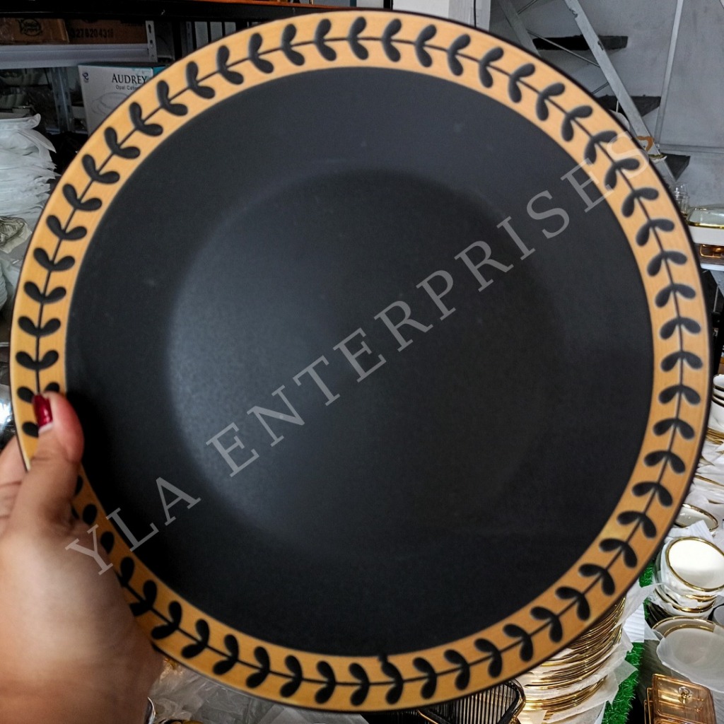 YLA - GOLD BLACK DINNER PLATE GOLD LINING AND WITH FERN DESIGN PORCELAIN - 10inches and 8inches