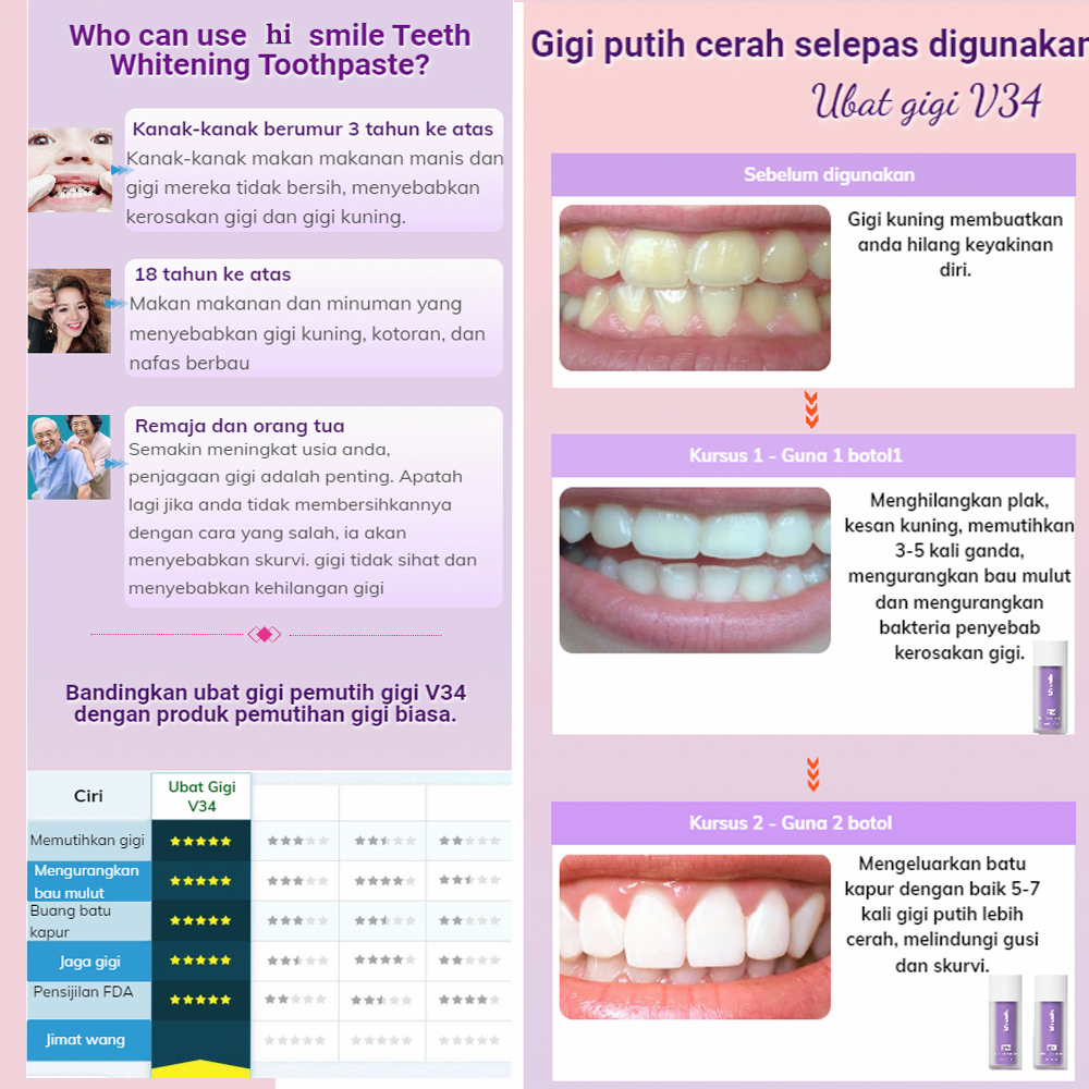 HiSmile Toothpaste v34 colour Correct Teeth Whitening Pampaputi ng ngipin Tartar Removal for Teeth