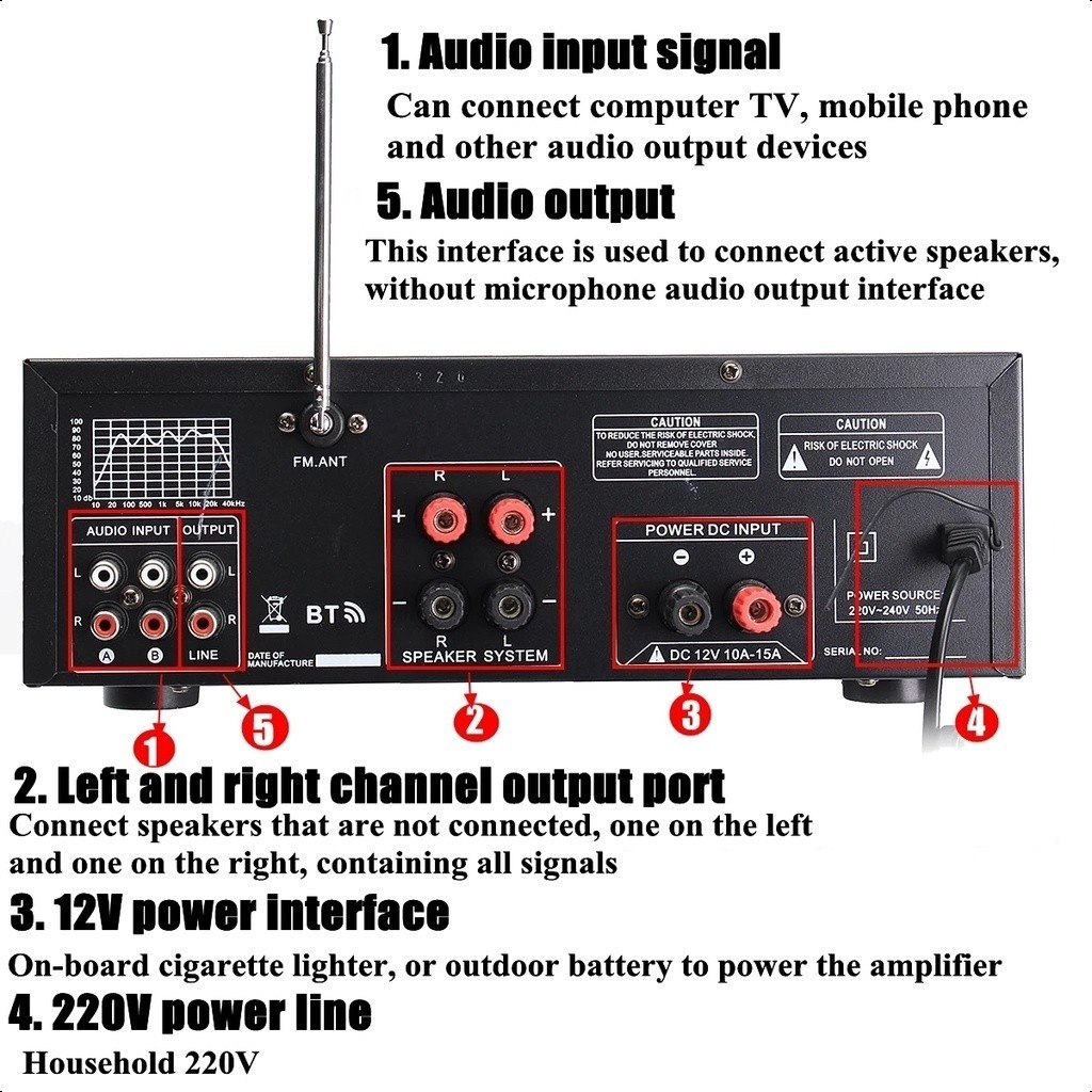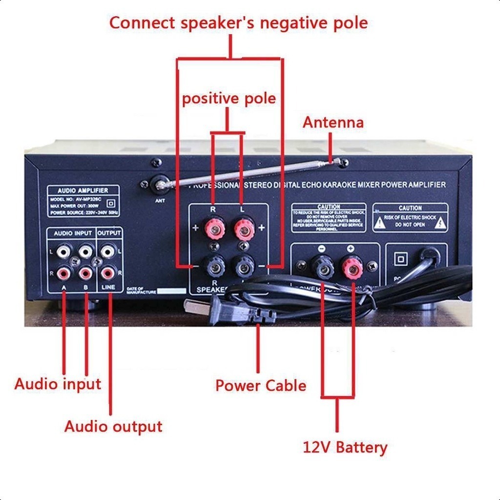 2000W 2 Channel Amplifier With Mixer Equalizer USB Bluetooth Fm Radio AV-MP326BT Home Stereo Audio