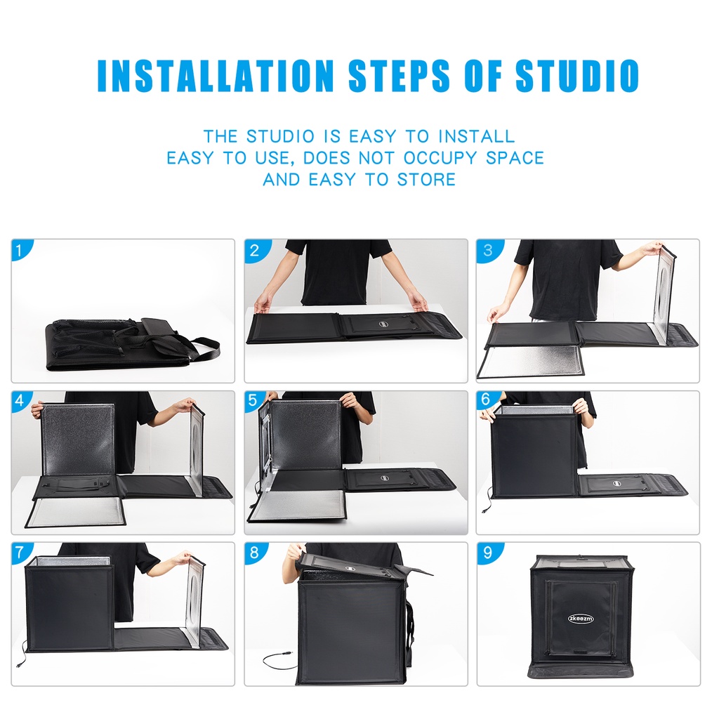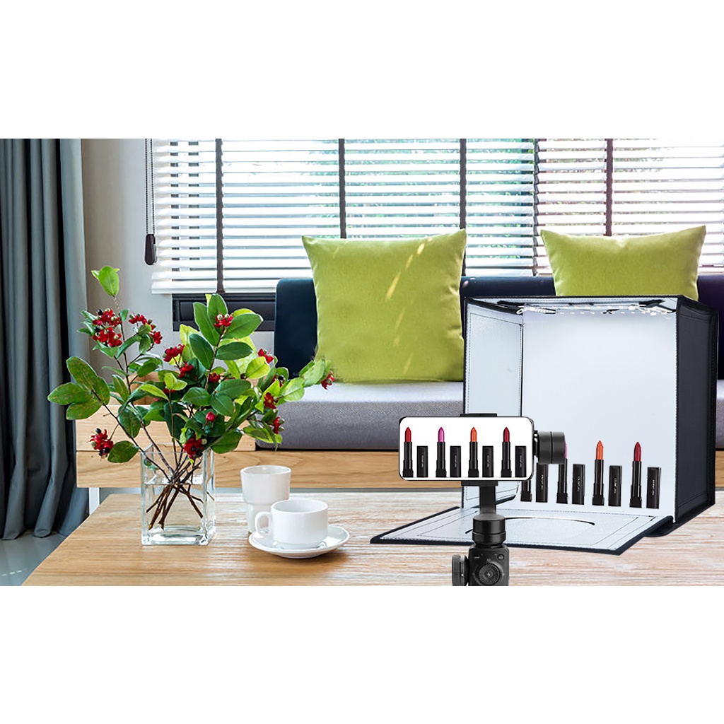 Light Box Photography 16"x16" Photo Box with Lights Foldable Photo Booth with Bi-Colour