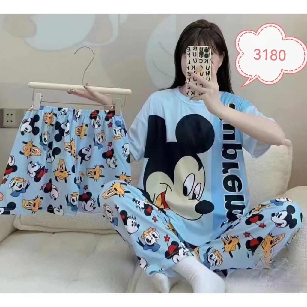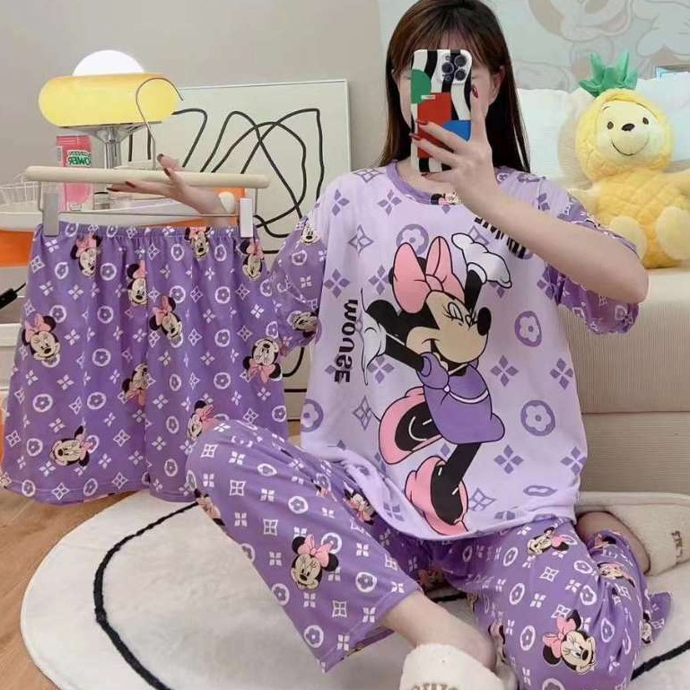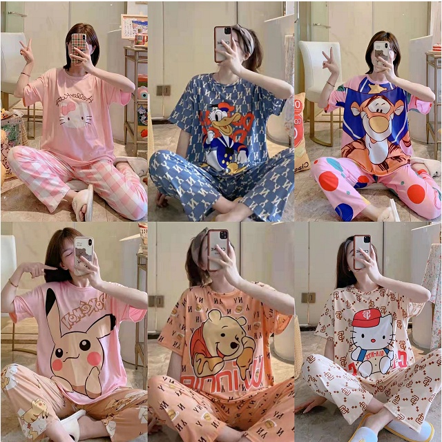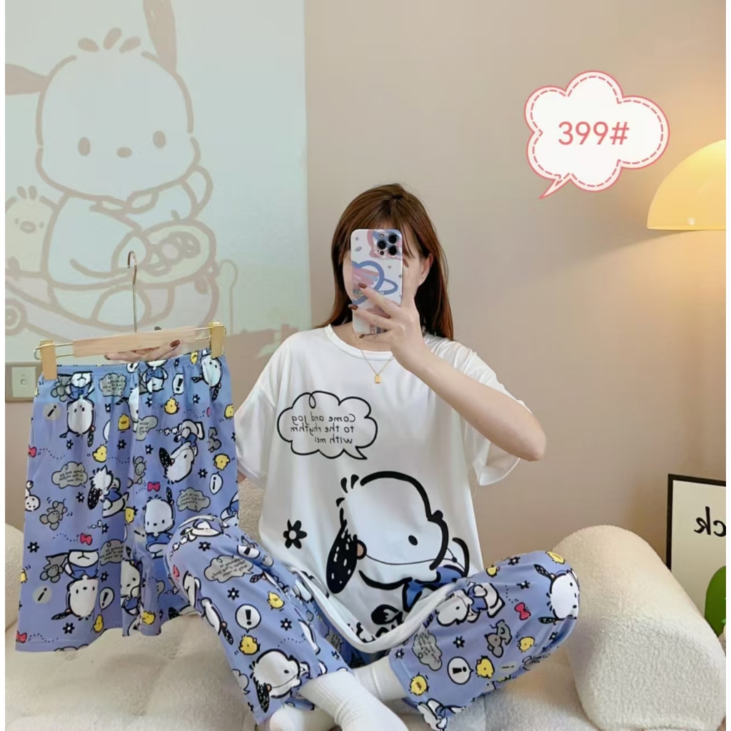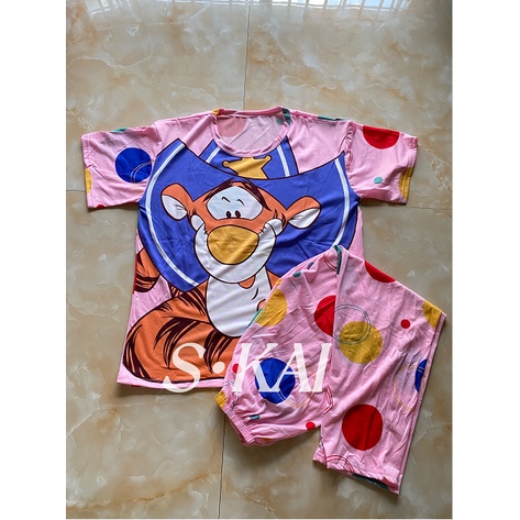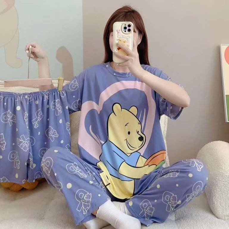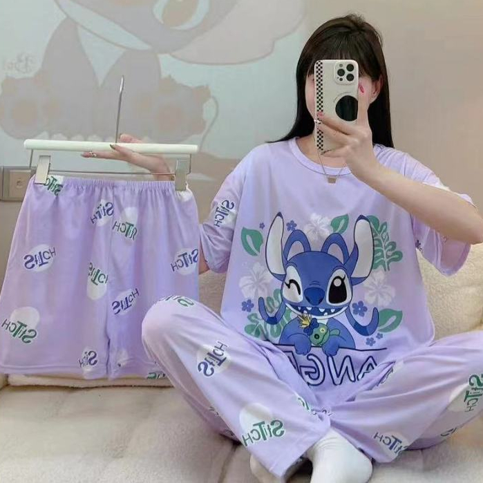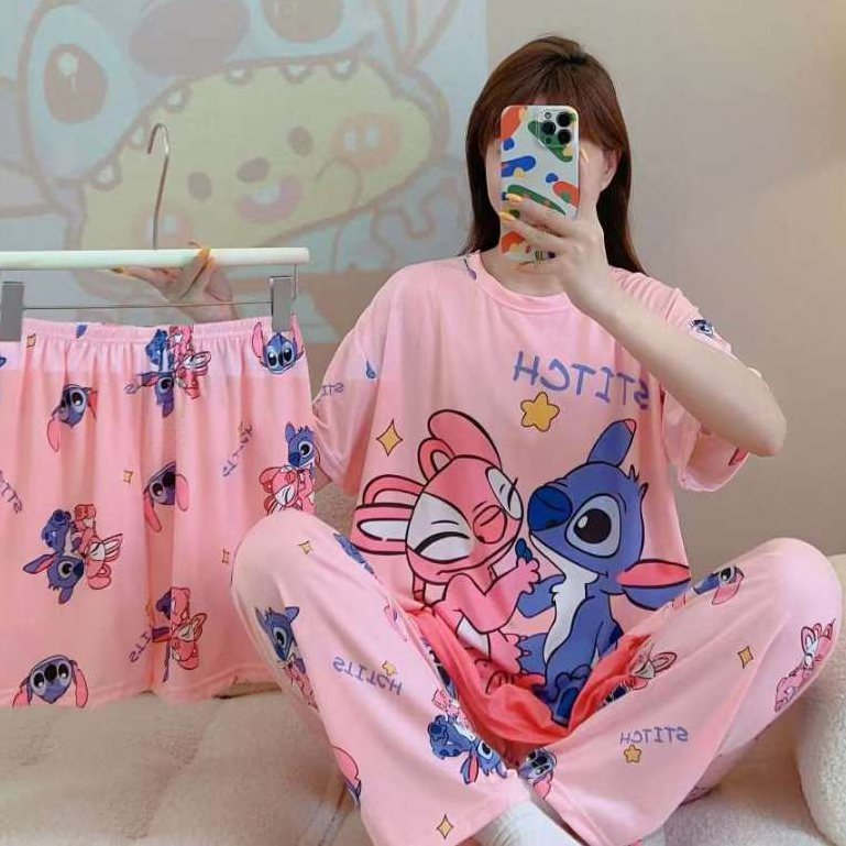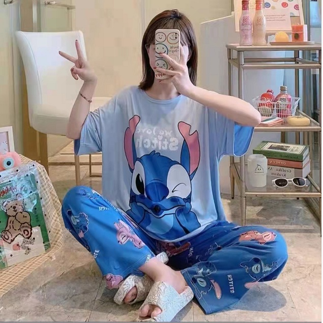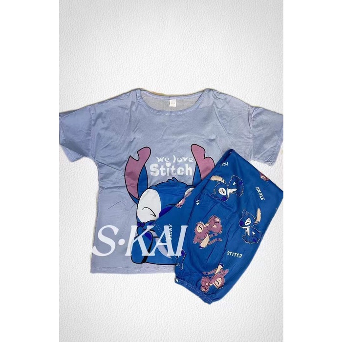Stitch Pajamas korean style Sleepwear Character Print Pajama Terno Short sleeve (Large Frame)