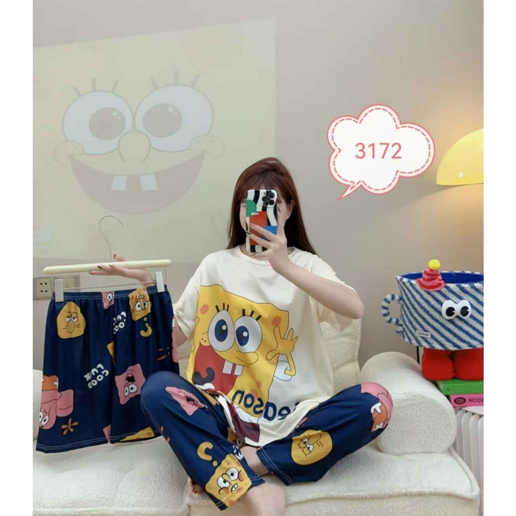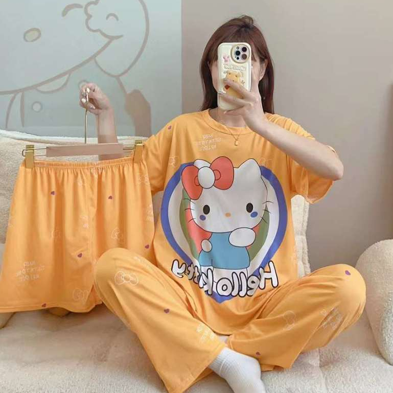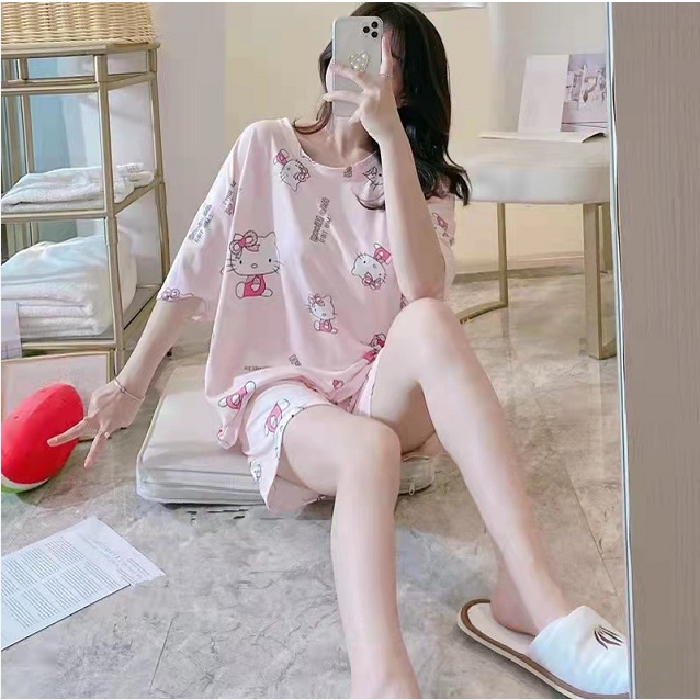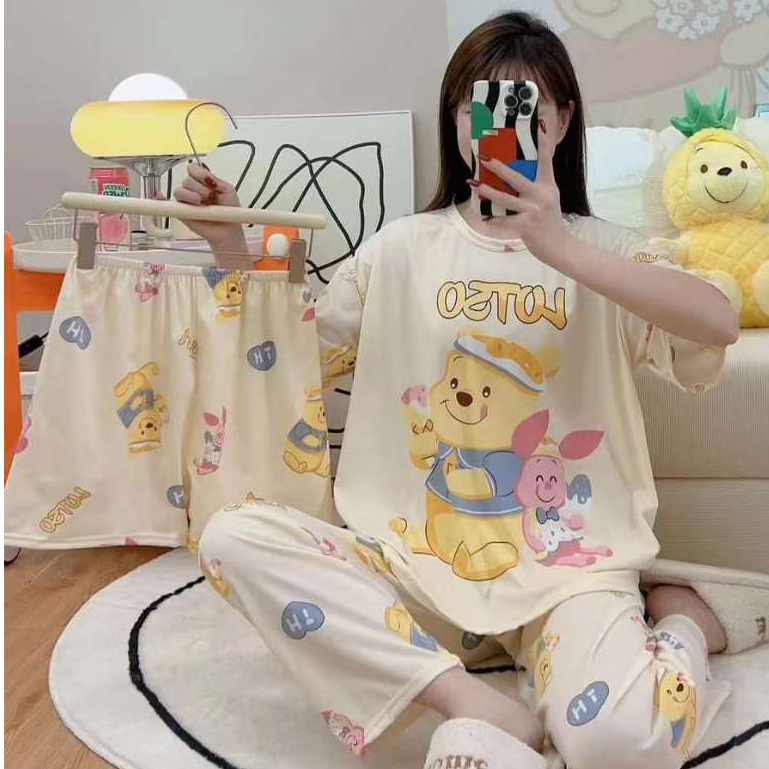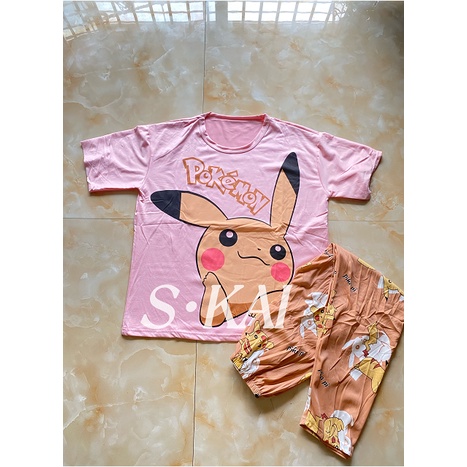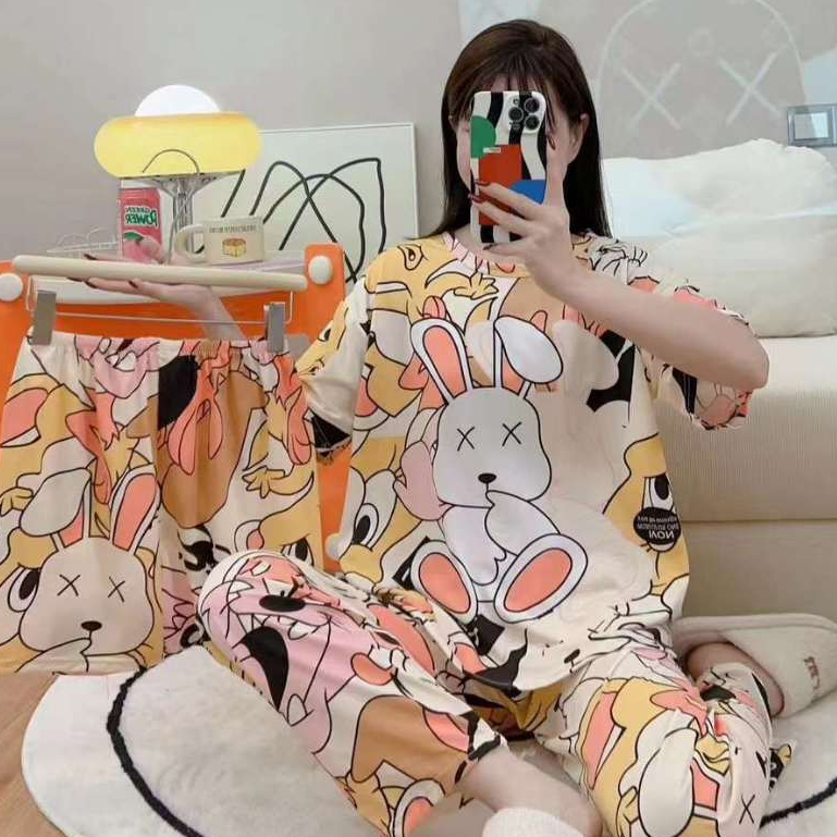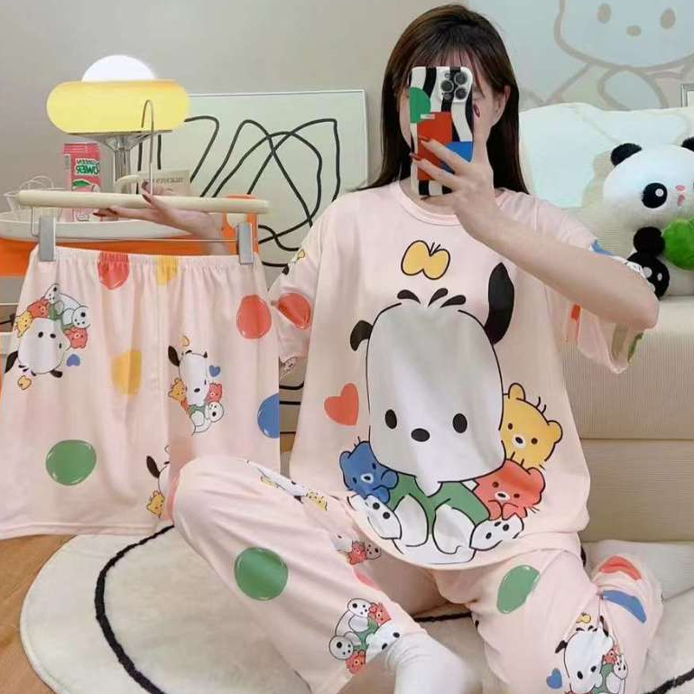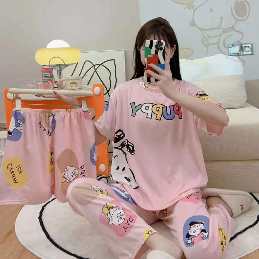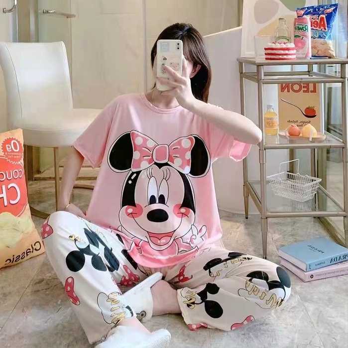Stitch Pajamas korean style Sleepwear Character Print Pajama Terno Short sleeve (Large Frame)