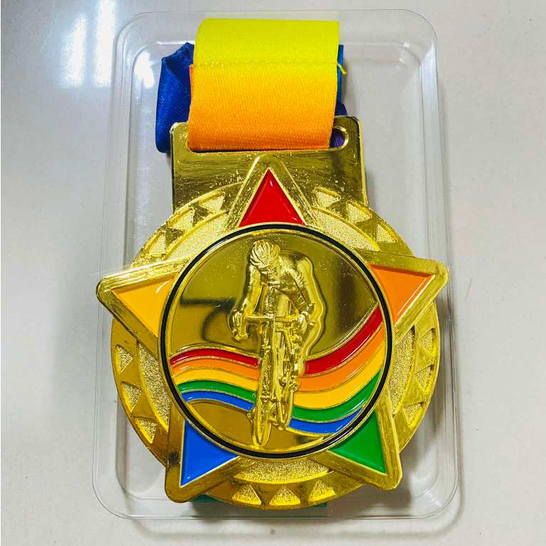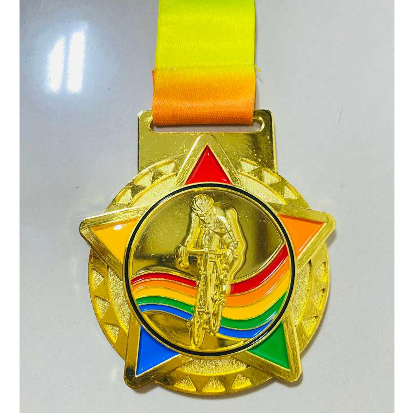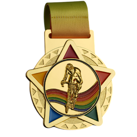 CYCLING STAR 6.5CM PREMIUM LACE MEDAL AVAILABLE IN GOLD ONLY(JPO57)