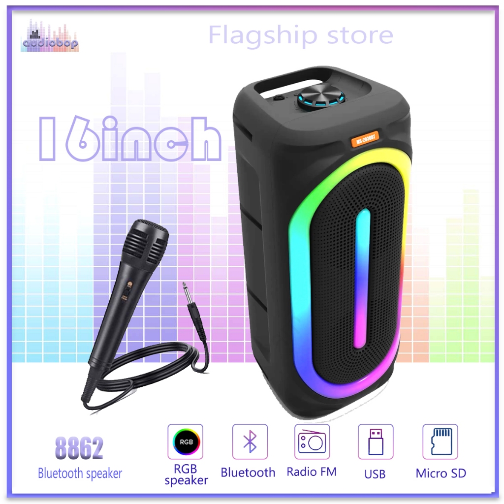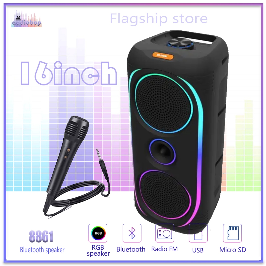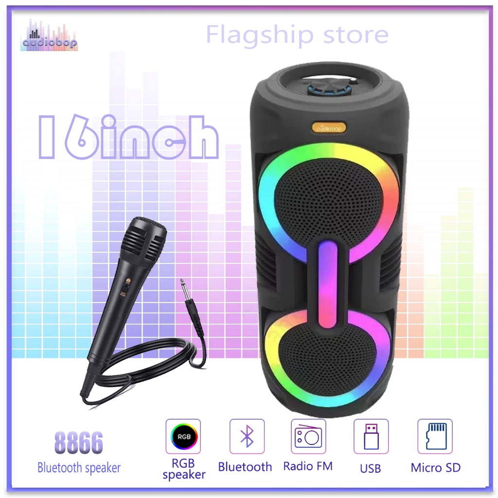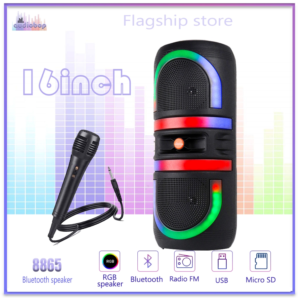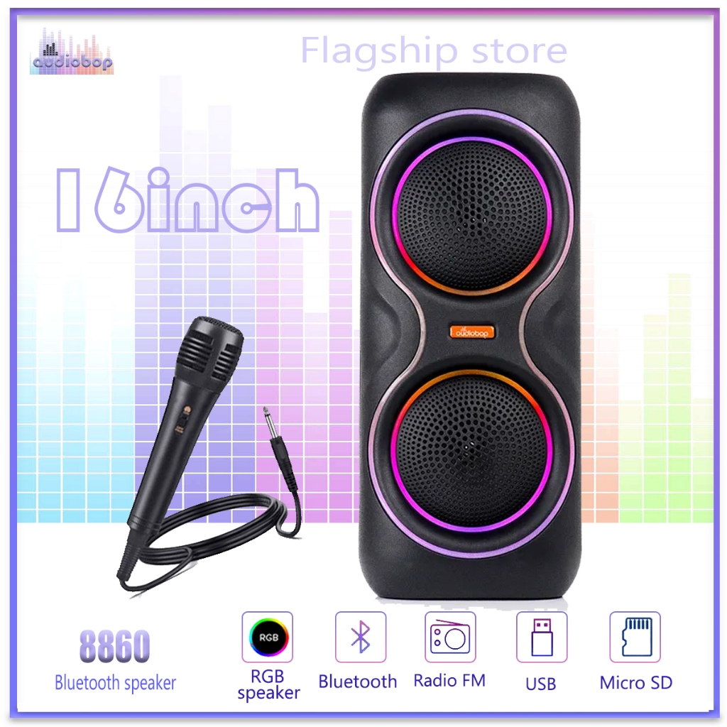 Audiobop Double 8Inch Speaker Bluetooth Wireless Speaker Karaoke FREE MIC
