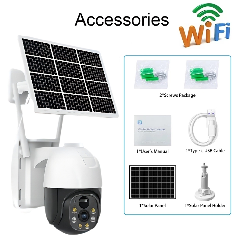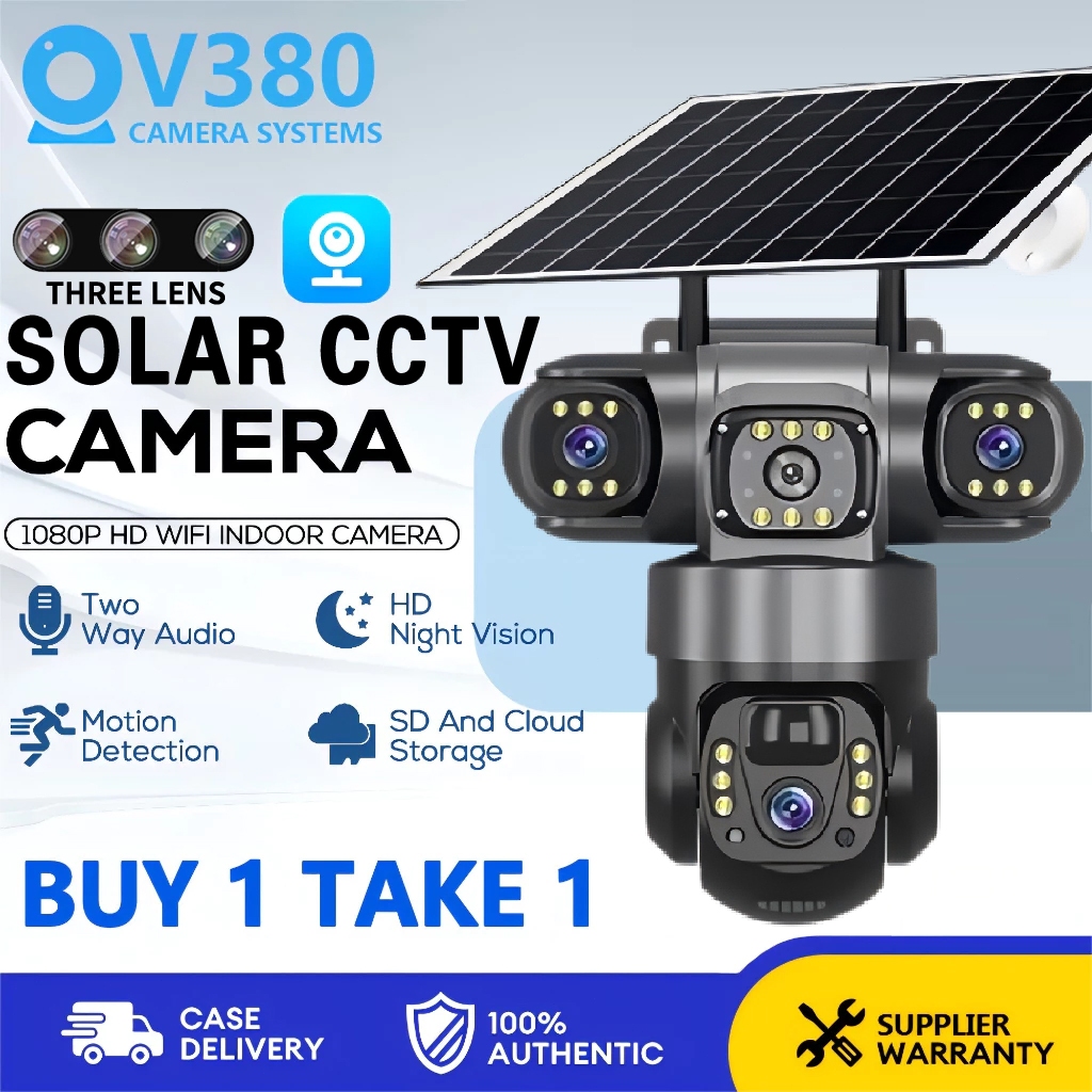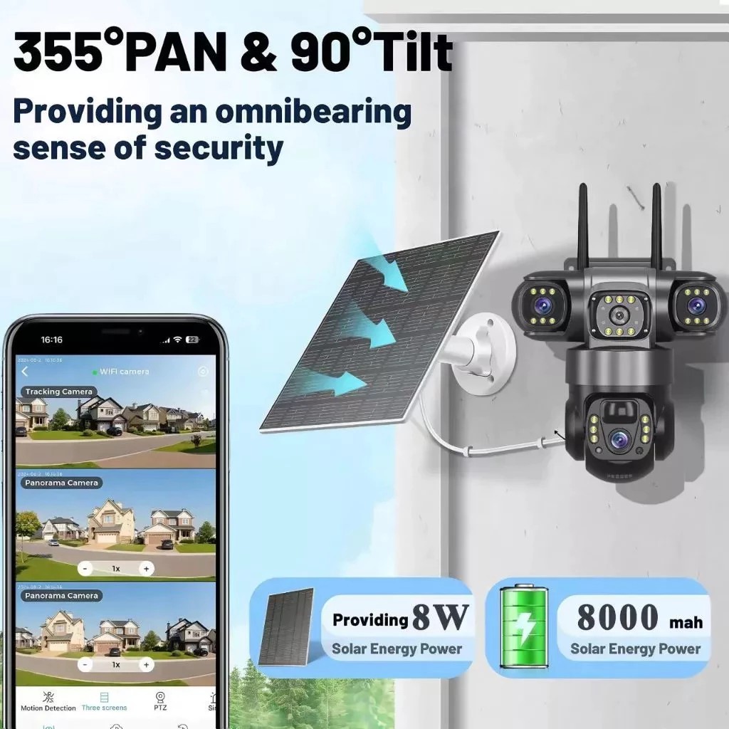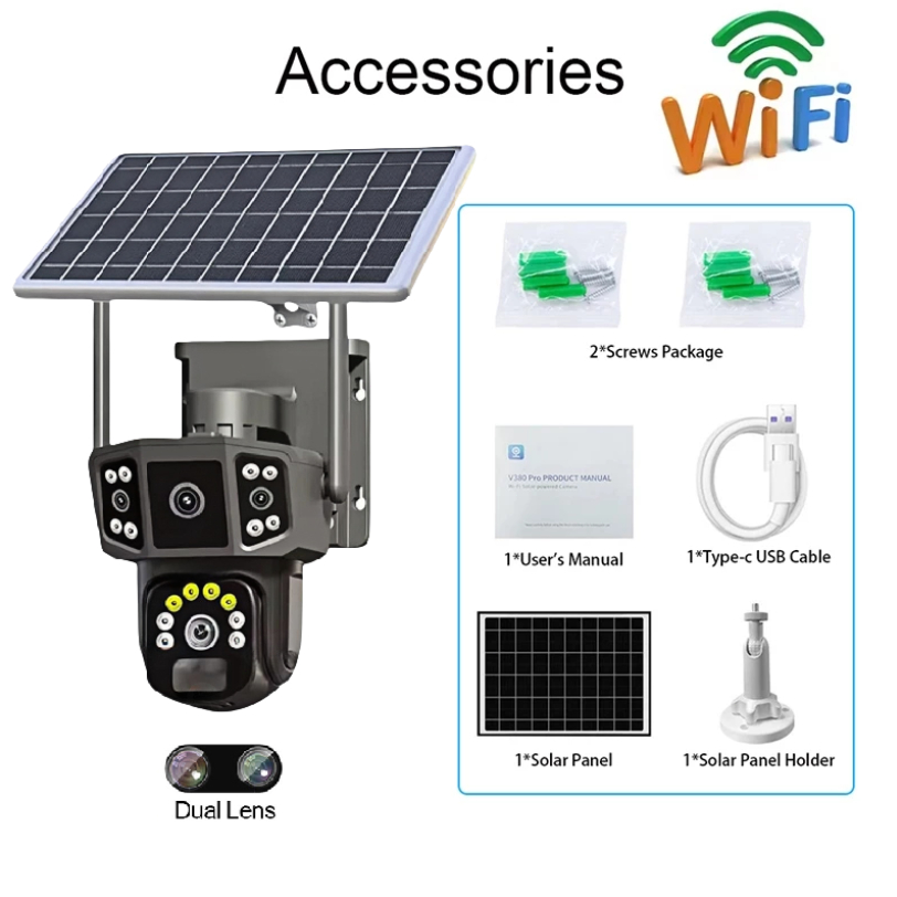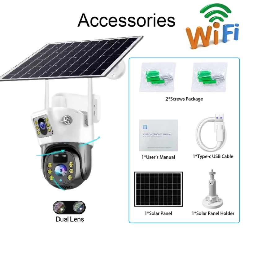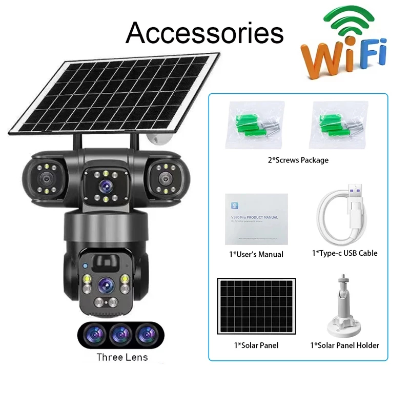 V380 Pro Solar CCTV Camera Outdoor With Wifi/SIM 3 Lens 3 Screen 4K Color Night Vision 2-Way Voice