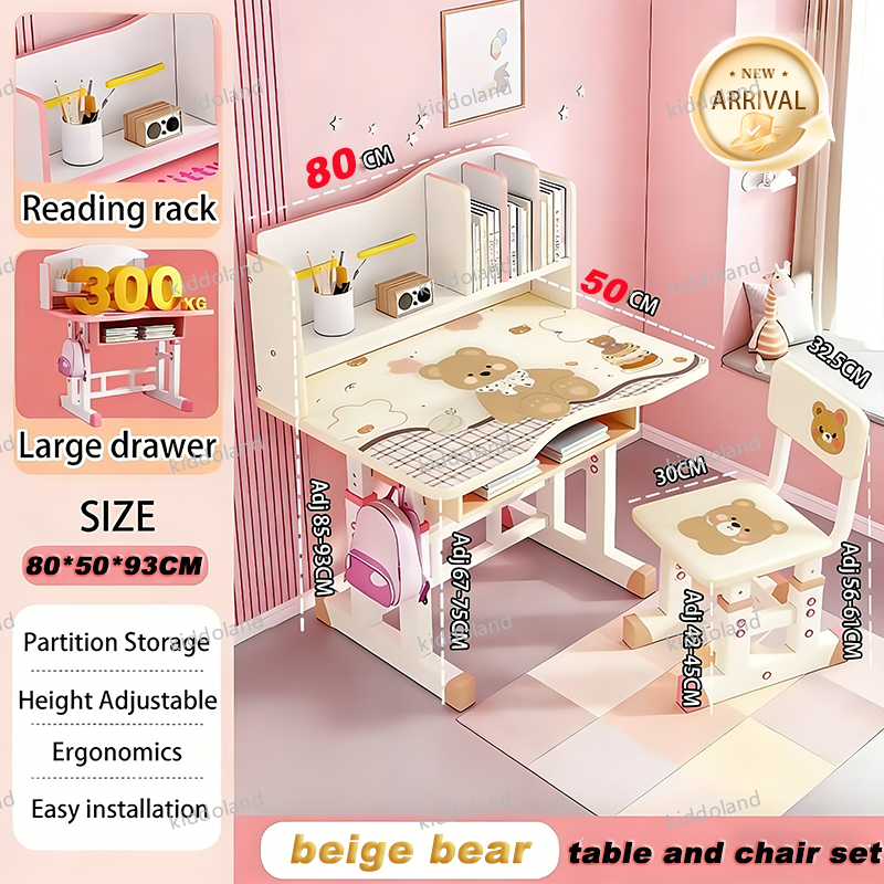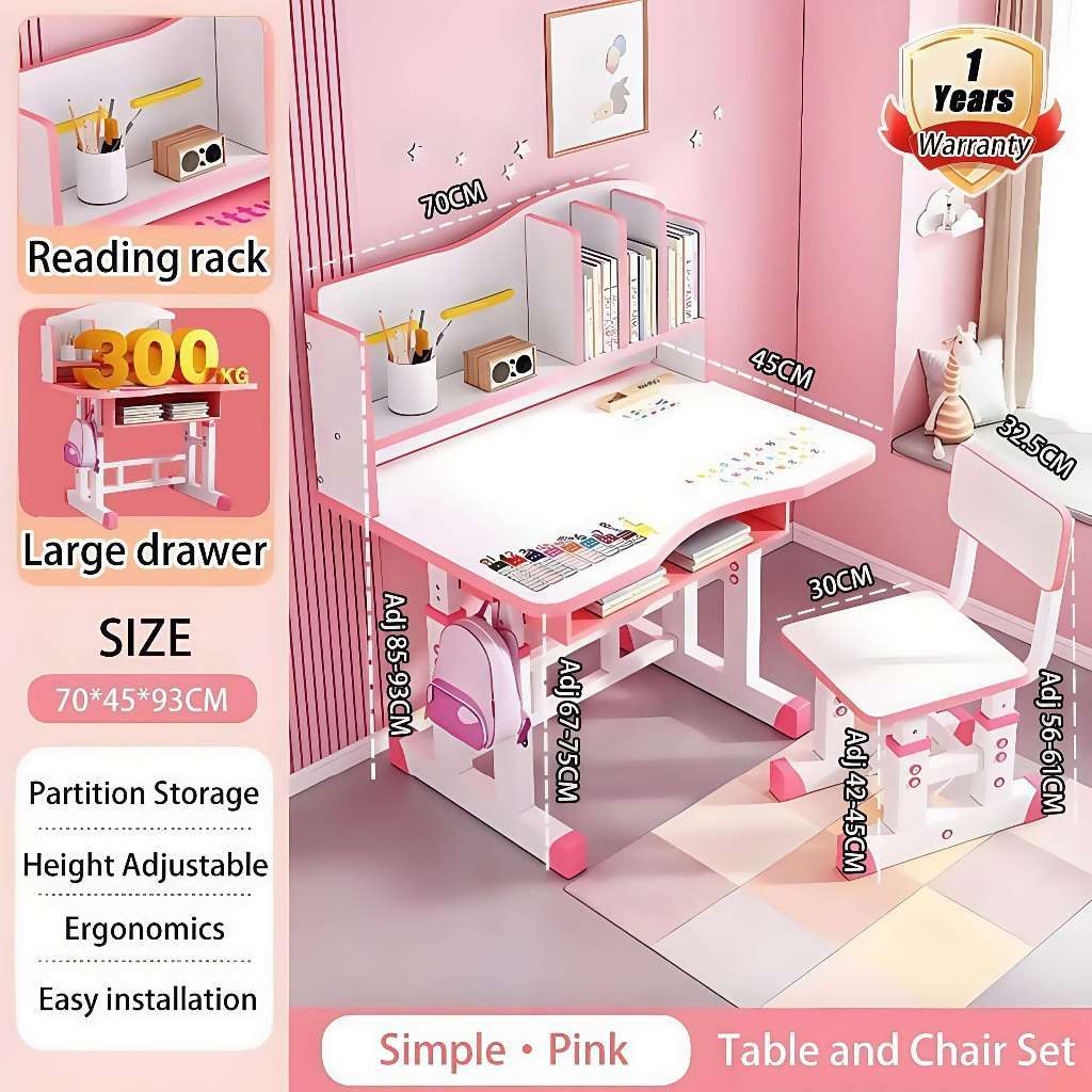 Study Table for Kids Ergonomic Adjustable Desk and Chair Set Writing Desk with Drawers 3-15 years