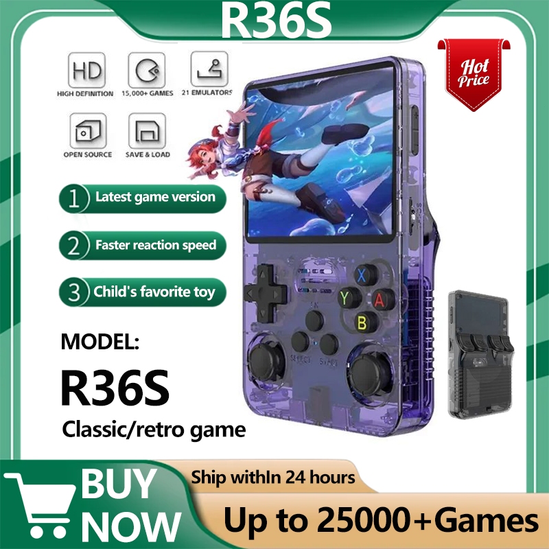 25000+Games R36S Handheld Video Game Console Retro Open Source Linux System 3.5 Inch IPS Screen