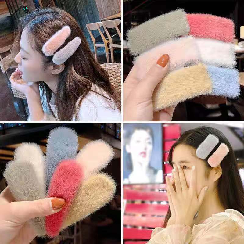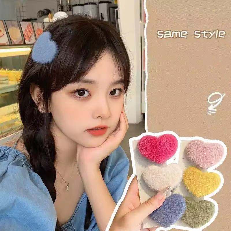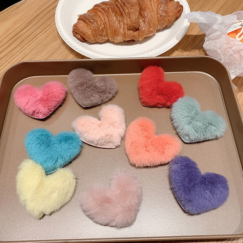 SJW New Love Plush Headbands for Women Side Bangs Clip Korean Autumn Winter Hair Clip