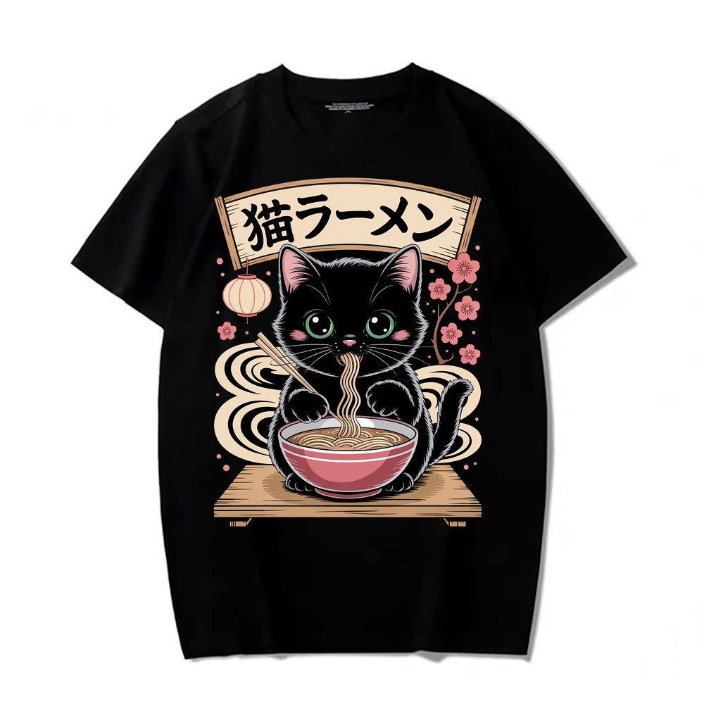 Oversized Cat T-Shirt Ramen Japanese Food Kawaii Cute Anime Street Loose Tee