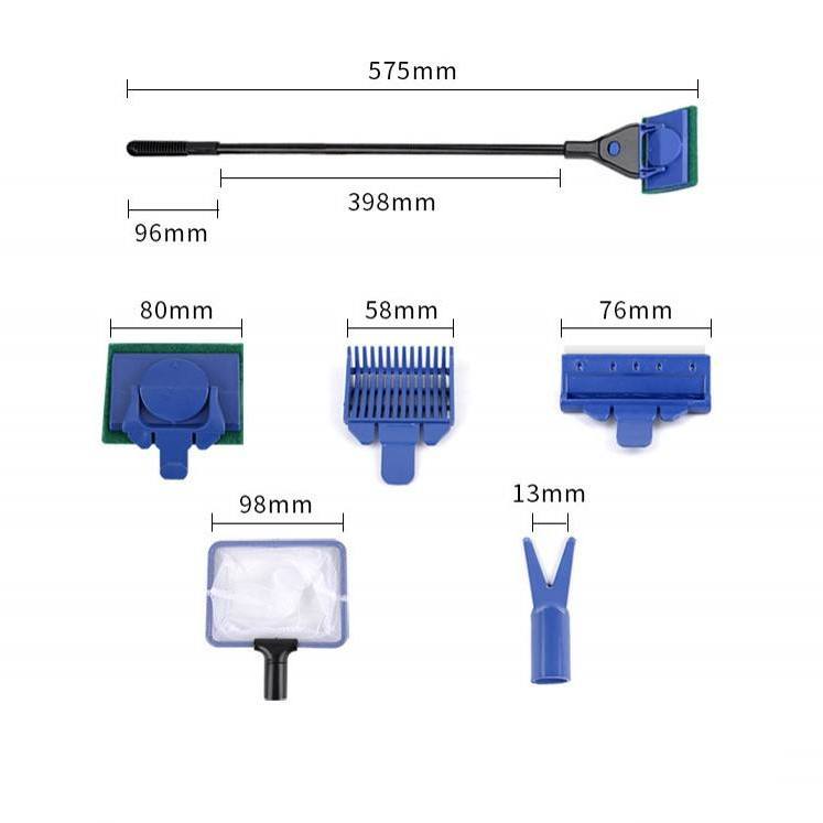 5 in 1 Aquarium Cleaning Tool Set Telescopic Handle Fish Net Algae Scraper Glass Cleaner Kit