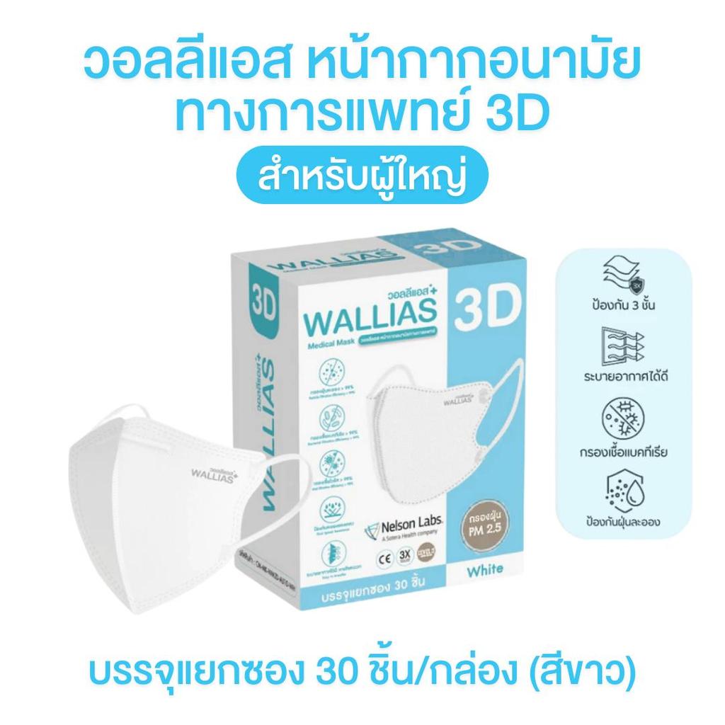 Wallias 3D 1 Box Contains 30 Pieces Medical Grade Face Mask 3D Shape Individually Packed White Good Ventilation Soft Strap