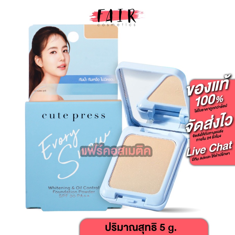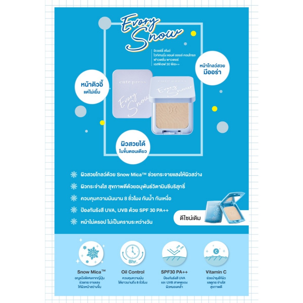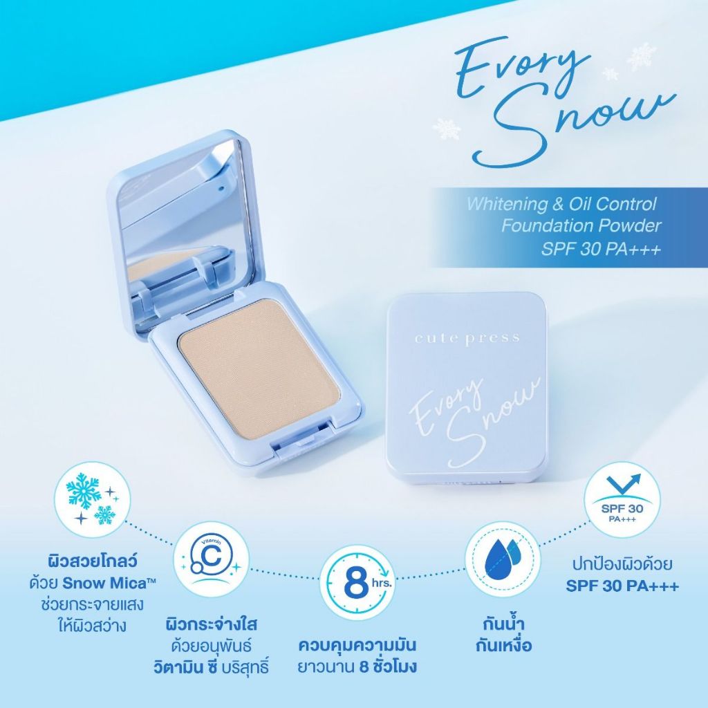 Cute Press Evory Snow Whitening & Oil Control Foundation Powder Pressed Powder Oil Control Powder [N2] Color Puff Glow Skin