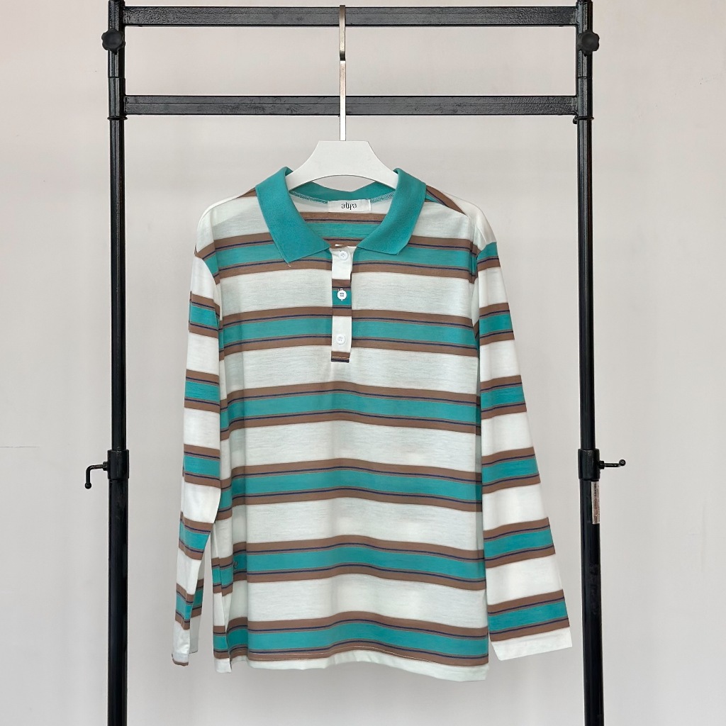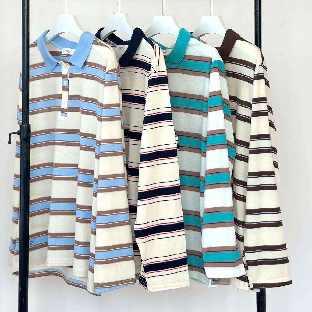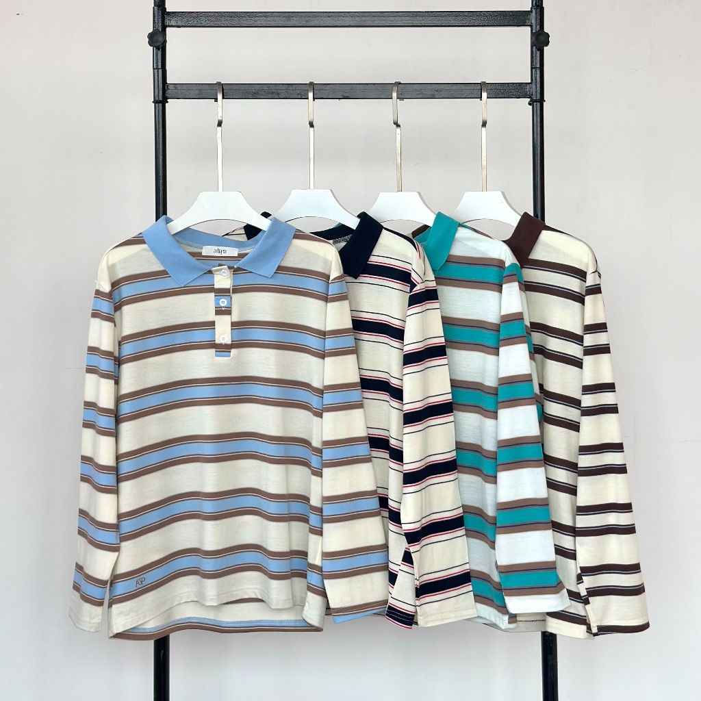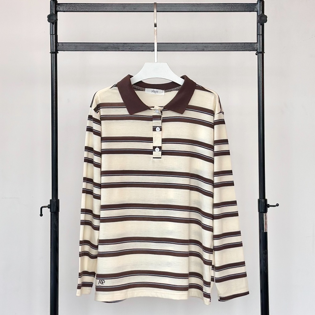 Atipashop-MAISIE POLO T-SHIRT Long-Sleeved SHIRT Collar Striped Pattern oversize Silk Fabric