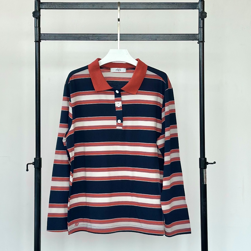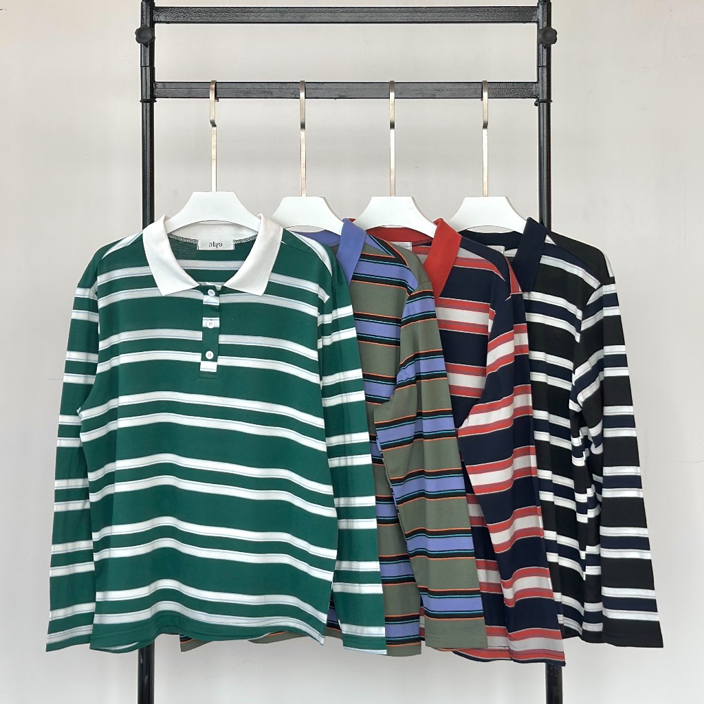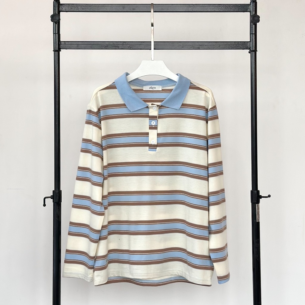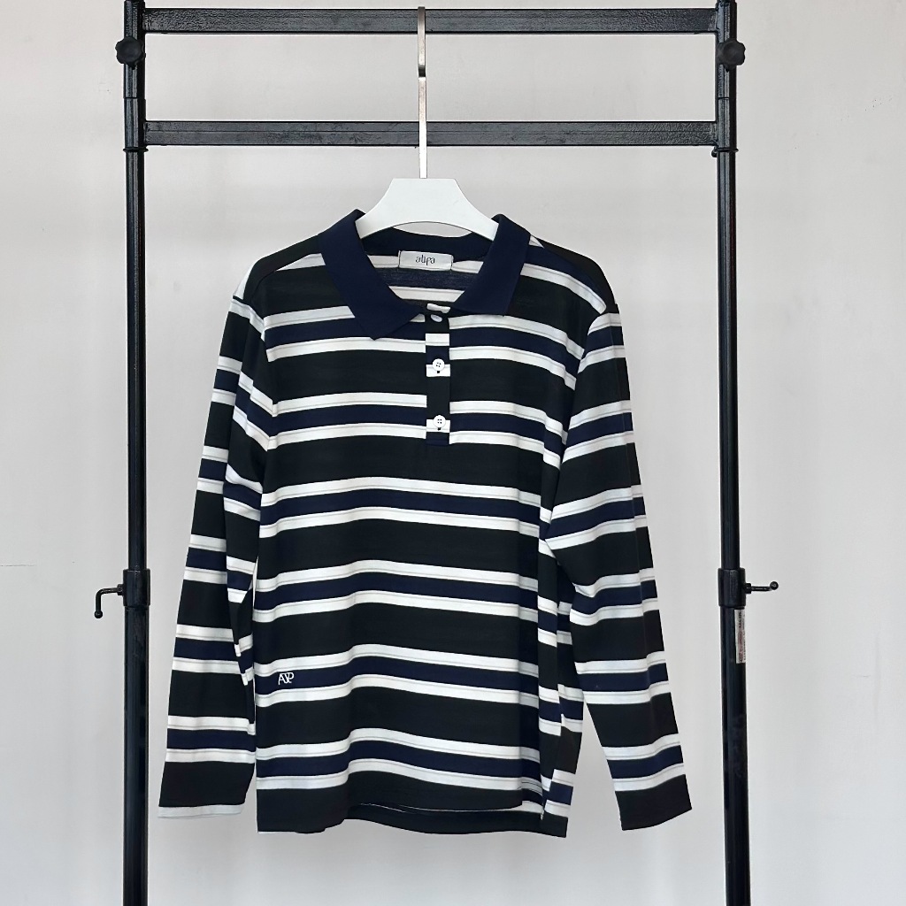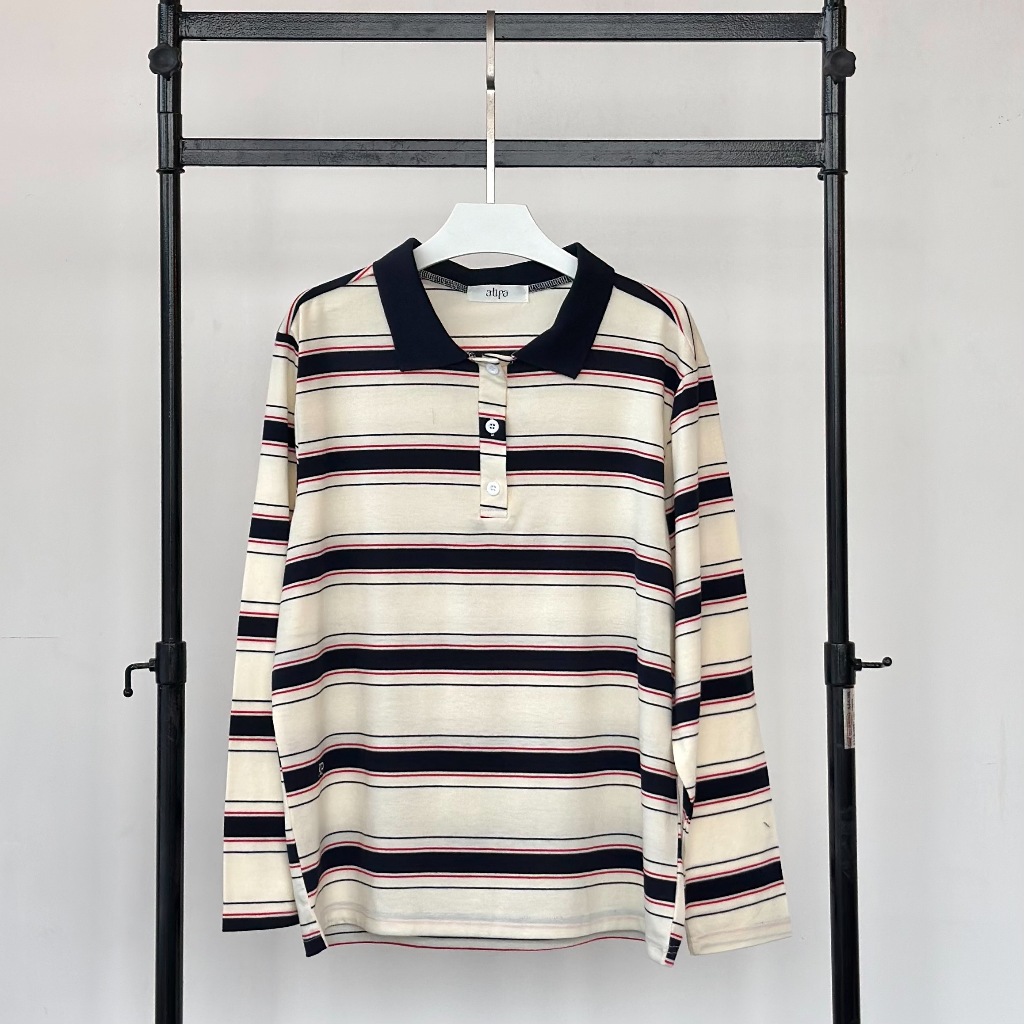 Atipashop-MAISIE POLO T-SHIRT Long-Sleeved SHIRT Collar Striped Pattern oversize Silk Fabric