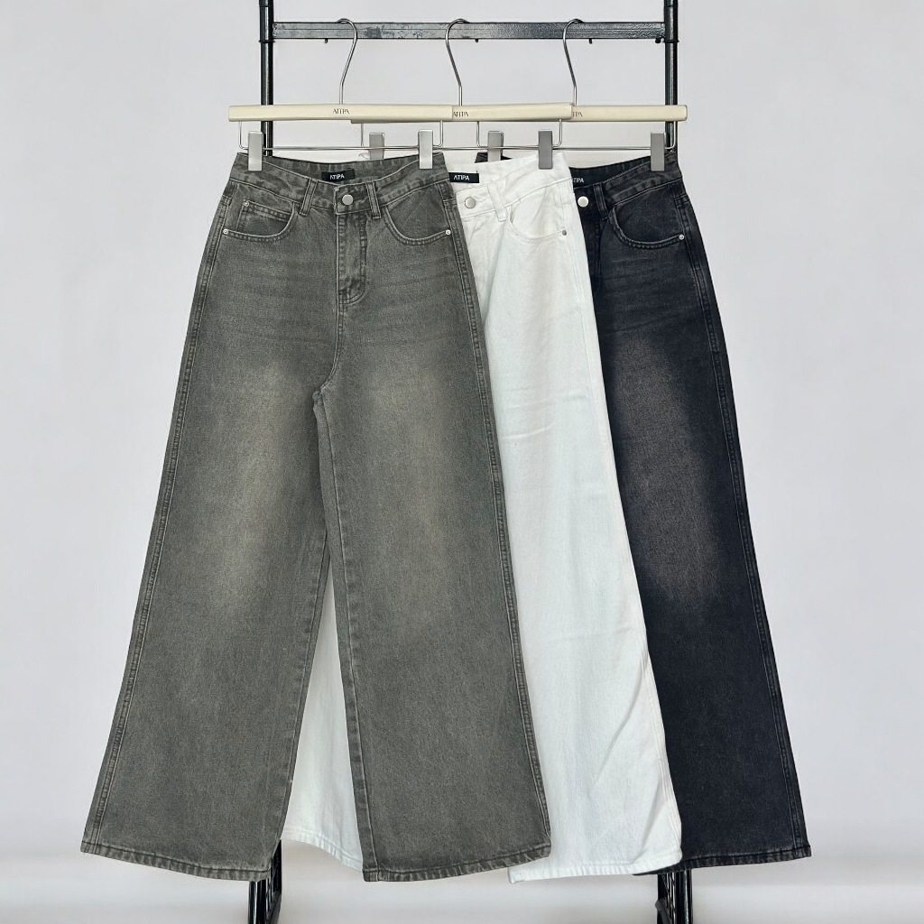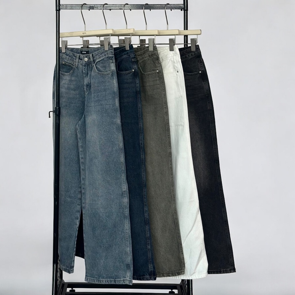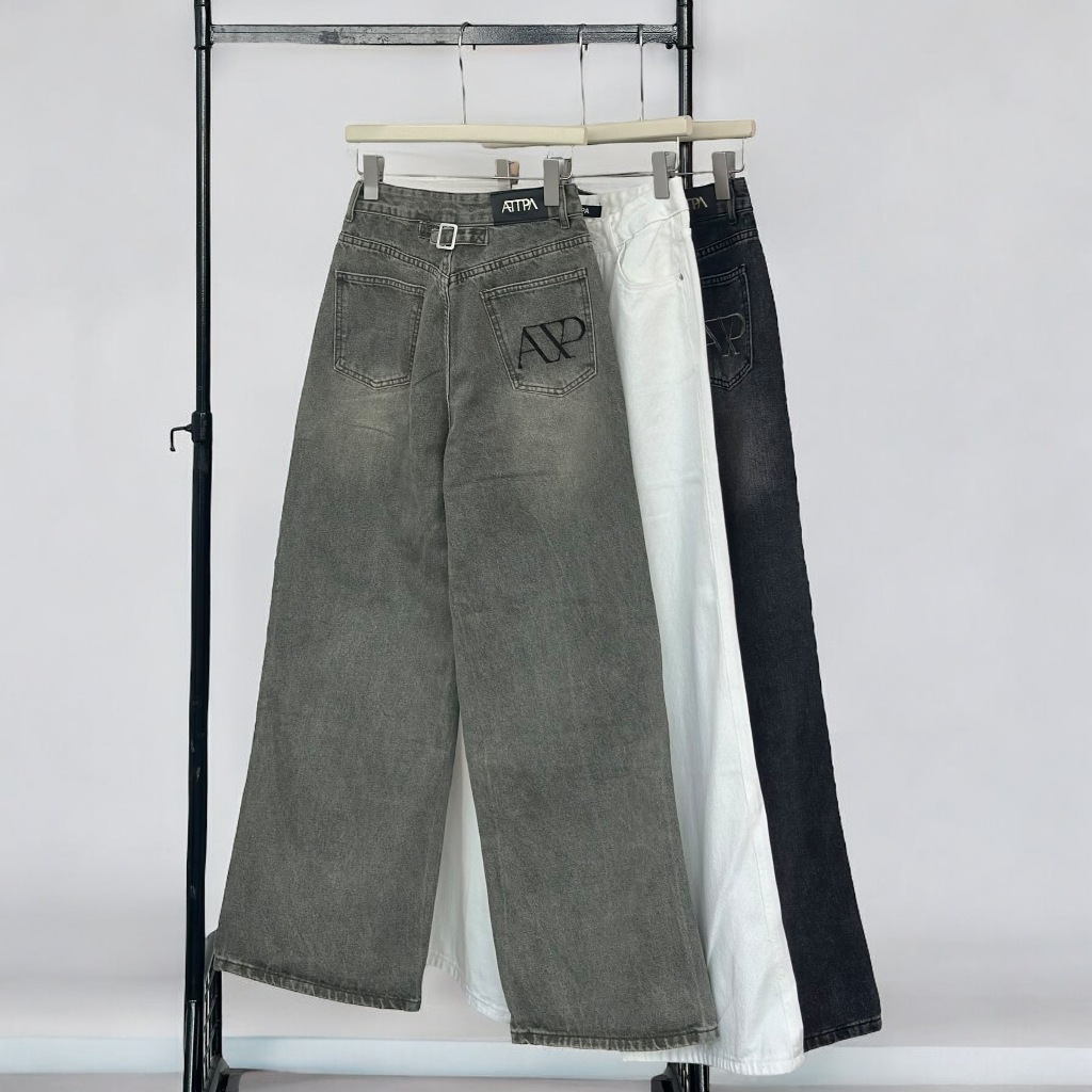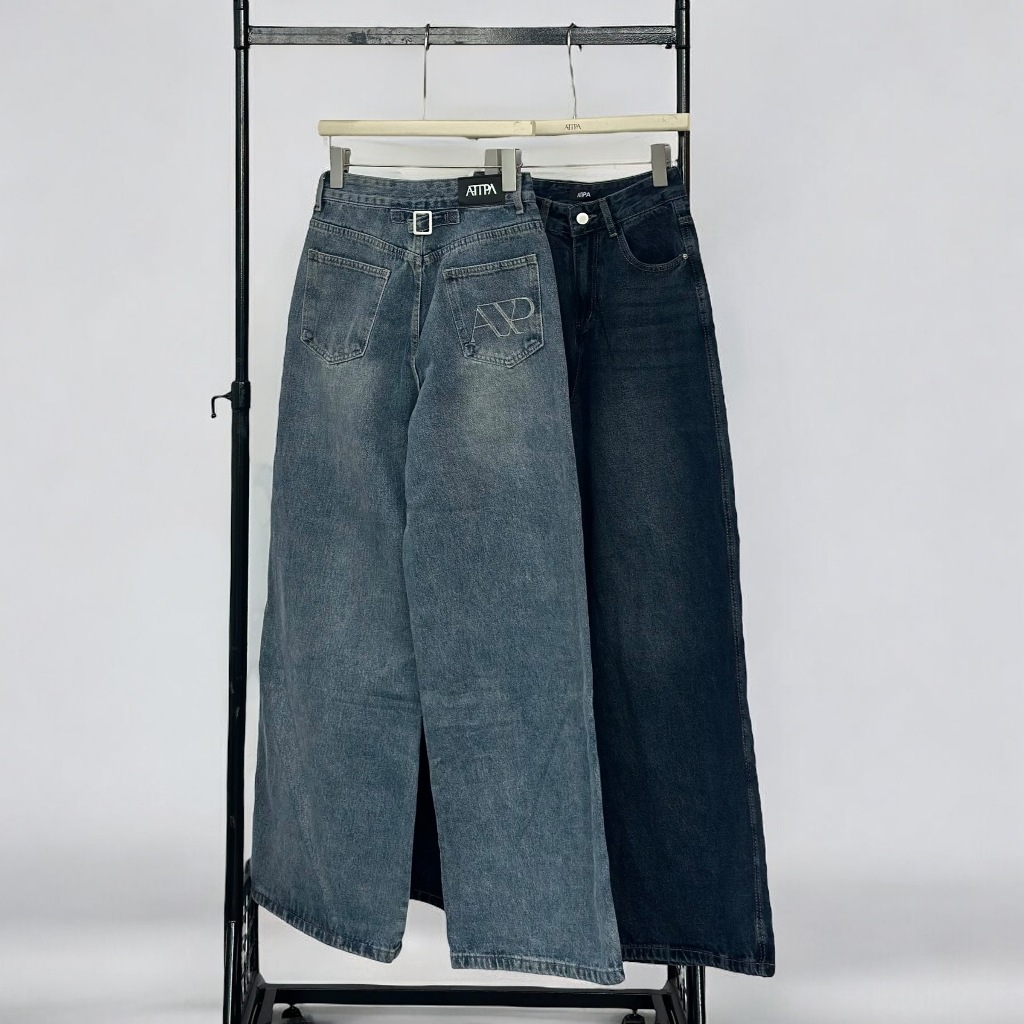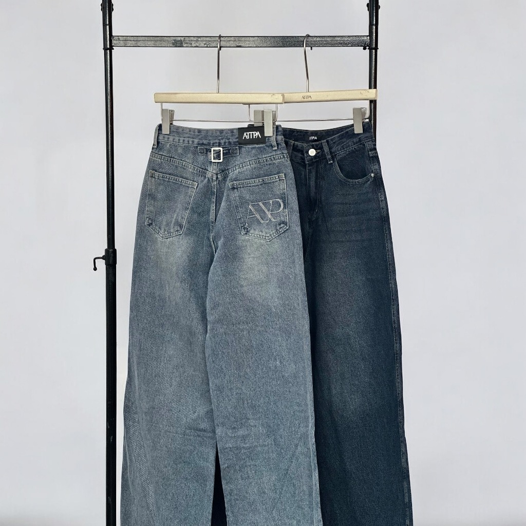 Atipashop-SOLVE STRAIGHT ATP JEANS Long Pants Medium Barrel Shape Atipa Embroidered Detail On The Back