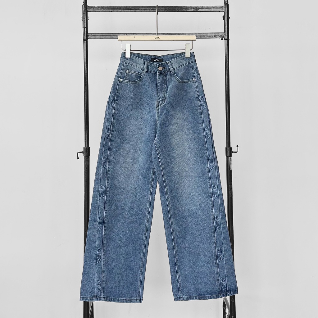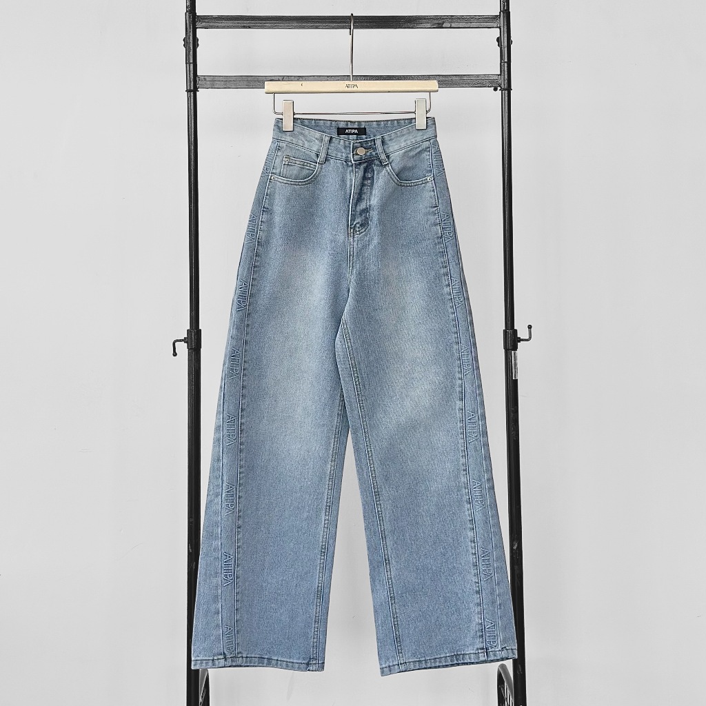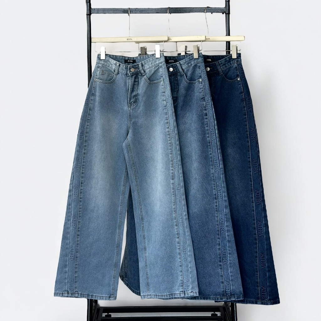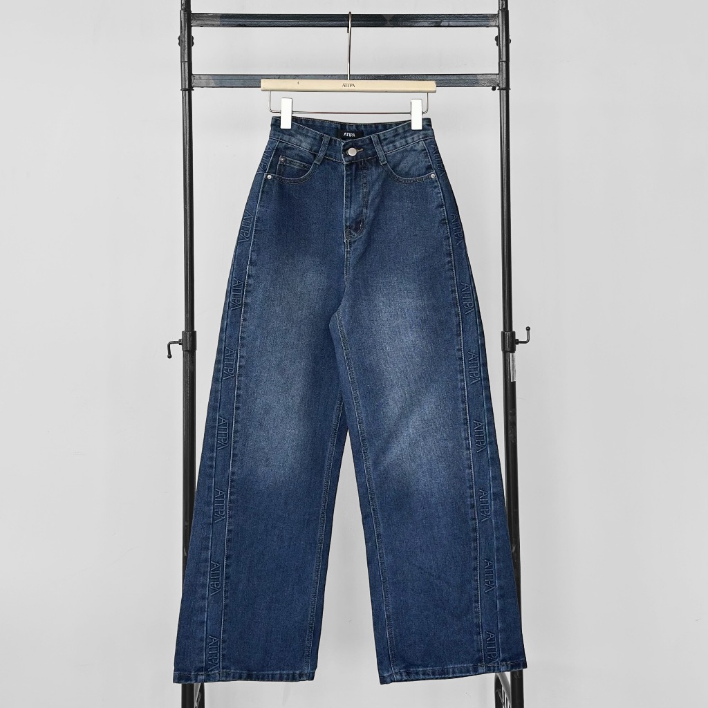 Atipashop-GLAMOURIZE ATP JEANS Long Pants Medium Barrel Shape Atipa Embossed Logo Edge Detail On The Side