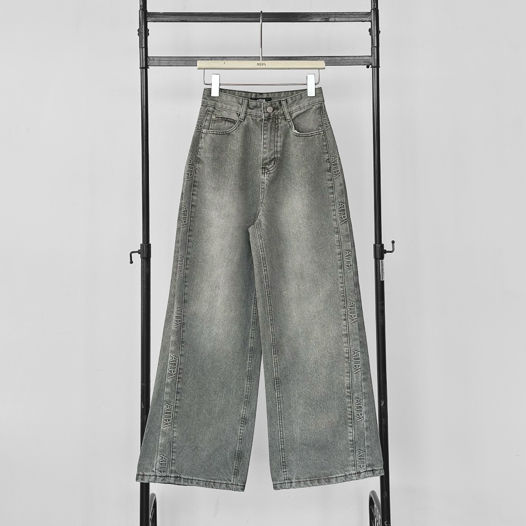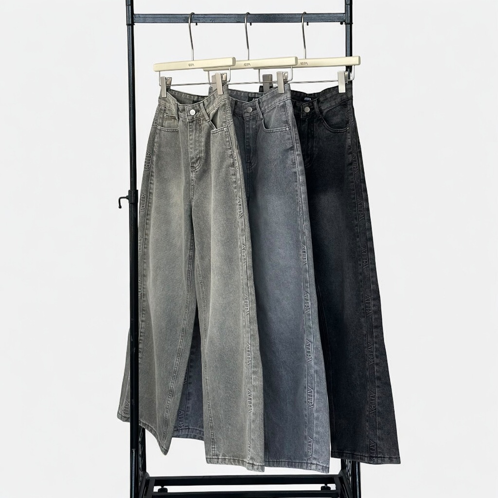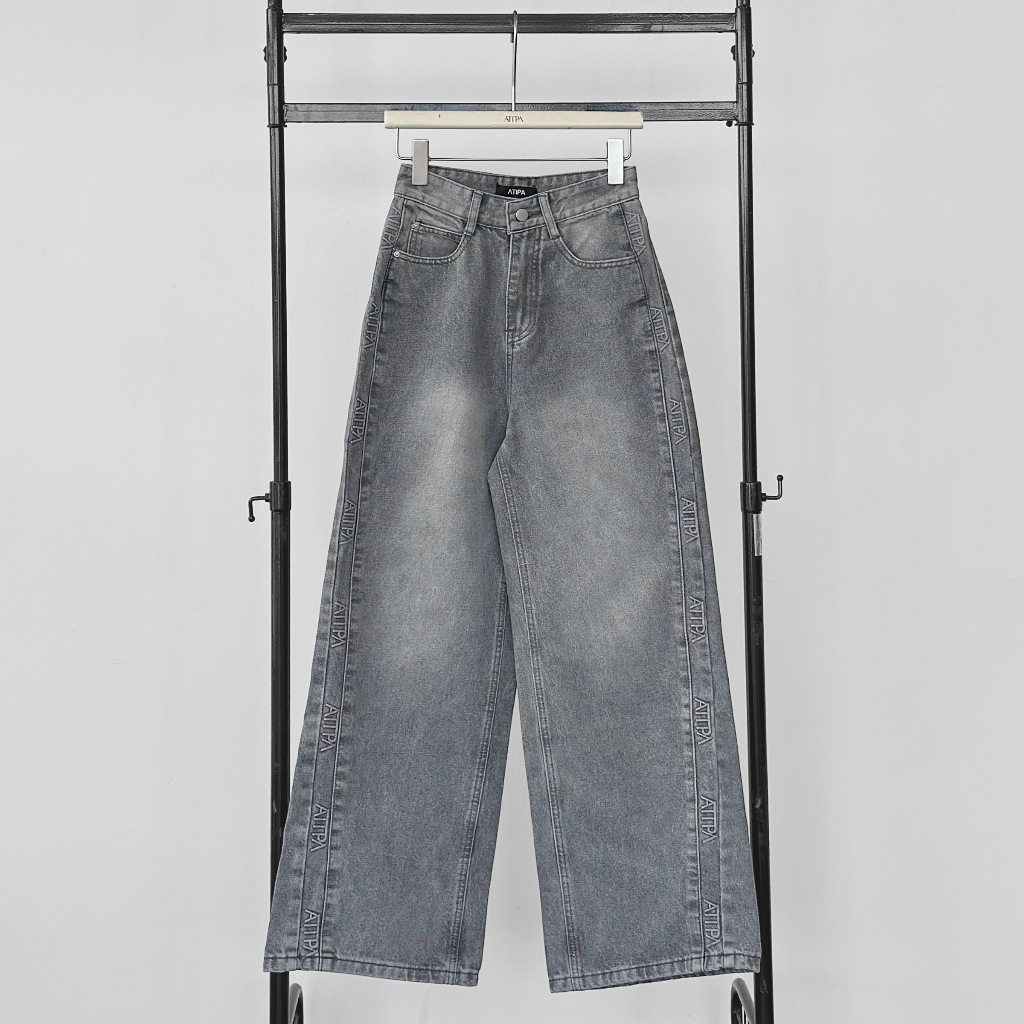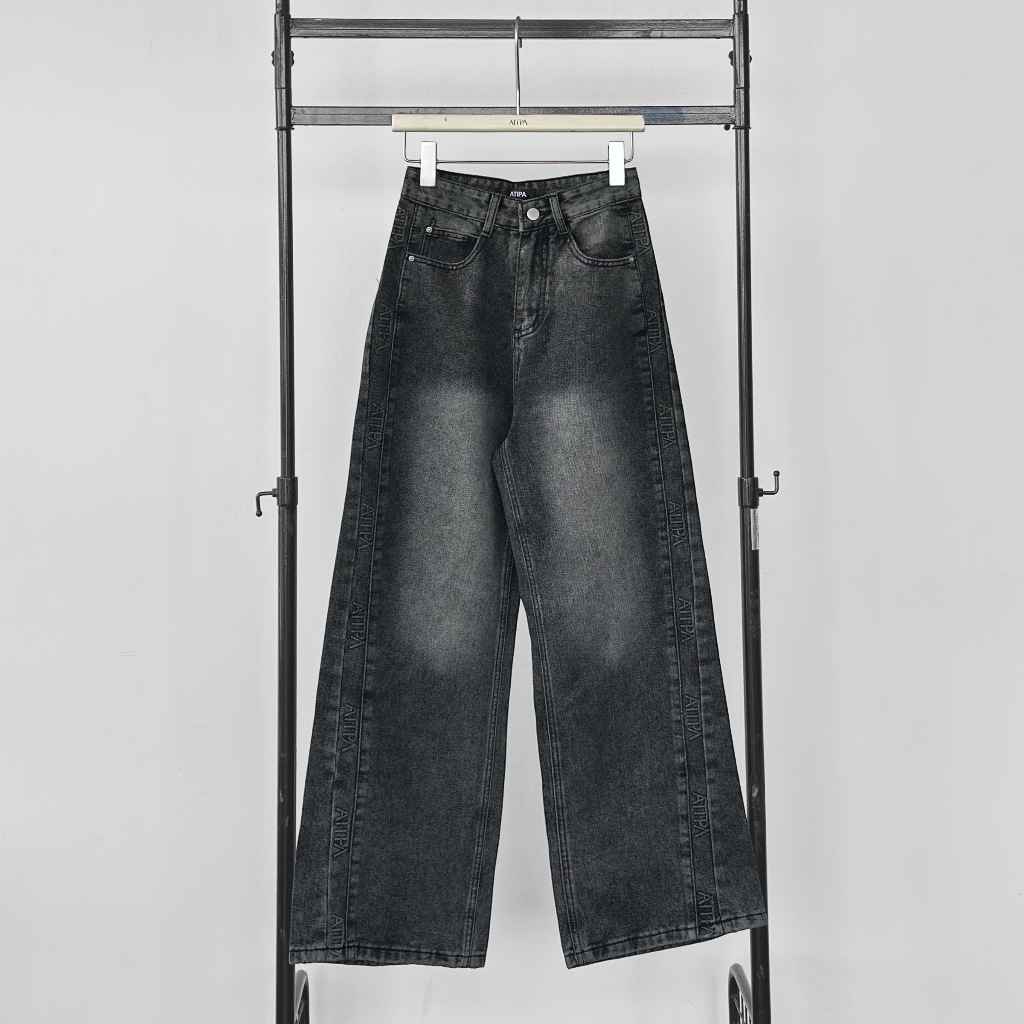 Atipashop-GLAMOURIZE ATP JEANS Long Pants Medium Barrel Shape Atipa Embossed Logo Edge Detail On The Side