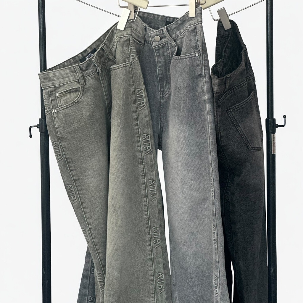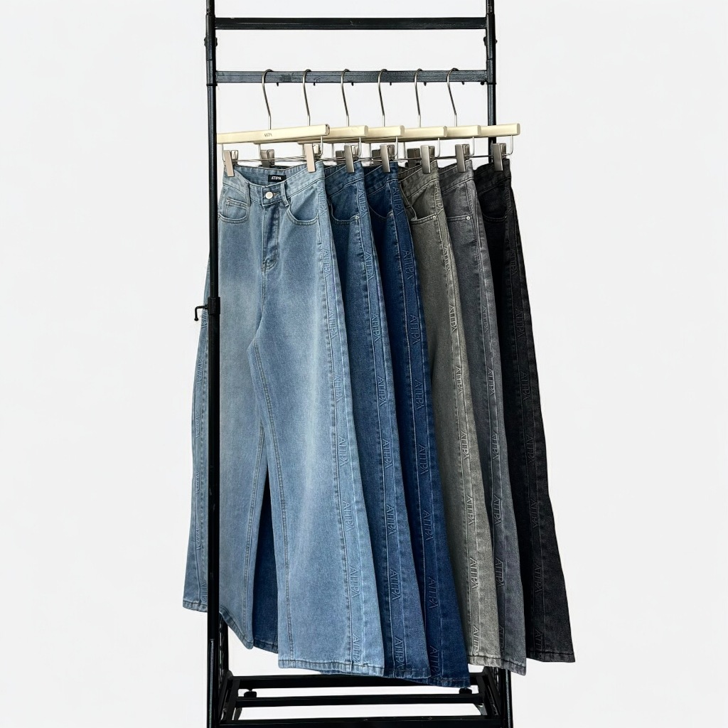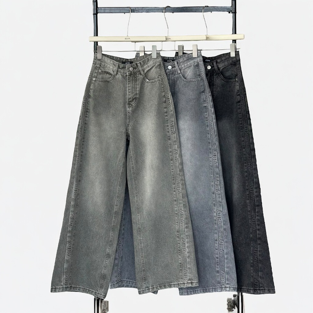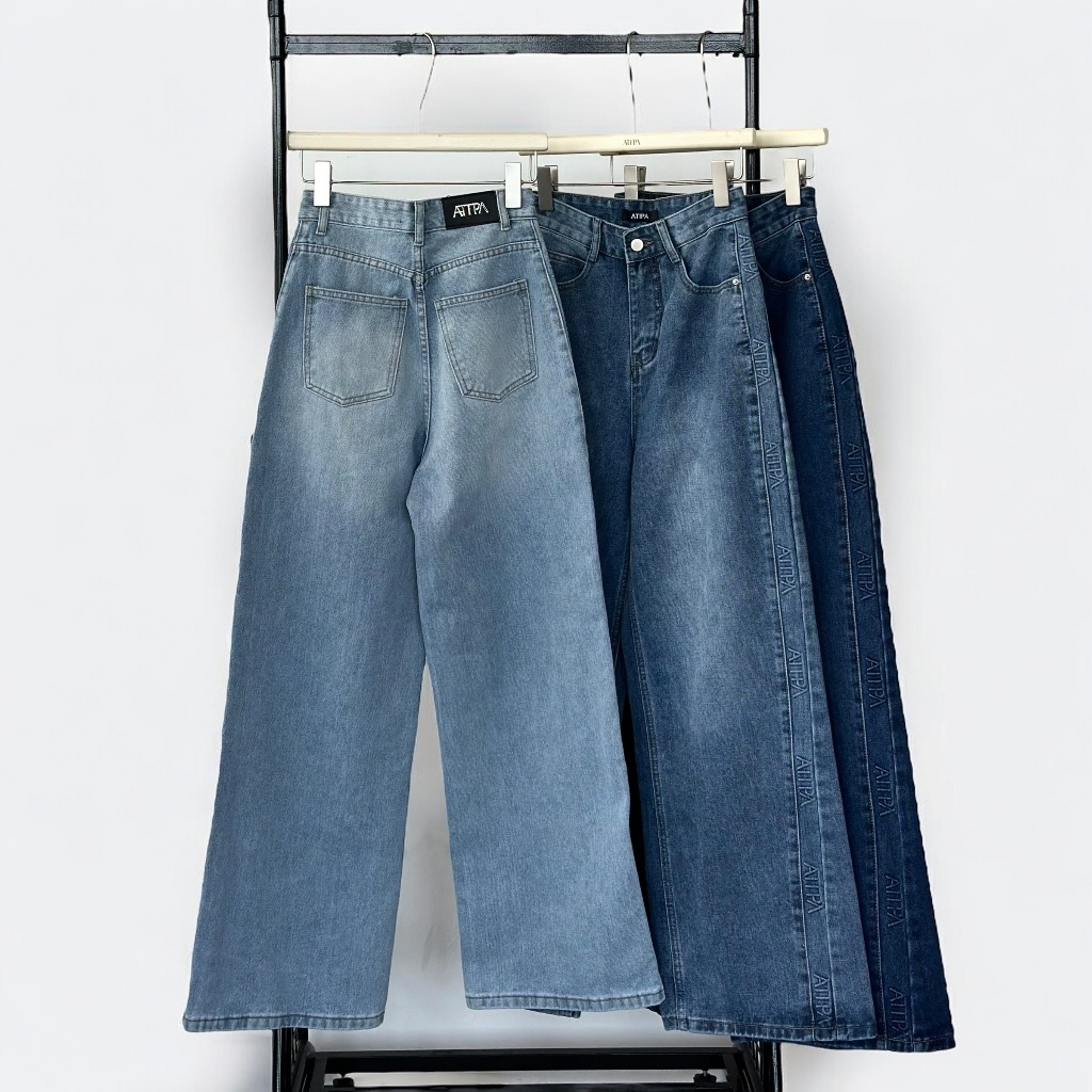 Atipashop-GLAMOURIZE ATP JEANS Long Pants Medium Barrel Shape Atipa Embossed Logo Edge Detail On The Side