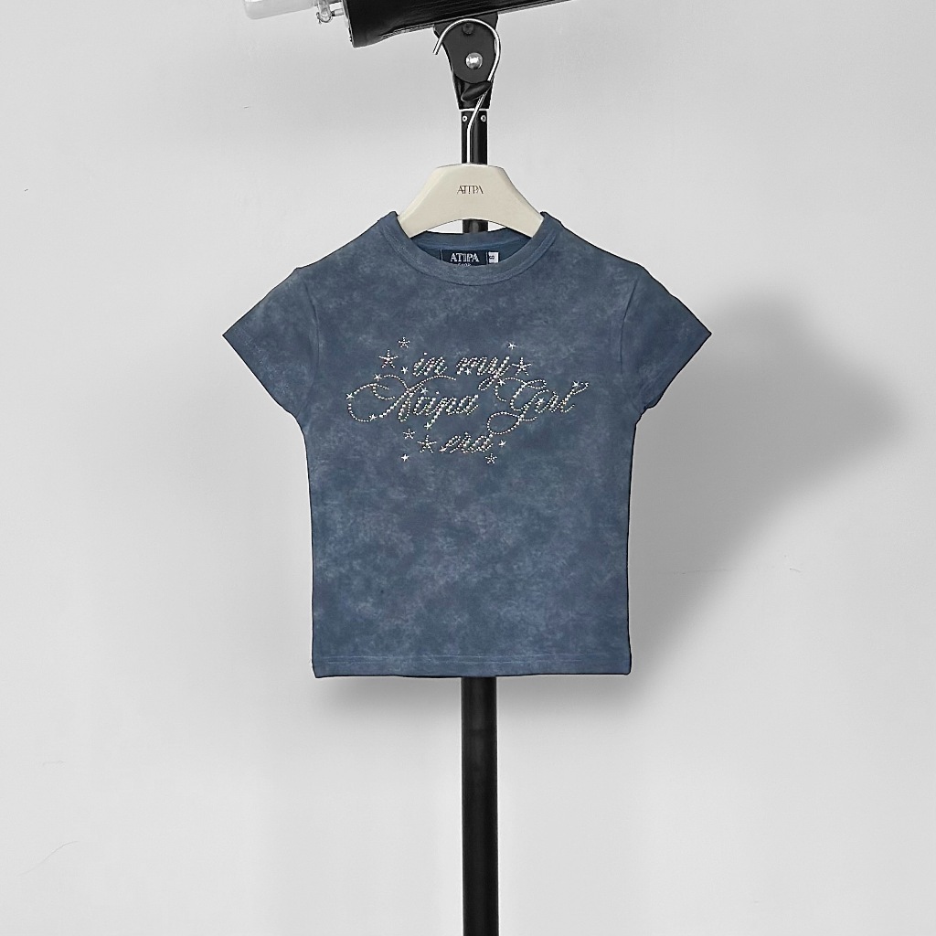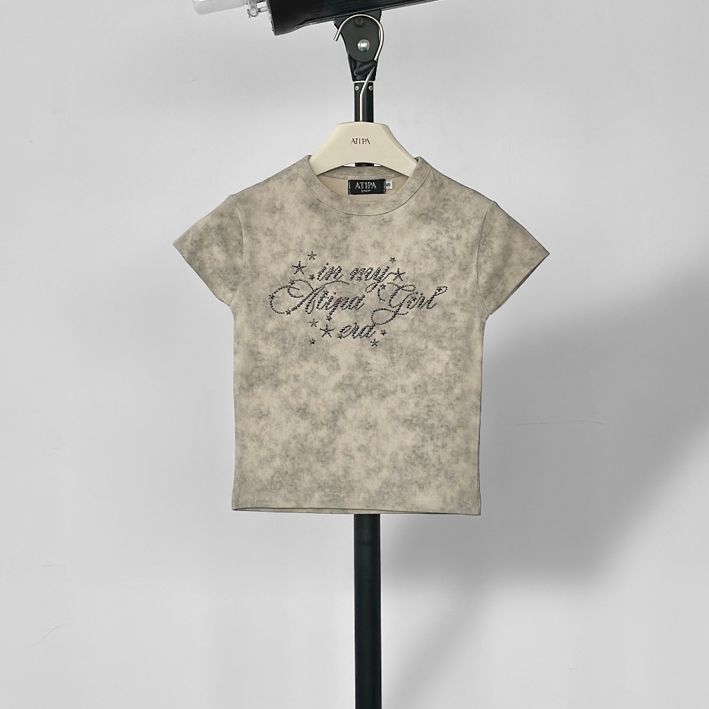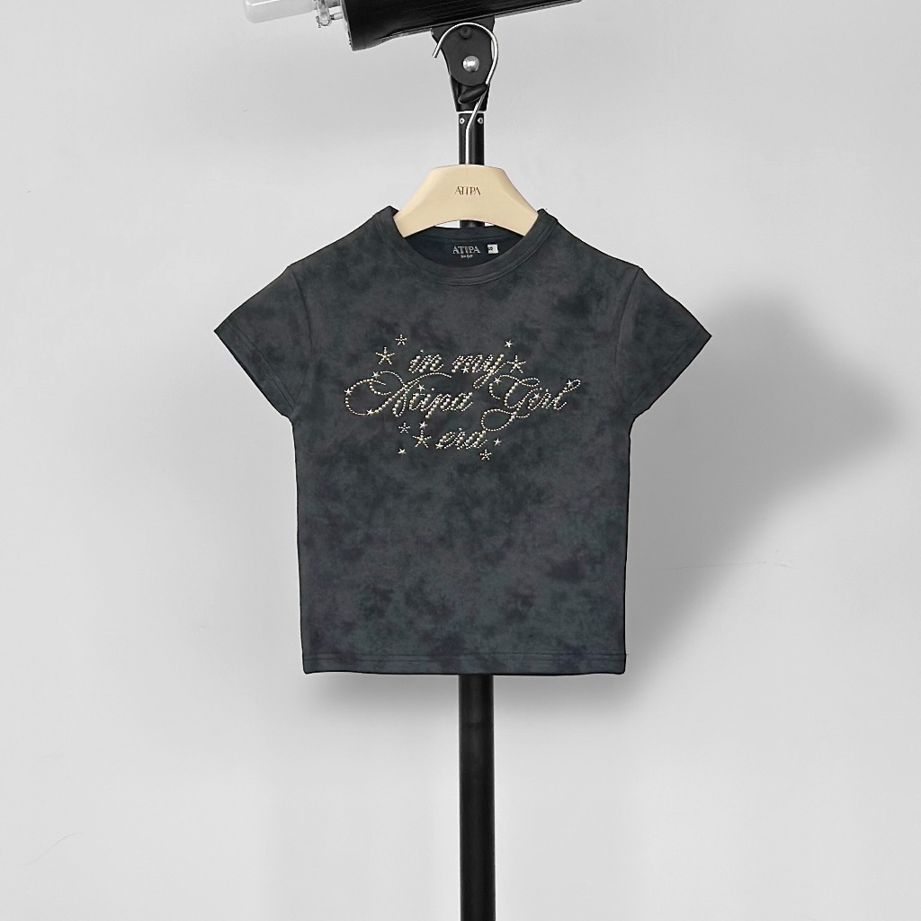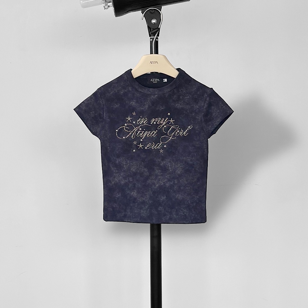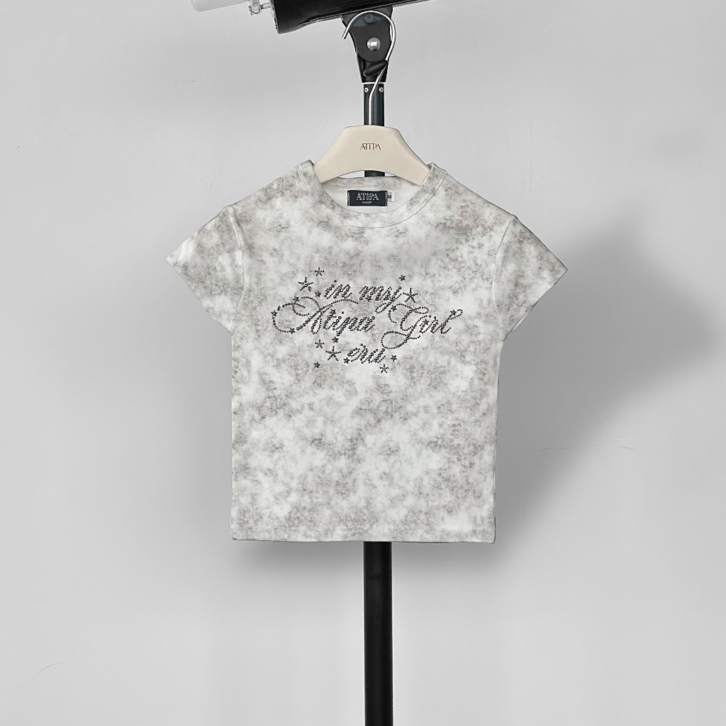 Atipashop-NASSER TOP T-Shirt Short Sleeves Round Neck Tie-Dye Color Silver Accessories Embroidery Details