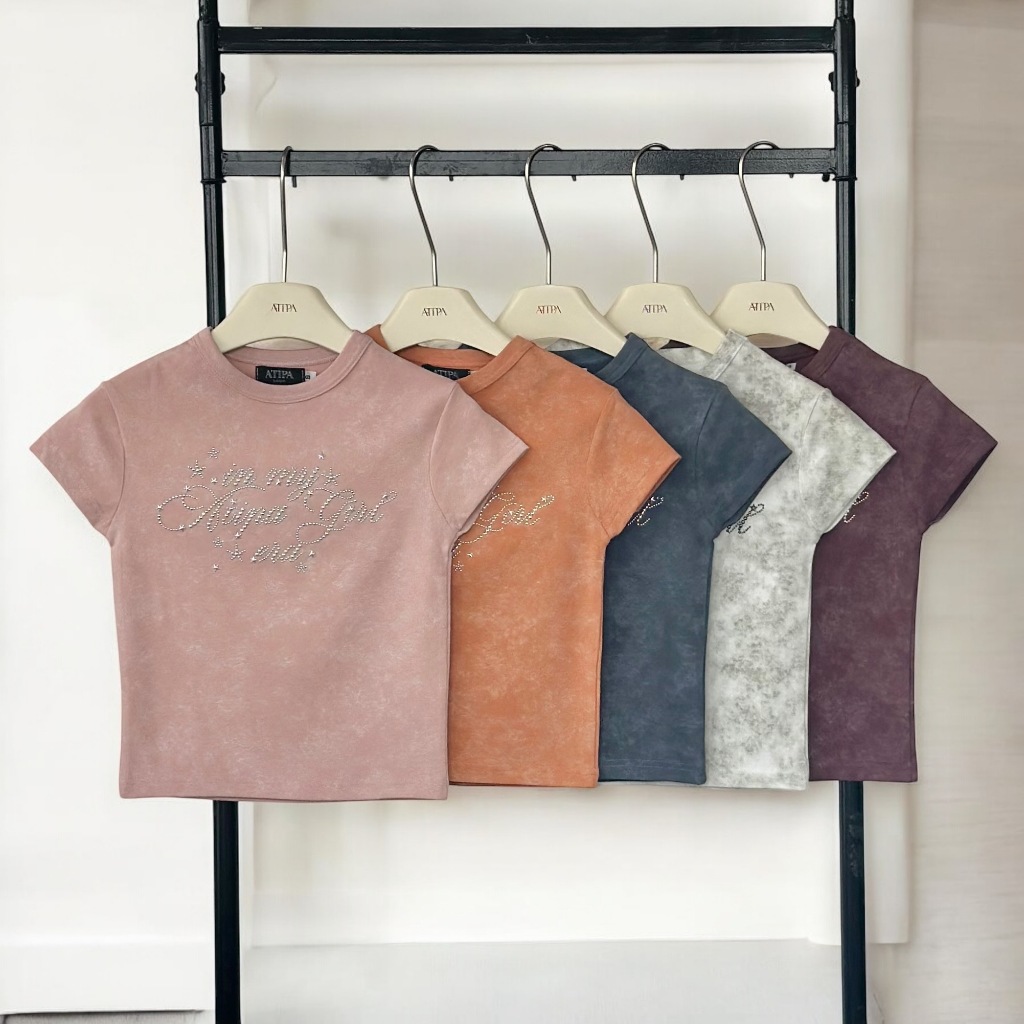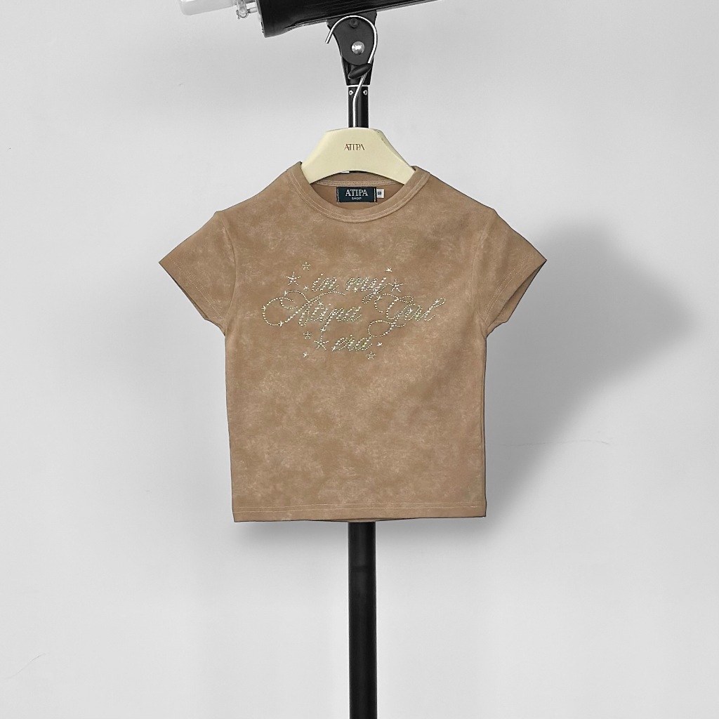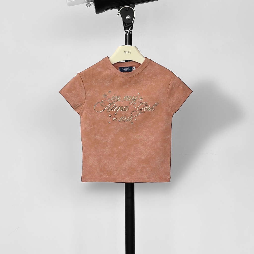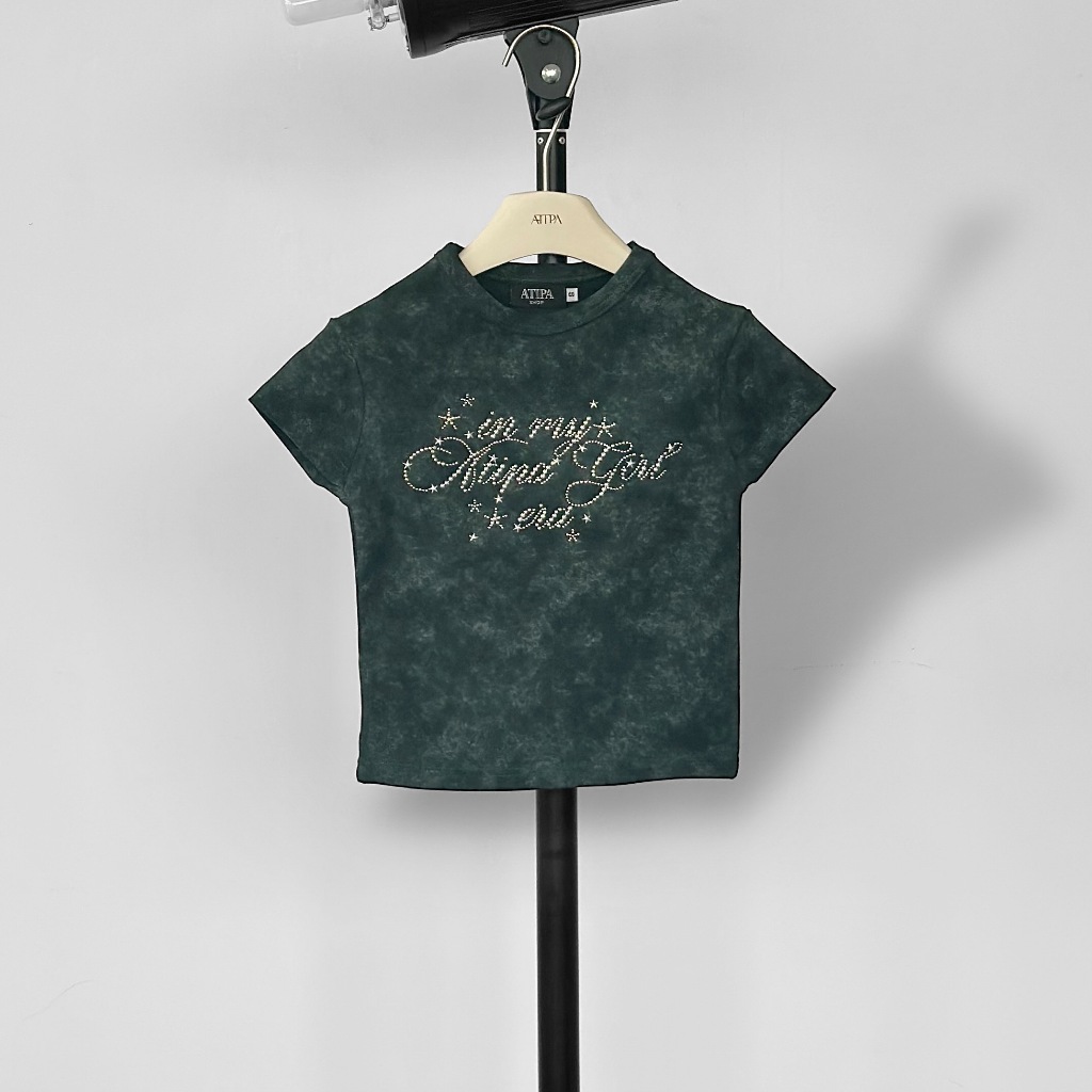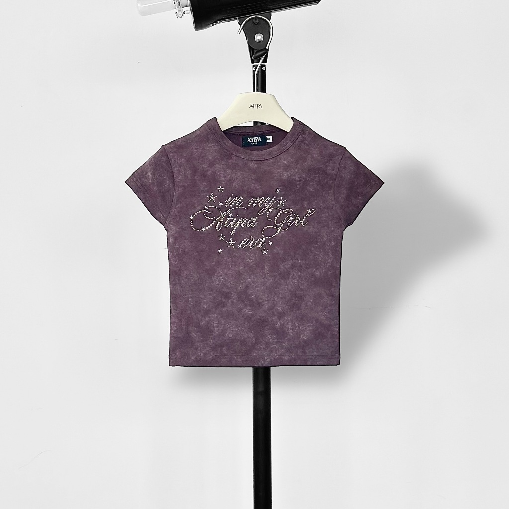 Atipashop-NASSER TOP T-Shirt Short Sleeves Round Neck Tie-Dye Color Silver Accessories Embroidery Details
