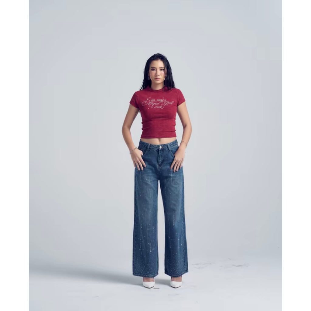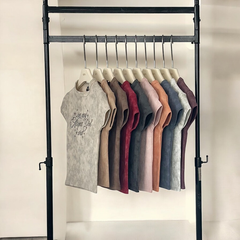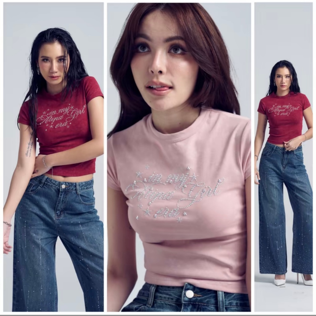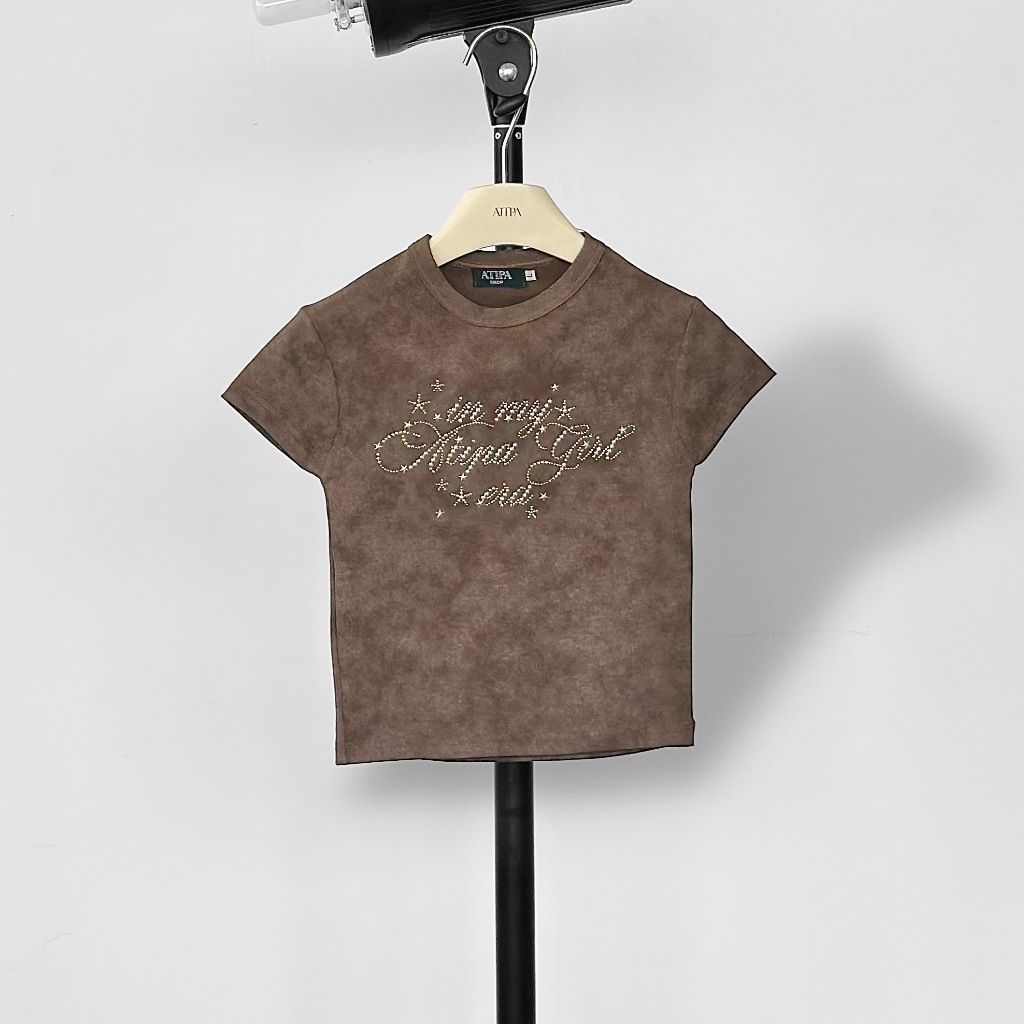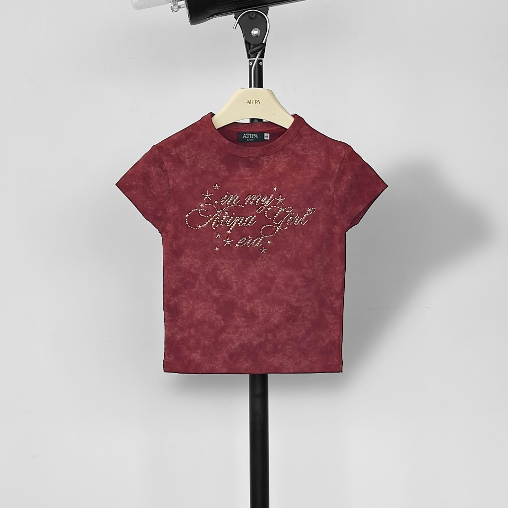 Atipashop-NASSER TOP T-Shirt Short Sleeves Round Neck Tie-Dye Color Silver Accessories Embroidery Details