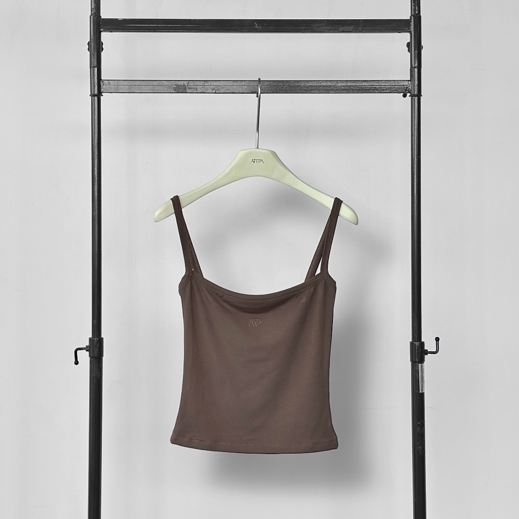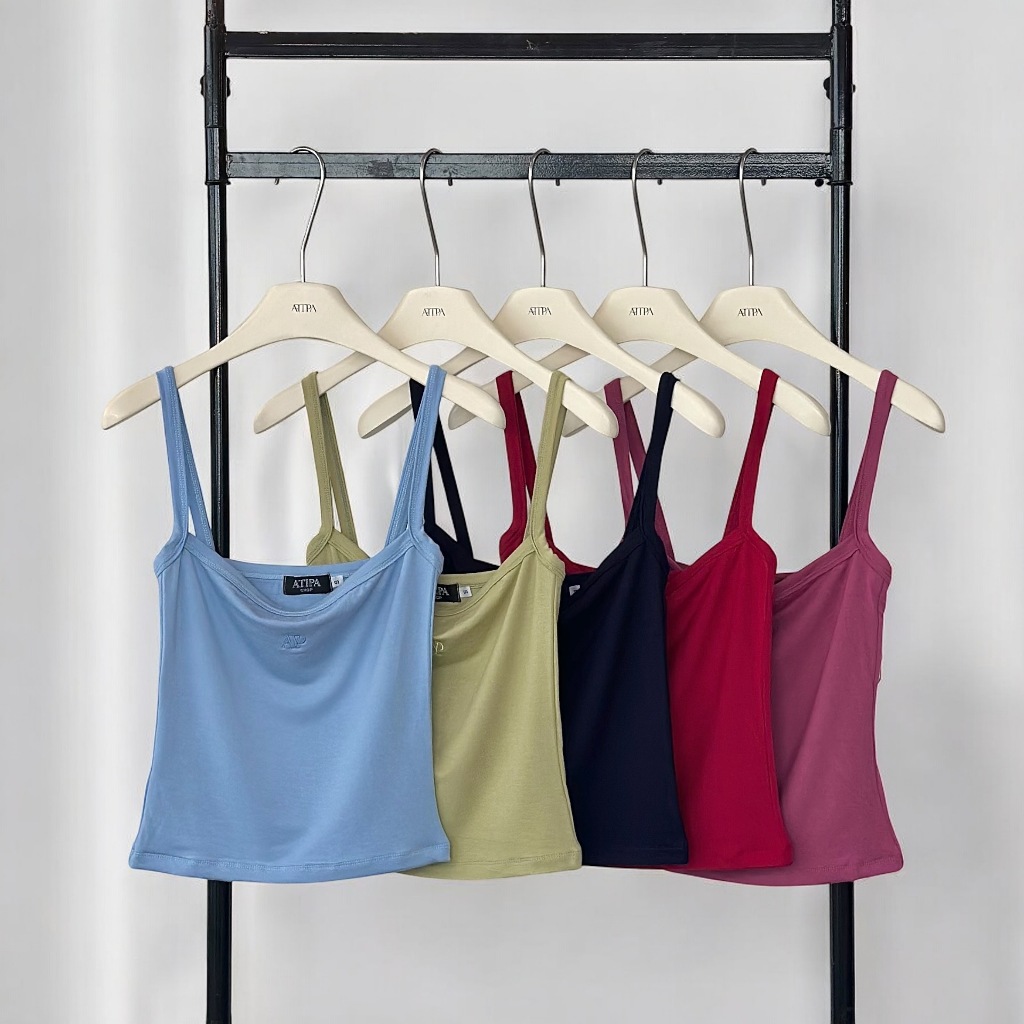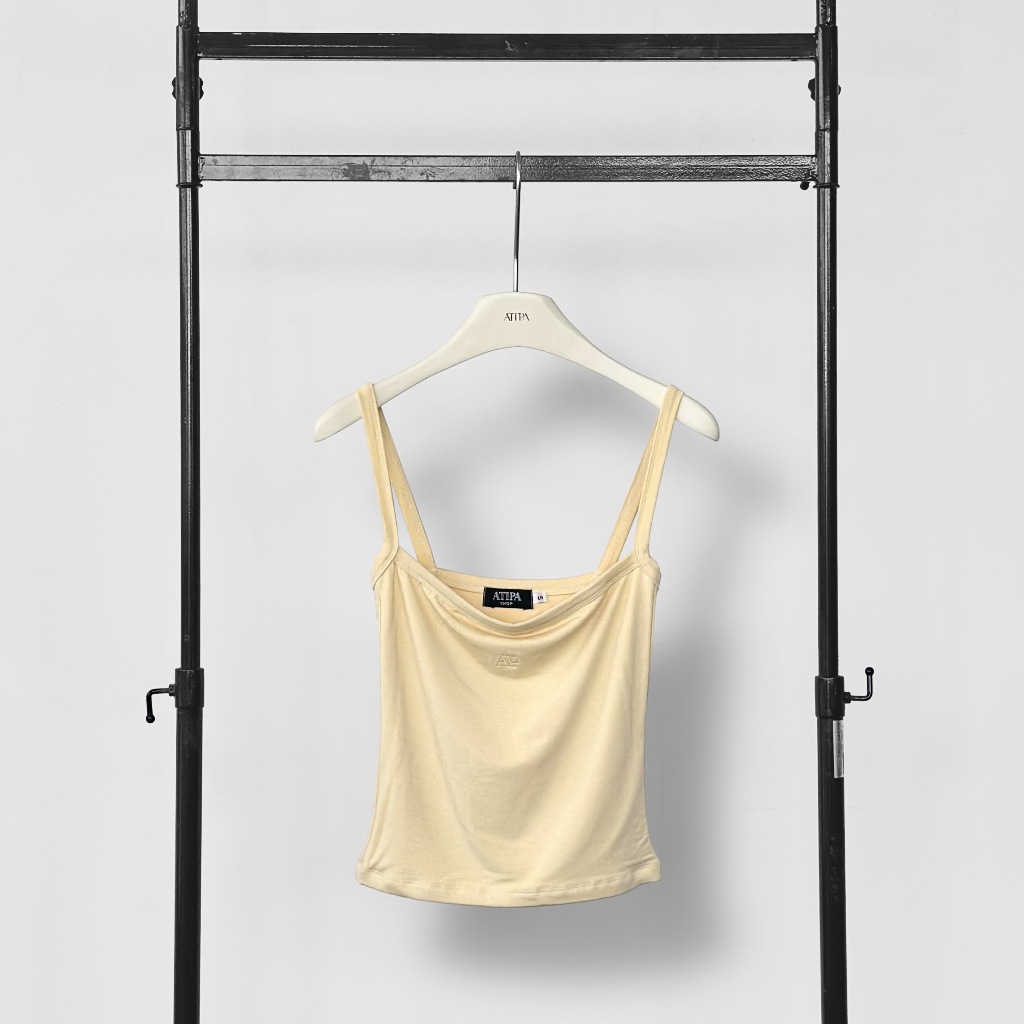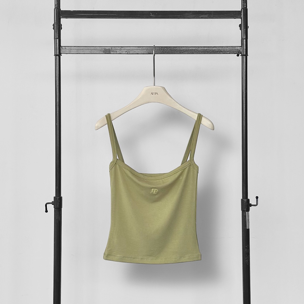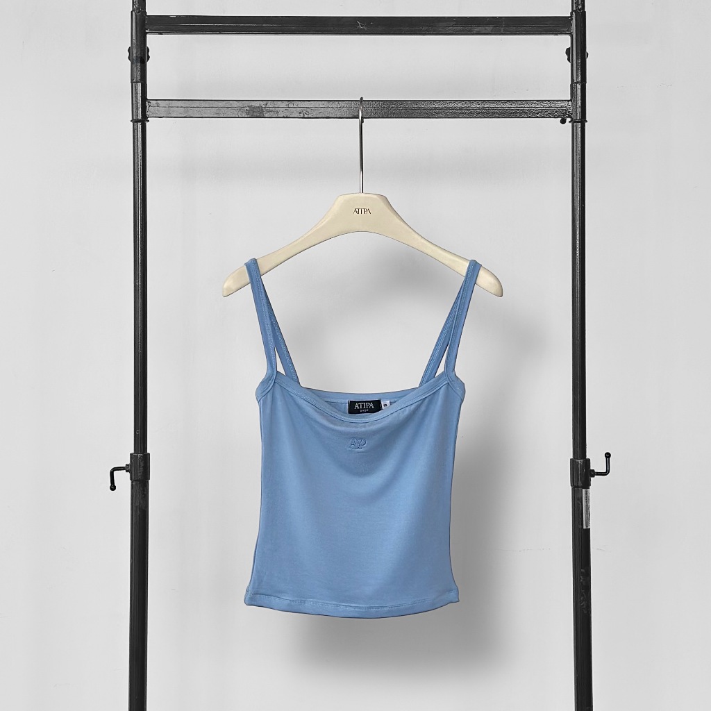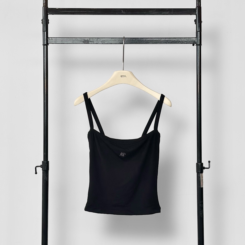 Atipashop-CALLER RAYON TANK TOP Square Neck Spaghetti Strap Fabric With Logo Embroidery