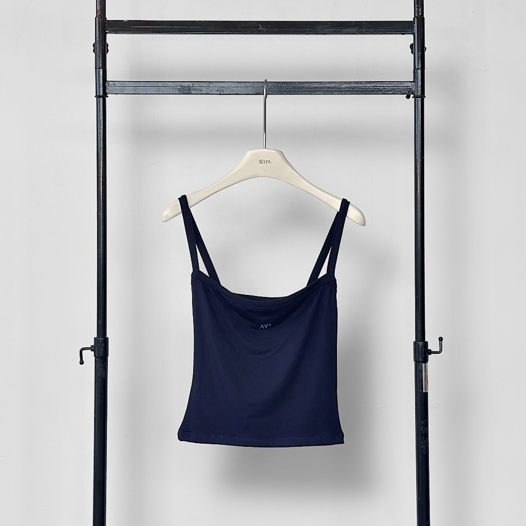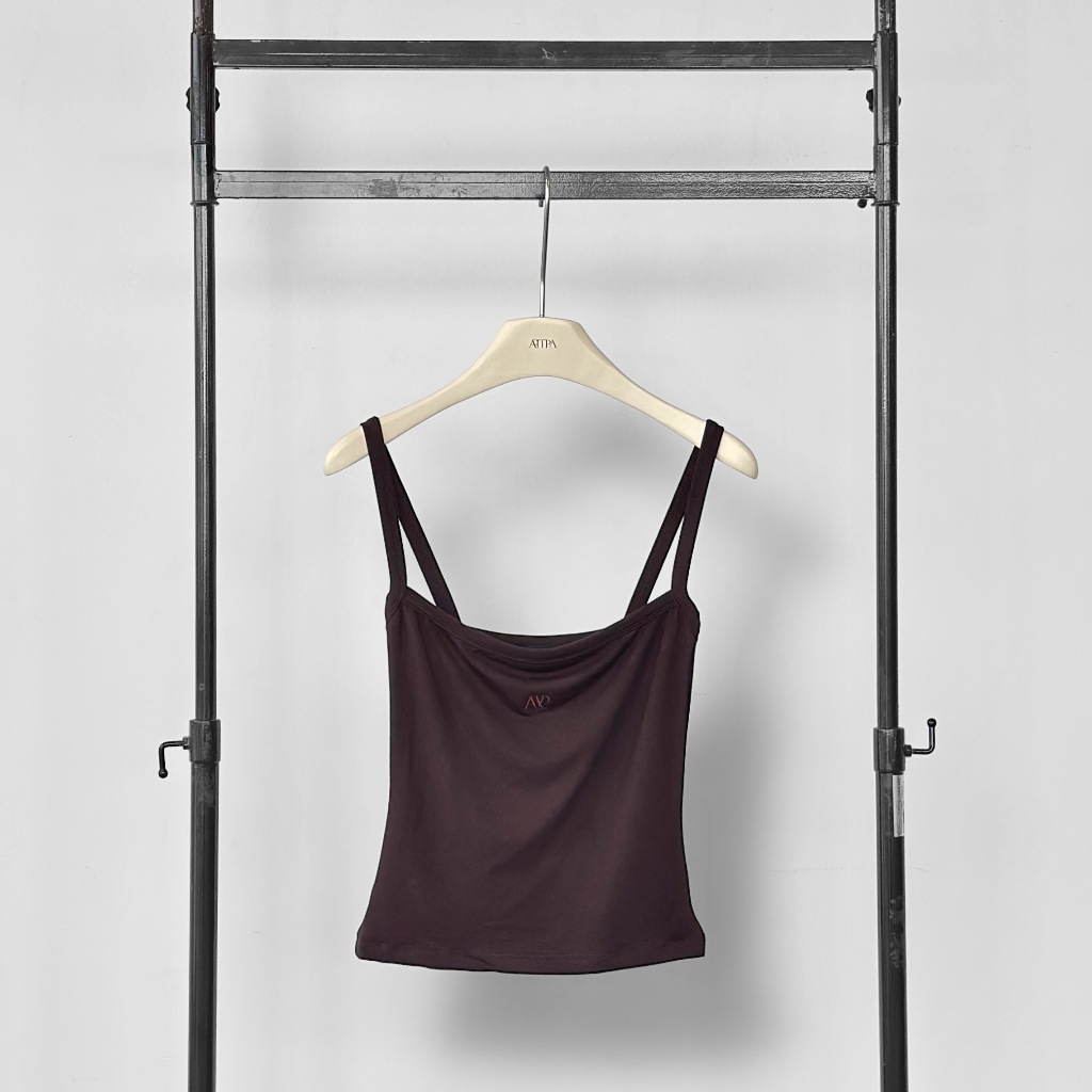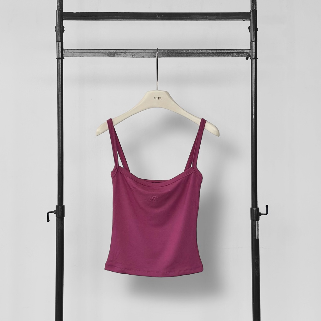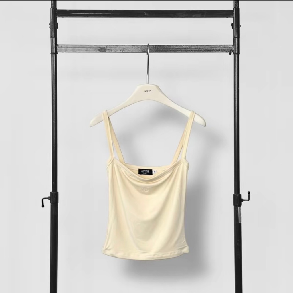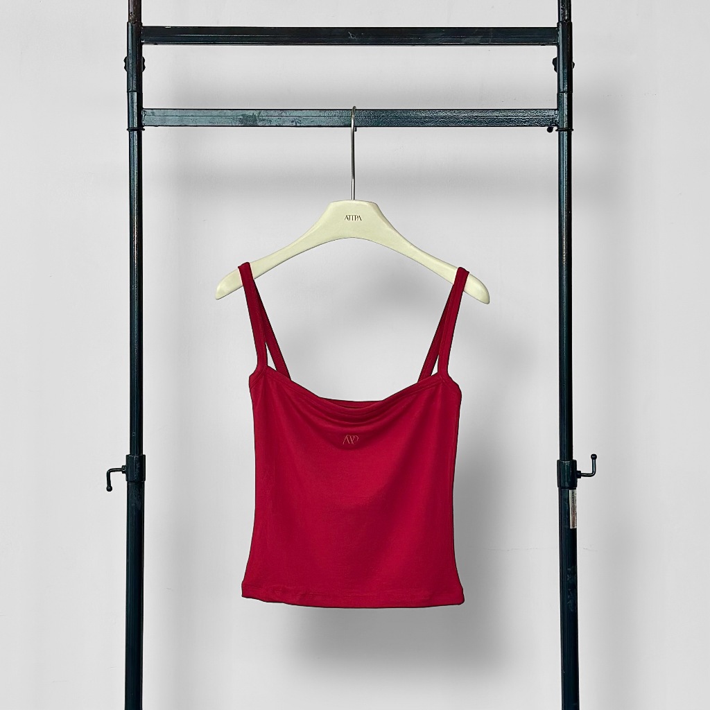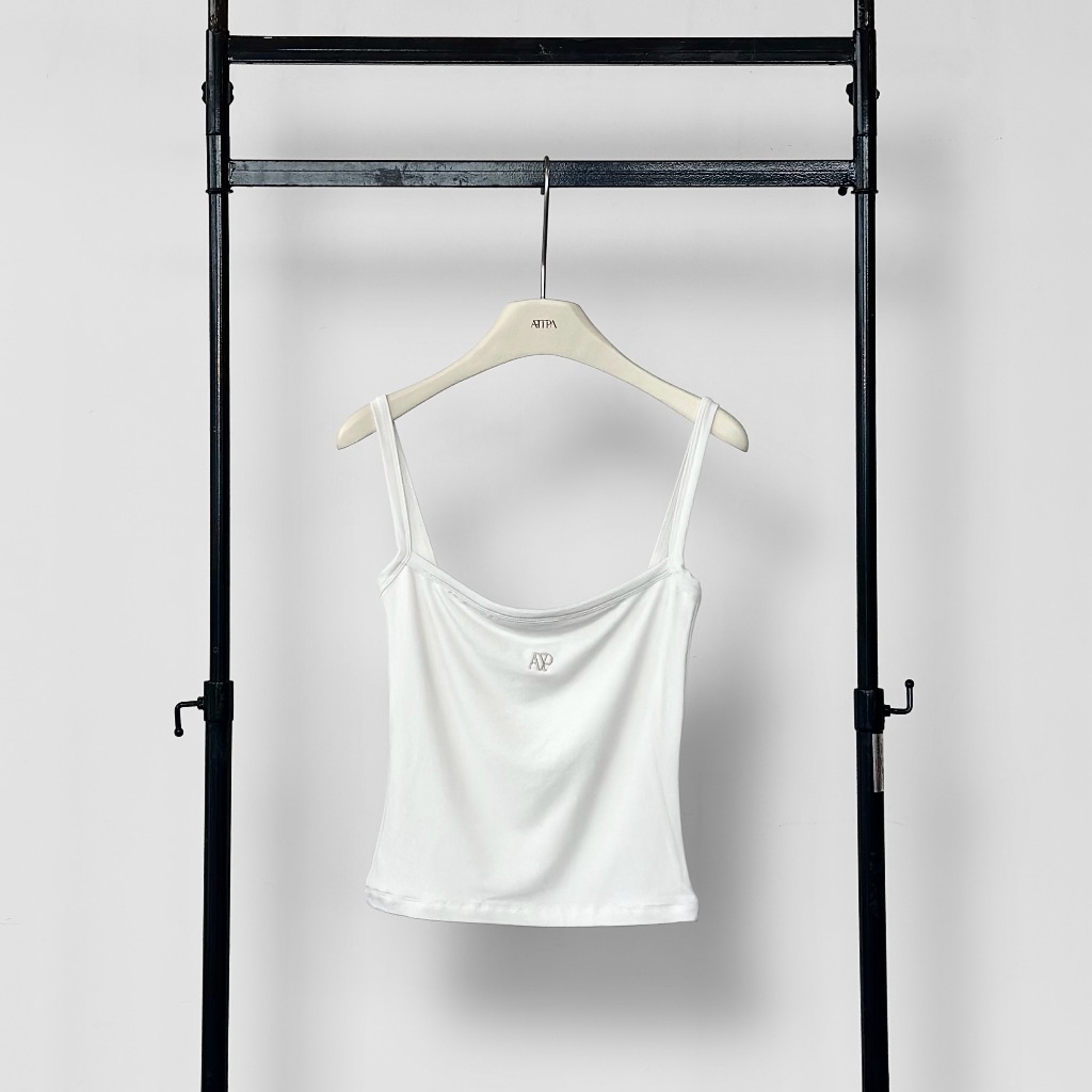 Atipashop-CALLER RAYON TANK TOP Square Neck Spaghetti Strap Fabric With Logo Embroidery