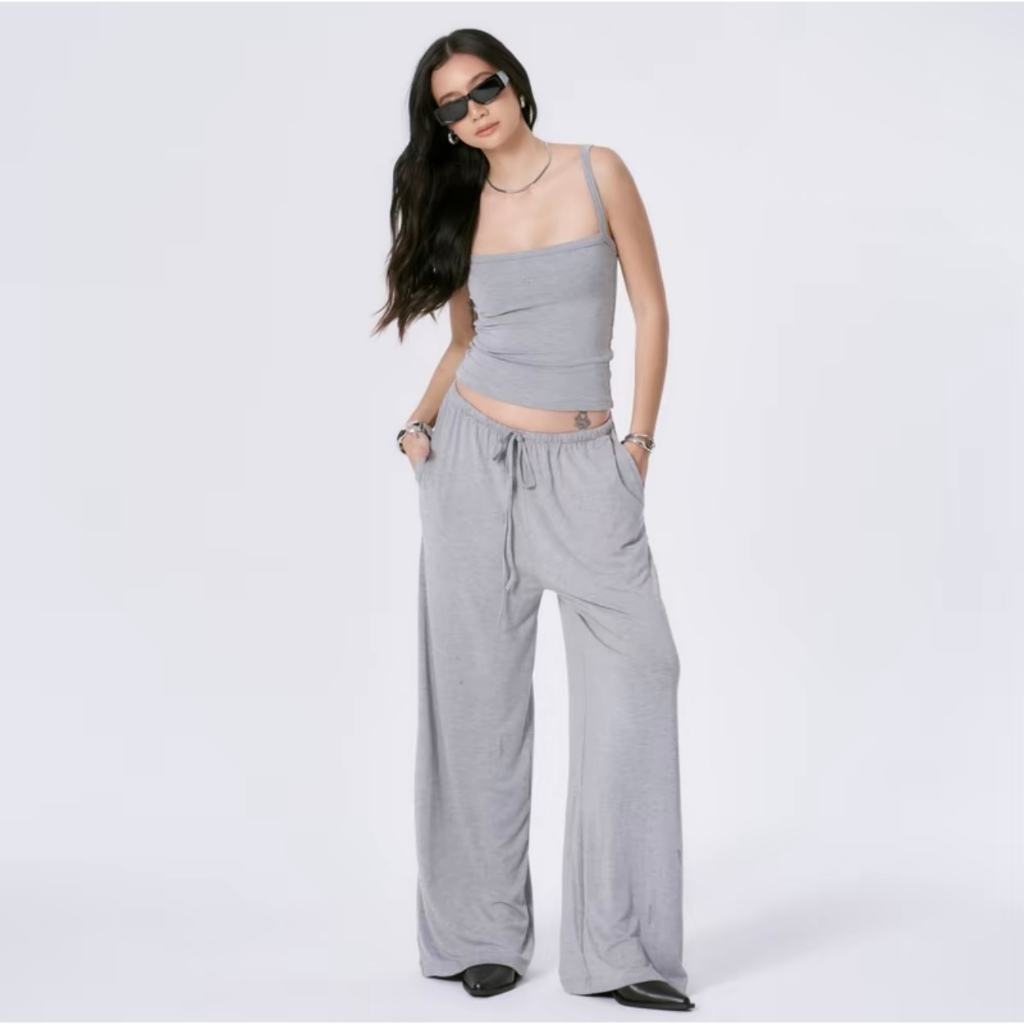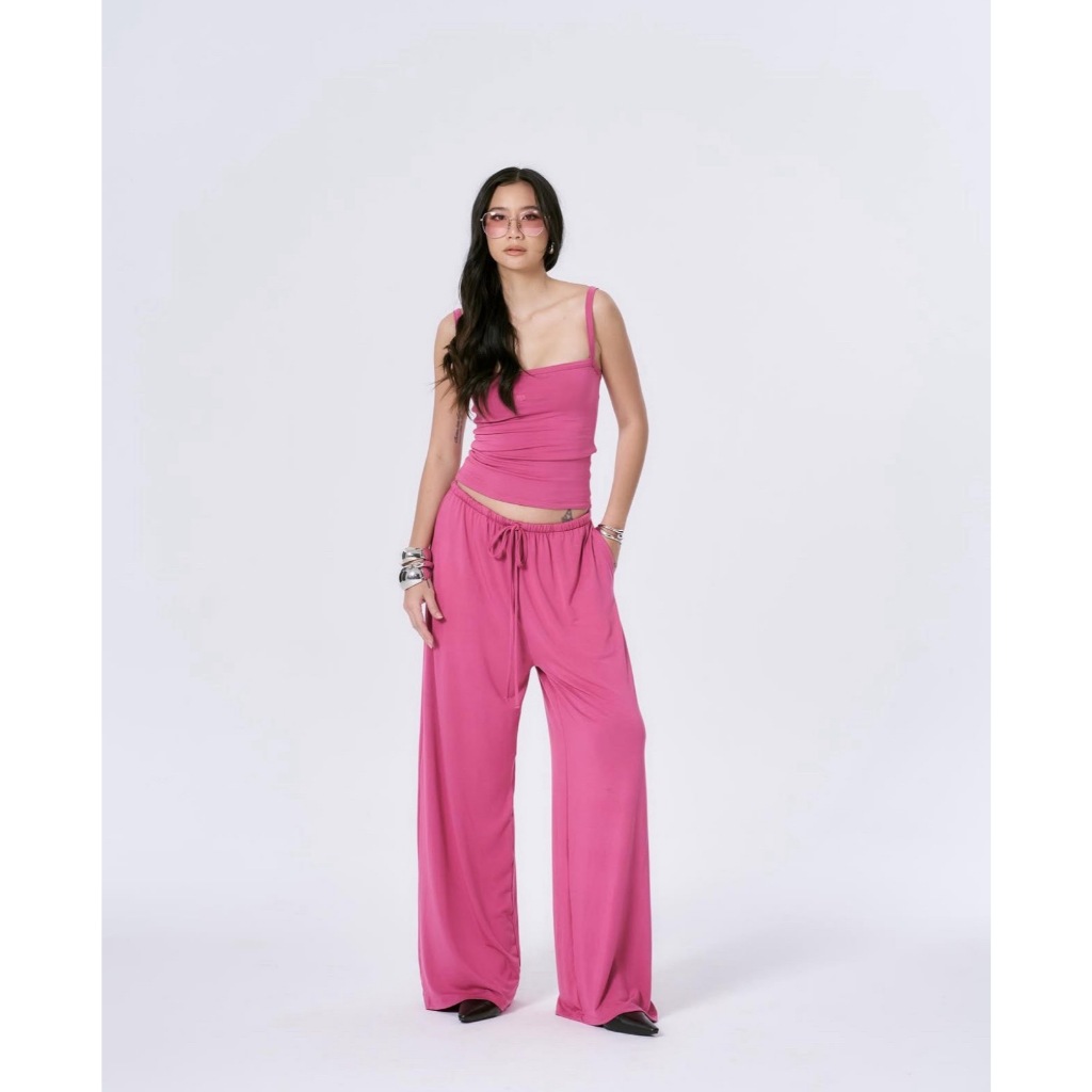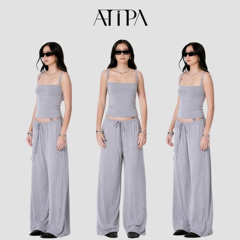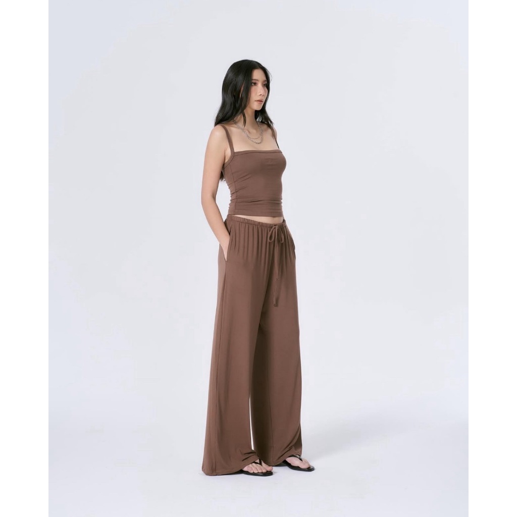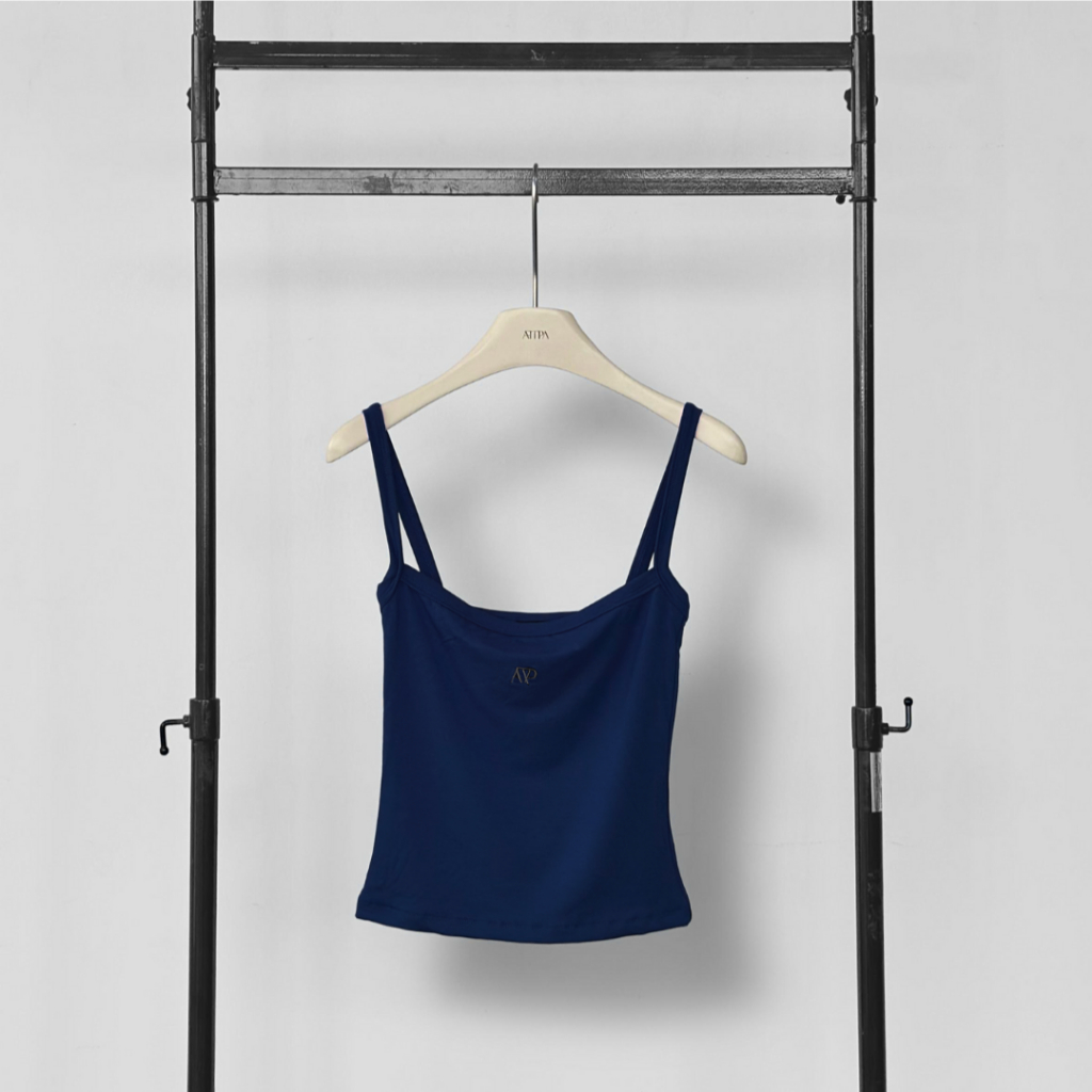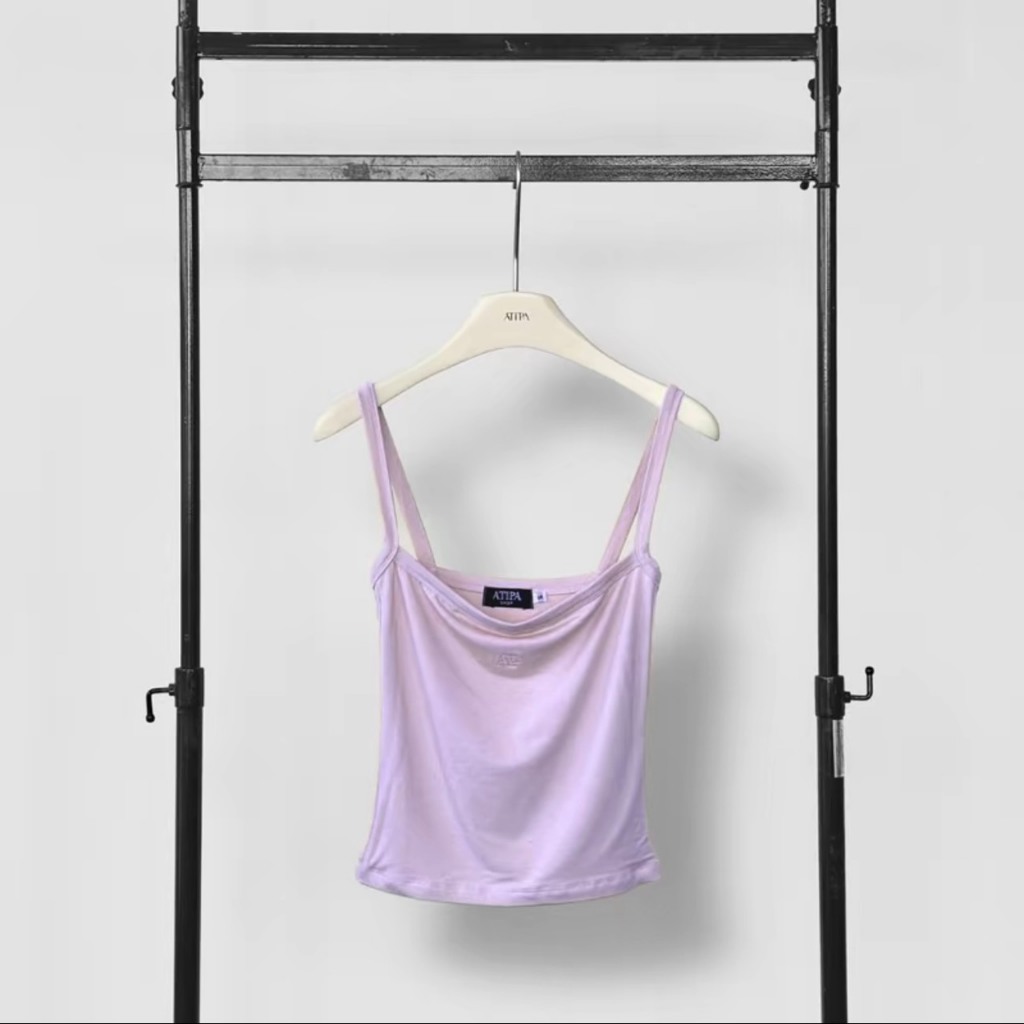 Atipashop-CALLER RAYON TANK TOP Square Neck Spaghetti Strap Fabric With Logo Embroidery