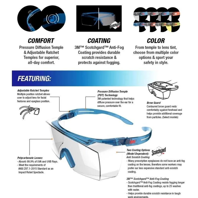 3M Safety Glasses SecureFit 3700 Series SF3701ASGAF-BLU Clear Lens SF3702ASGAF-BLU Gray Prevent Debris From Splashing (1 Piece)