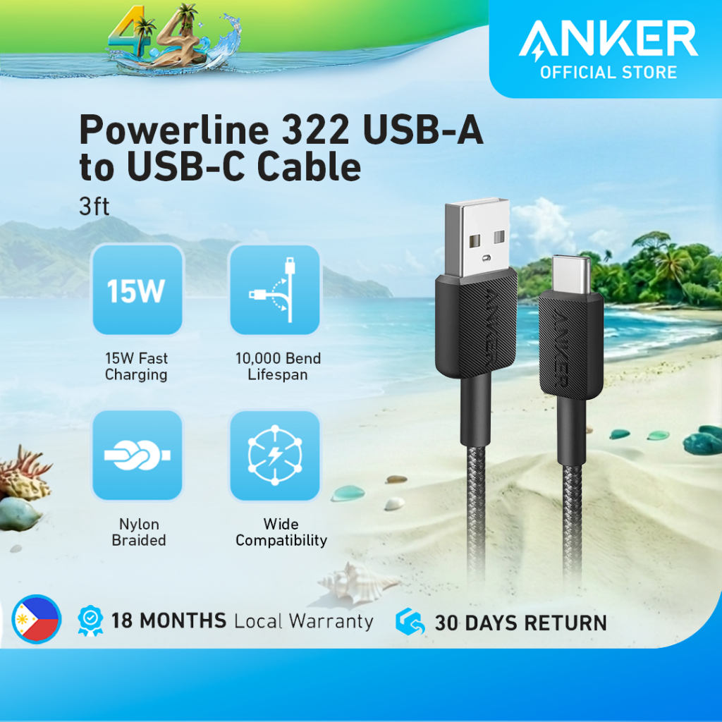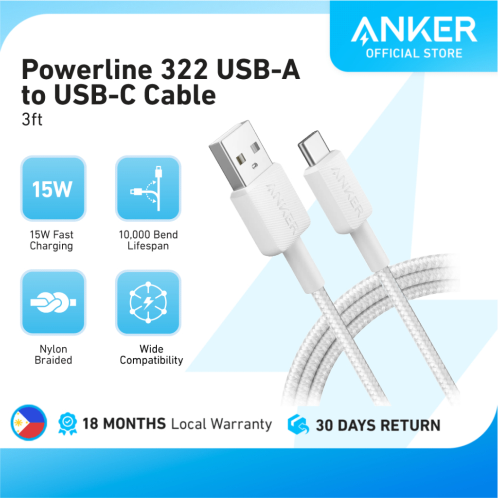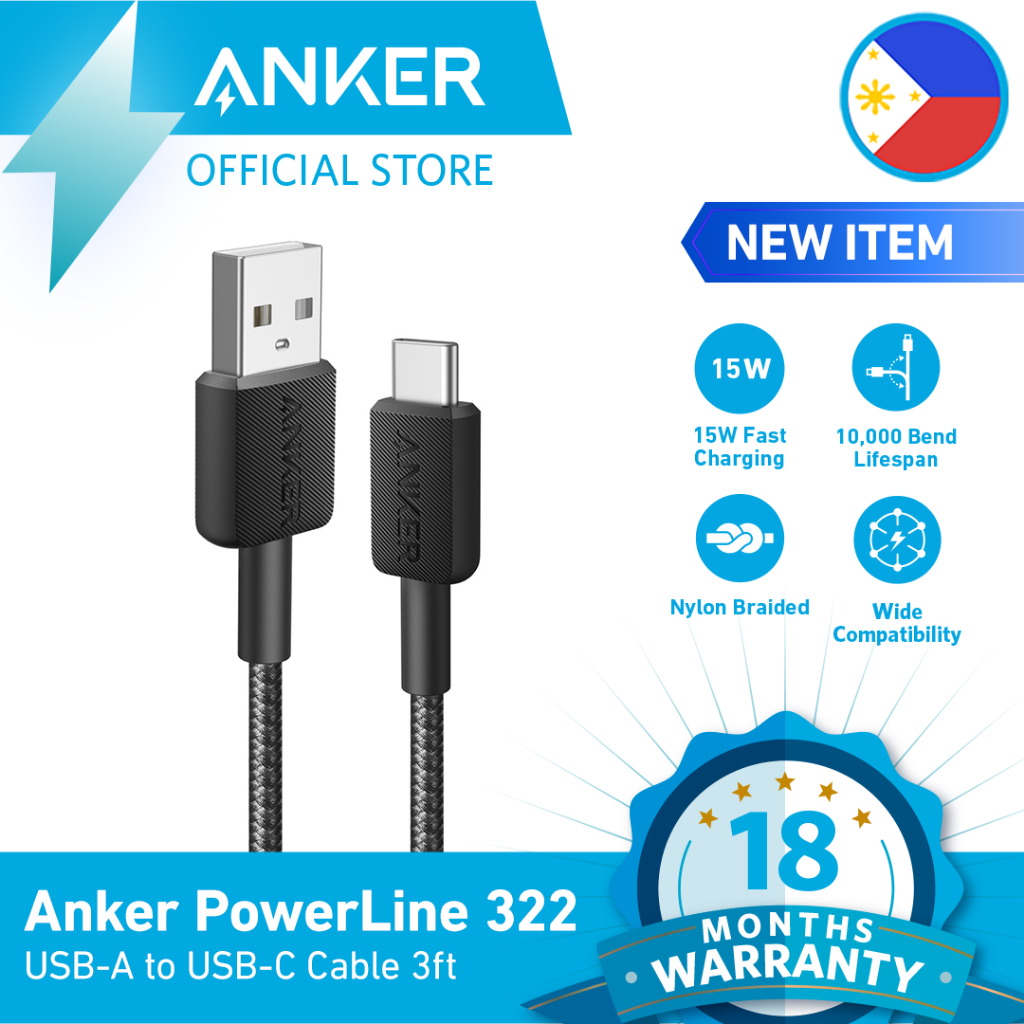 Anker 322 USB-A to USB-C Cable 3ft Nylon Braided, 15W Fast Charging for iPhone 17/16/15