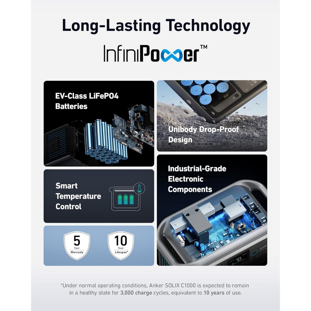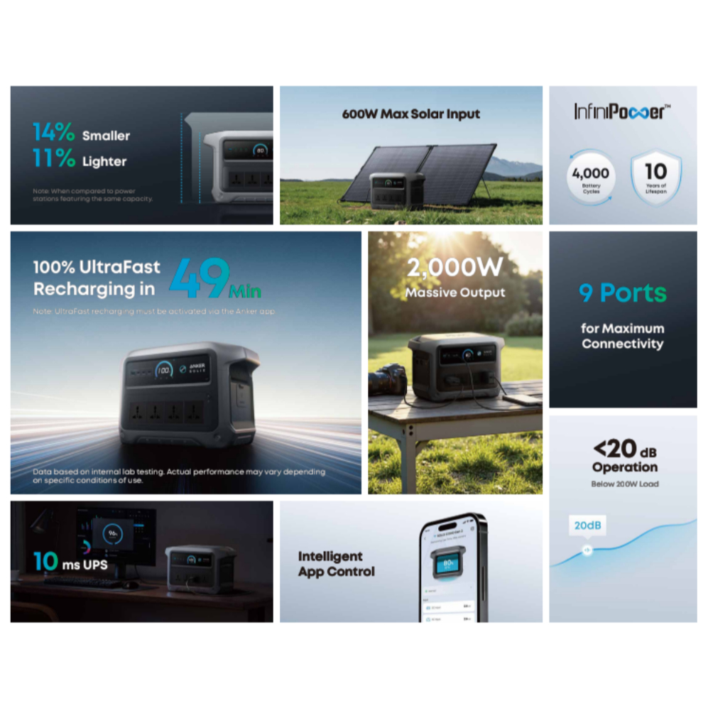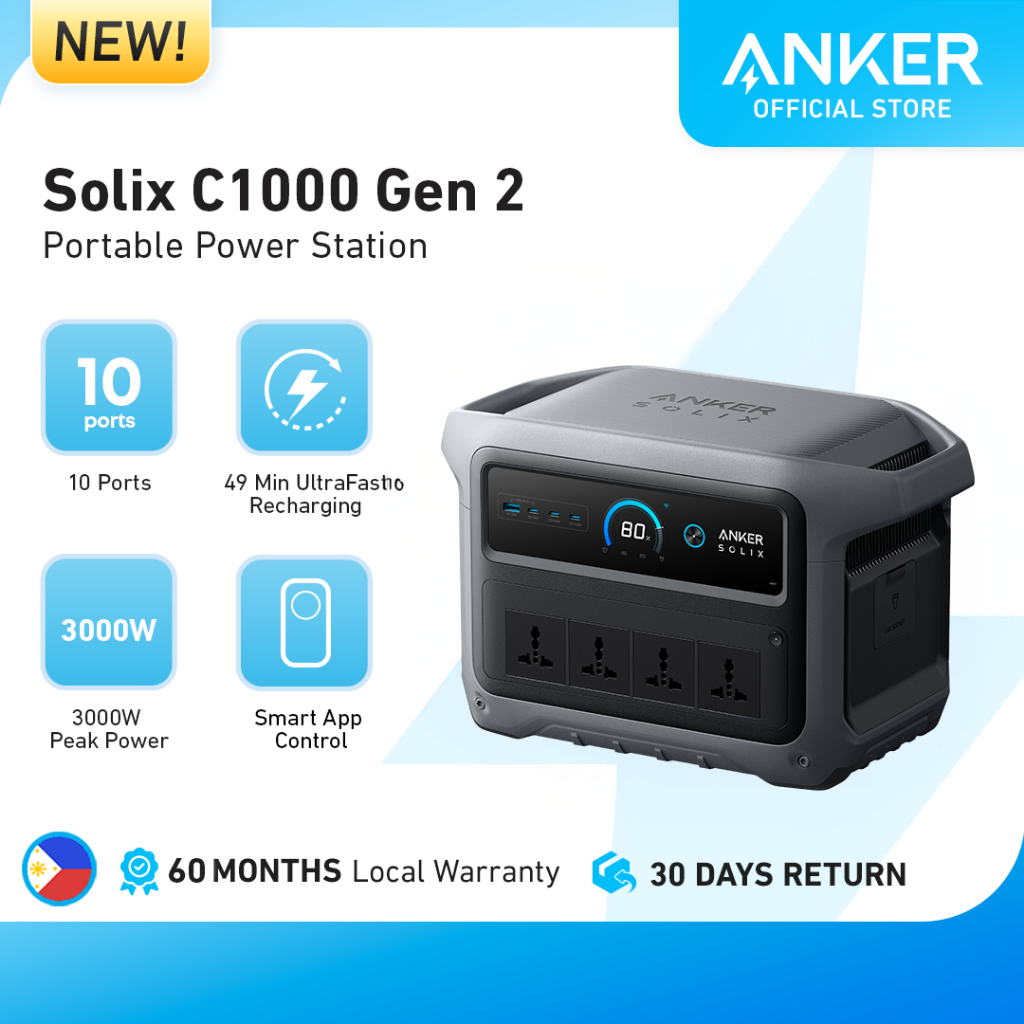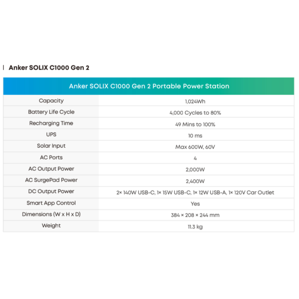 Anker Solix C1000 Gen 2 Portable Power Station, 2,000W 1,024Wh LiFePO4 Battery for Home Backup