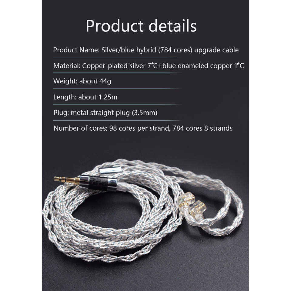 KZ 8 Core Silver Blue Hybrid Silver Plated Upgrade Cable Earphone Cable Heasets Wire for KZ ZS10 PRO ZSN ZSX ZAX DQ6 CSN VX V90S