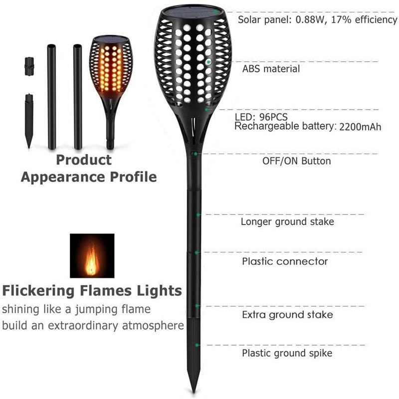 Solar Lights Waterproof Flame Lamp Torch Light Flickering Flame Upgraded 96 LED Outdoor Solar Landscape Decorative Lighting Pathway Lights For Garden Patio Driveway