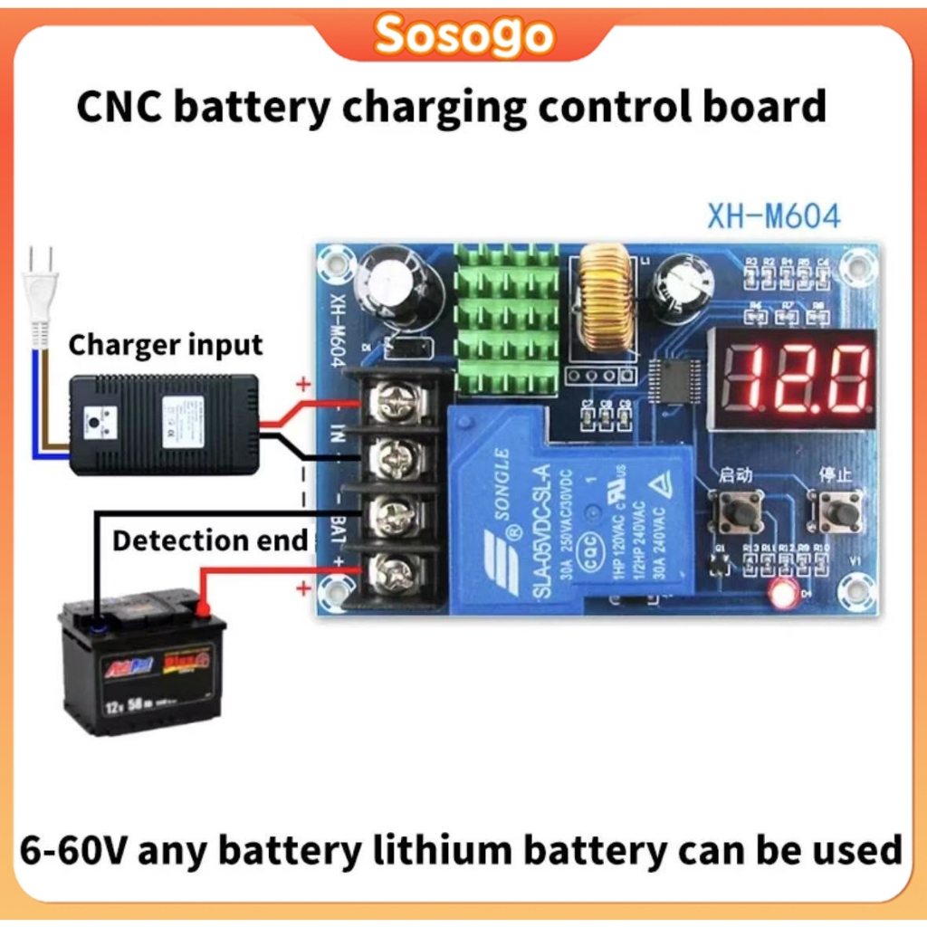 XH-M604 Battery Charger Control Module DC 6-60V Storage Lithium Battery Charging Control Switch