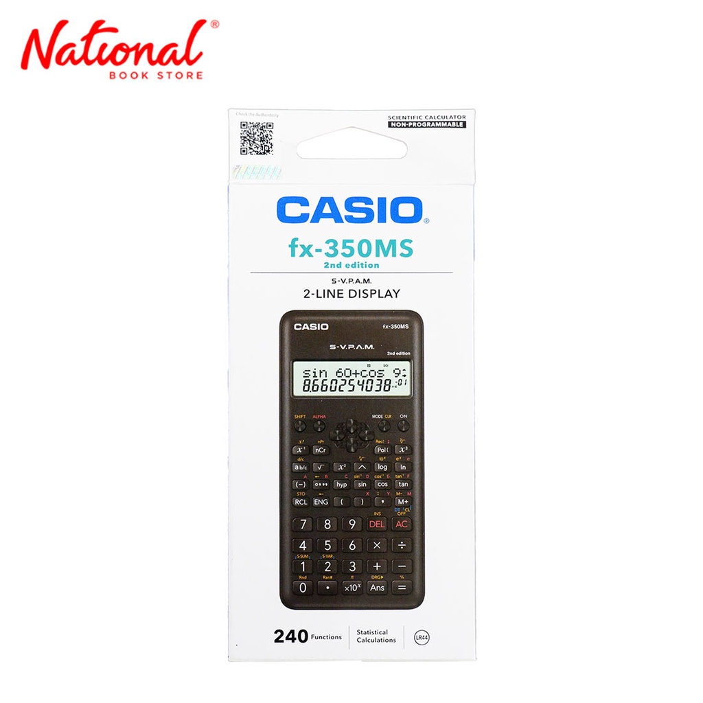 Casio Scientific Calculator FX350MS Black 240 Functions 2nd edition Battery Operated 2 Line Display