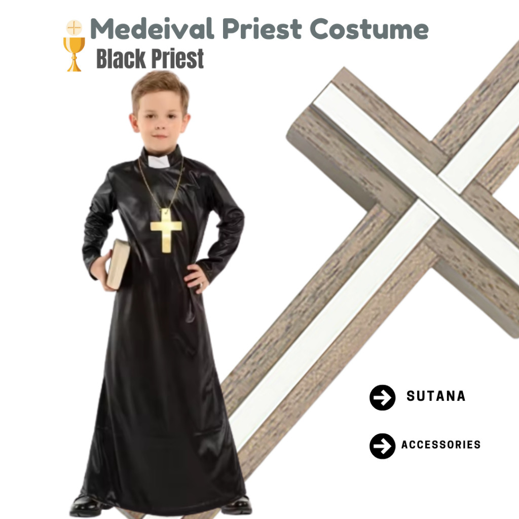 Holy Father Holy Mother Deluxe Priest Costume – Black Robe with Collar
