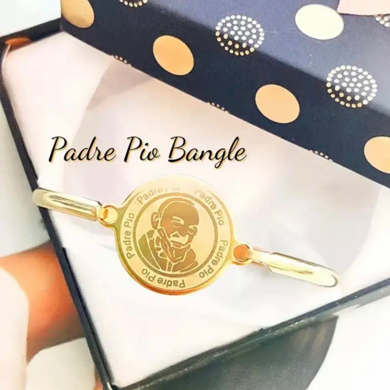 YH PADRE PIO Bangle Stainless Steel Gold padre Pio bangle for Women Slim plain bangles for Women.