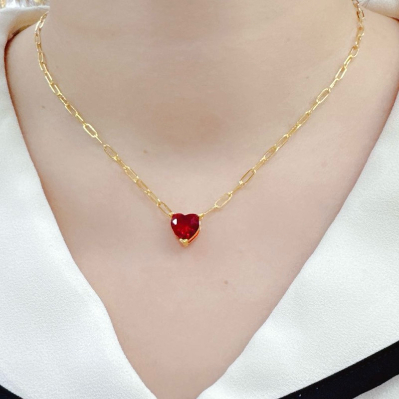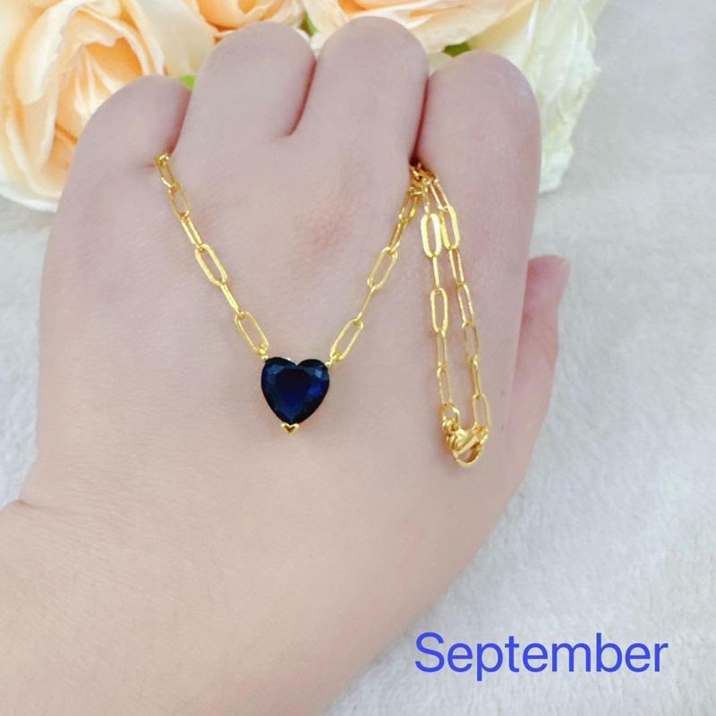 【YH】Fashion 12Color Heart Birthstone PaperClip Chain Necklace Accessories for Women