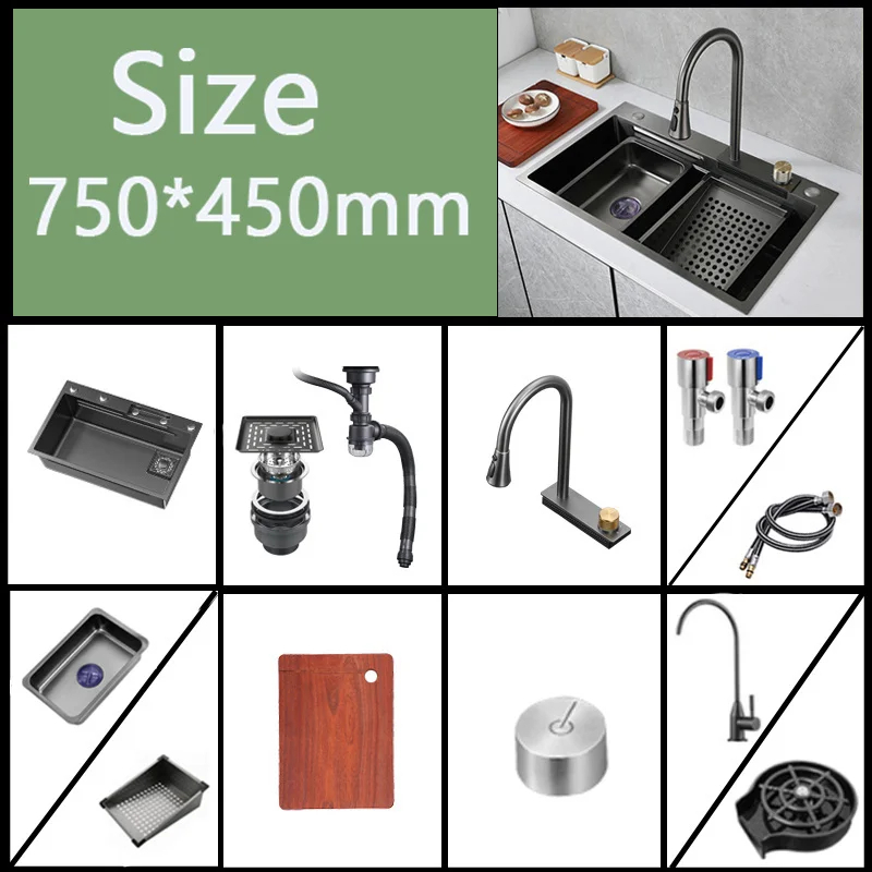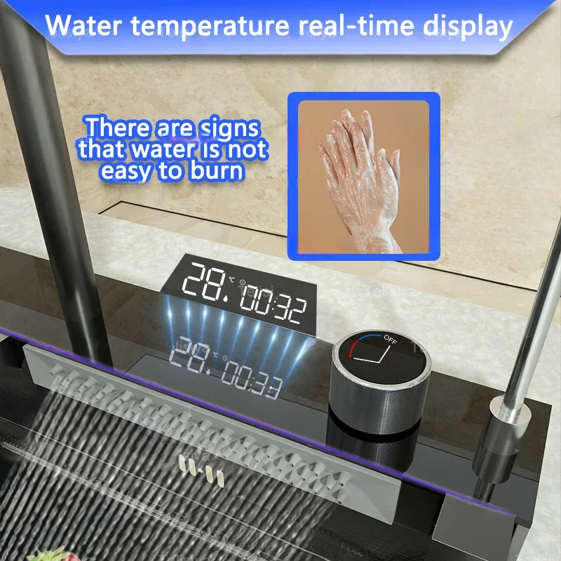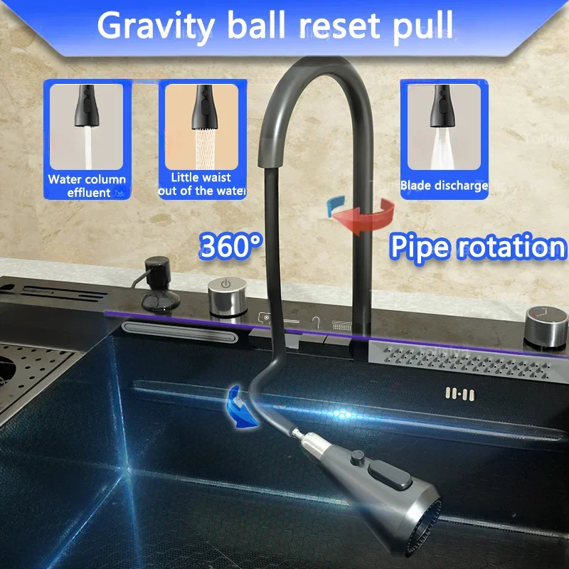 Digital Display Large Kitchen sink Waterfall SUS304 Stainless Steel Lababo Kitchen Sink With Trash