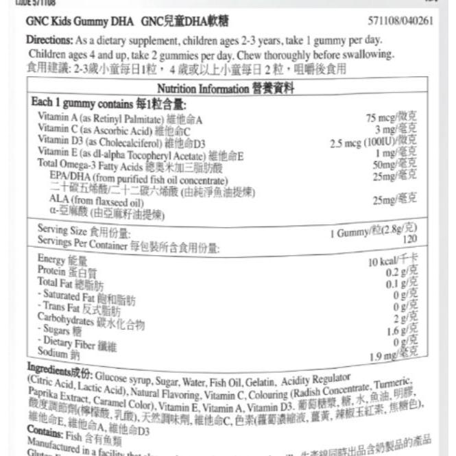 GNC milestones Kids Gummy DHA For Kids 2-12 - 120 Gummies (EXP 2027)