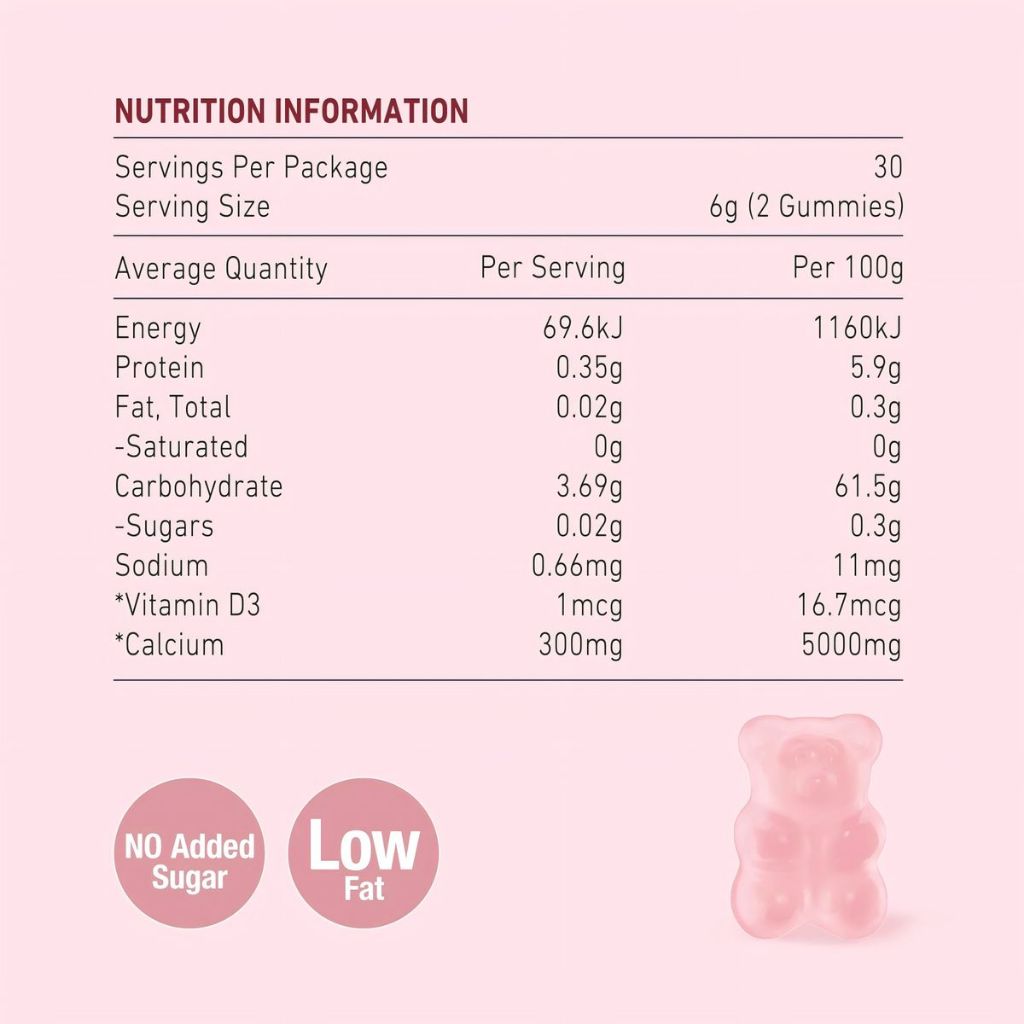 Unichi Calcium + Vitamin D3 Gummy 60 Gummies (EXP 2027)(Strawberry Milk Flavor)